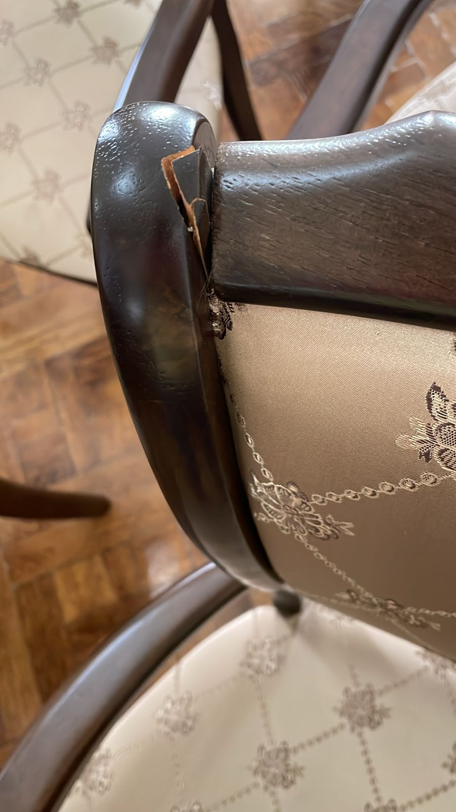 Описание дефекта: Треснута одна из опор спинки кресла
