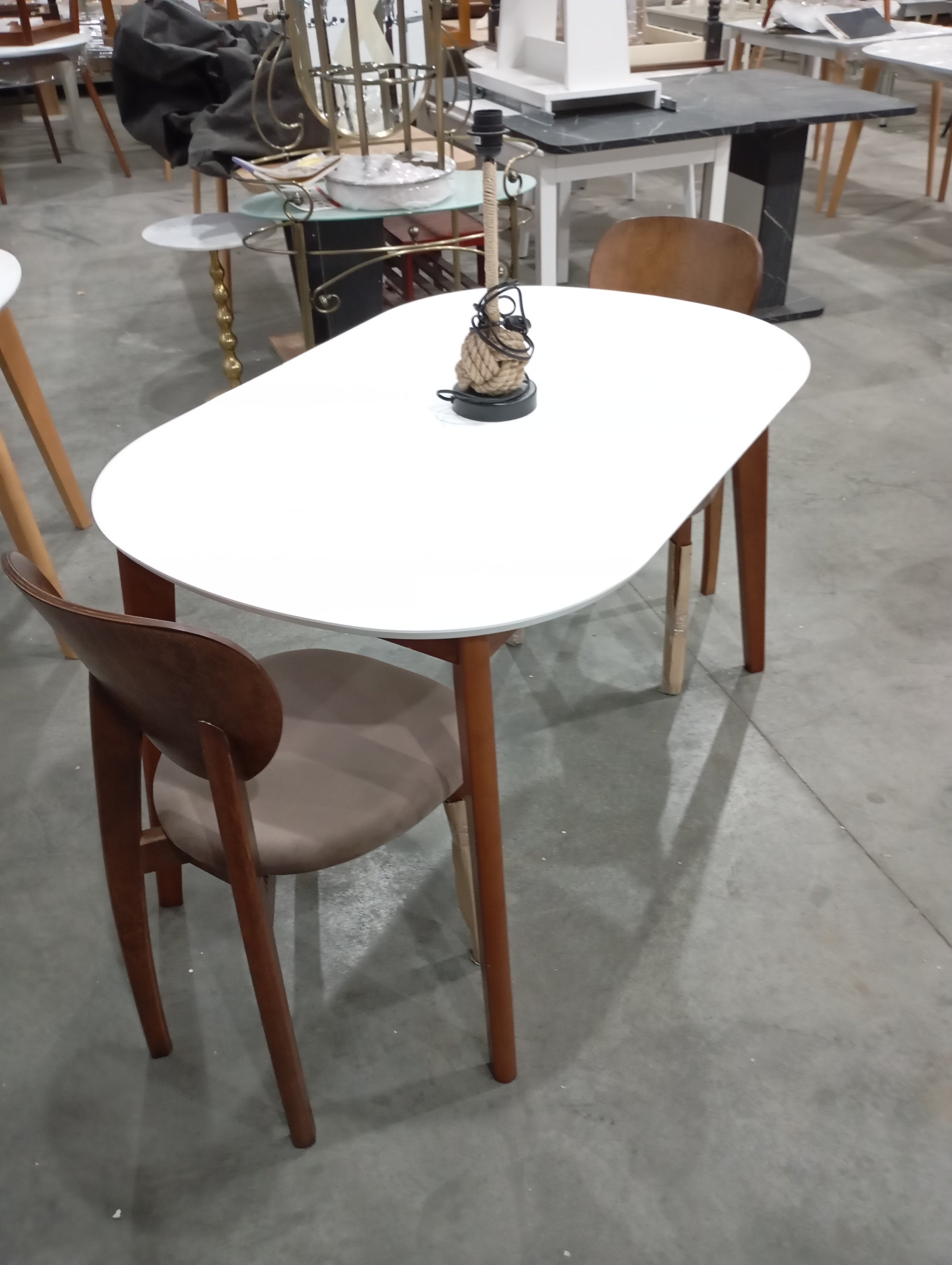 Описание товара без дефектов: Стильный обеденный стол BOSCO из Датской коллекции станет прекрасным украшением любой обстановки. Модель гармонично впишется как в классический, так и в современный интерьер. Контрастное сочетание белой столешницы и коричневых ножек поможет создать уют в любом помещении вашего дома. Отсутствие острых углов делает стол BOSCO идеальным решением для семей с маленькими детьми. Модель имеет надежный раздвижной механизм, который легко и без особых временных затрат дает возможность увеличить обеденное пространство. Размеры стола BOSCO позволяют с комфортом разместить от четырех до шести человек, при этом ваши гости не будут чувствовать тесноты или неудобства. Тонкие изящные ножки выполнены из надежной и прочной древесины – массива бука. Столешница овальной формы, изготовленная из МДФ со шпоном бука и глянцевым напылением, отличается элегантностью, практичностью и безопасностью. Она не требует специального ухода, устойчива к воздействию жидкости и тепла. Стол подойдёт для гостиной, для кухни, для загородного дома, для ресторана или для кафе. Стол поставляется в разобранном виде, необходима несложная сборка по инструкции.