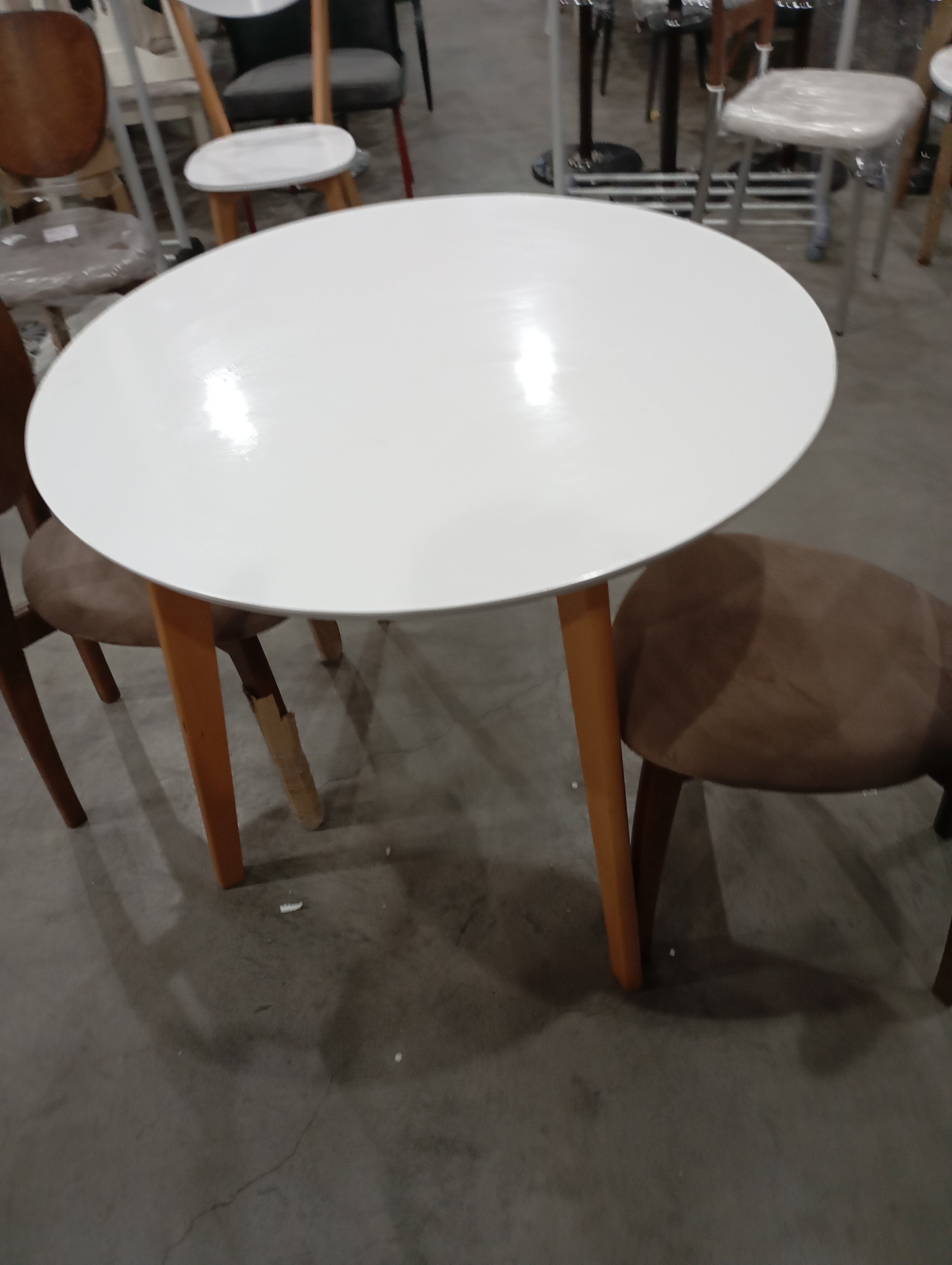 Описание товара без дефектов: Стильный обеденный стол BOSCO из Датской коллекции отлично дополнит интерьер загородного дома, городской квартиры, кухни, гостиной, кафе или ресторана. Компактный и аккуратный стол отлично подойдет даже для небольших помещений. Удачное сочетание столешницы, покрашенной в белый цвет, и визуально легких ножек цвета натурального дерева выглядит стильно, легко и привлекательно. Обеденный стол BOSCO хорошо впишется в любой современный интерьер. Круглая форма столешницы помогает создать свободную и легкую атмосферу в комнате, способствует спокойному и приятному общению. Изящные тонкие ножки изготовлены из натуральной экологически чистой древесины ─ массива бука. Столешница из МДФ со шпоном бука и глянцевым напылением не требует специального ухода, выдерживает воздействие жидкости и тепла. Модель поставляется в разобранном виде, необходима несложная сборка по инструкции.