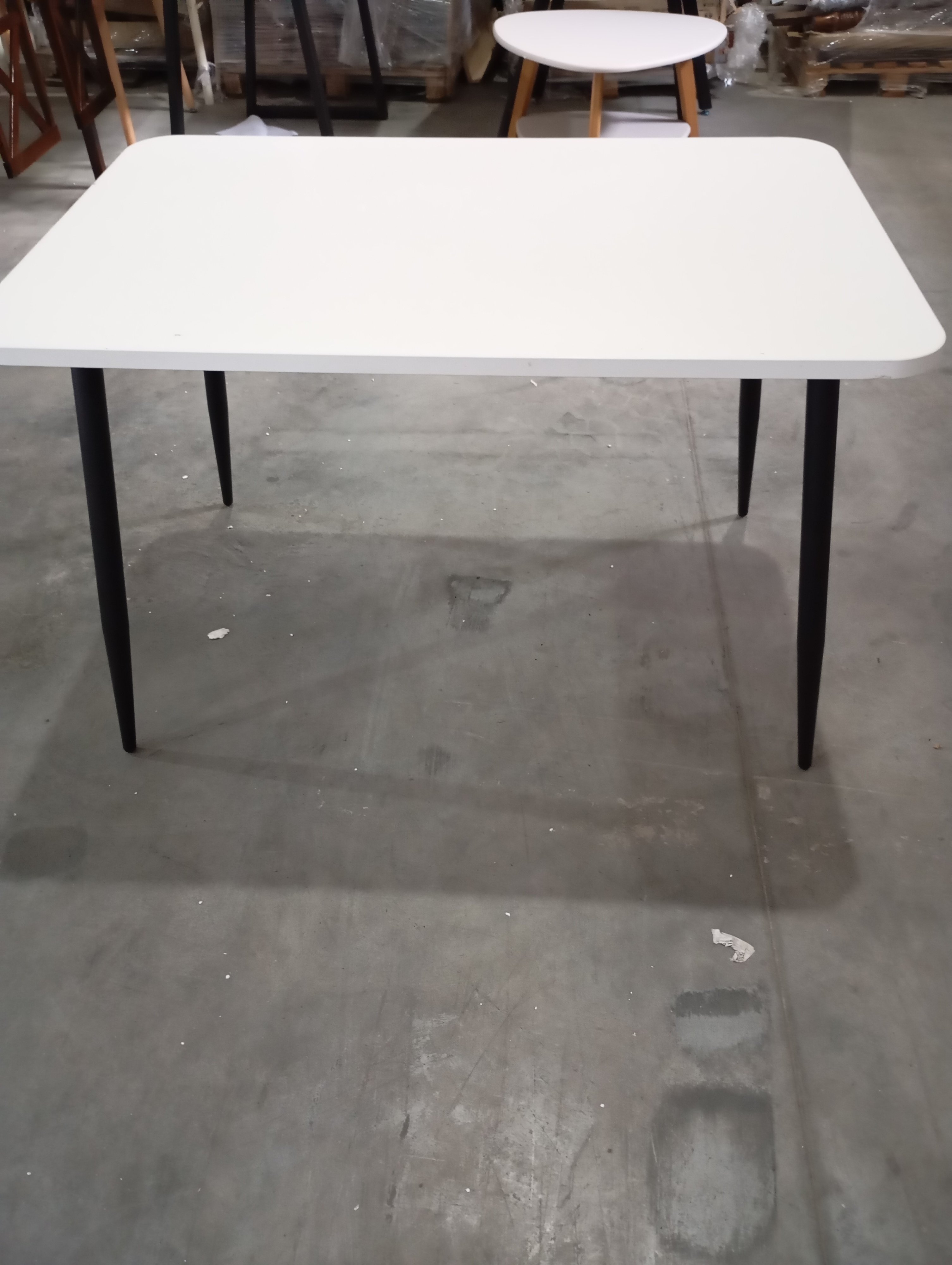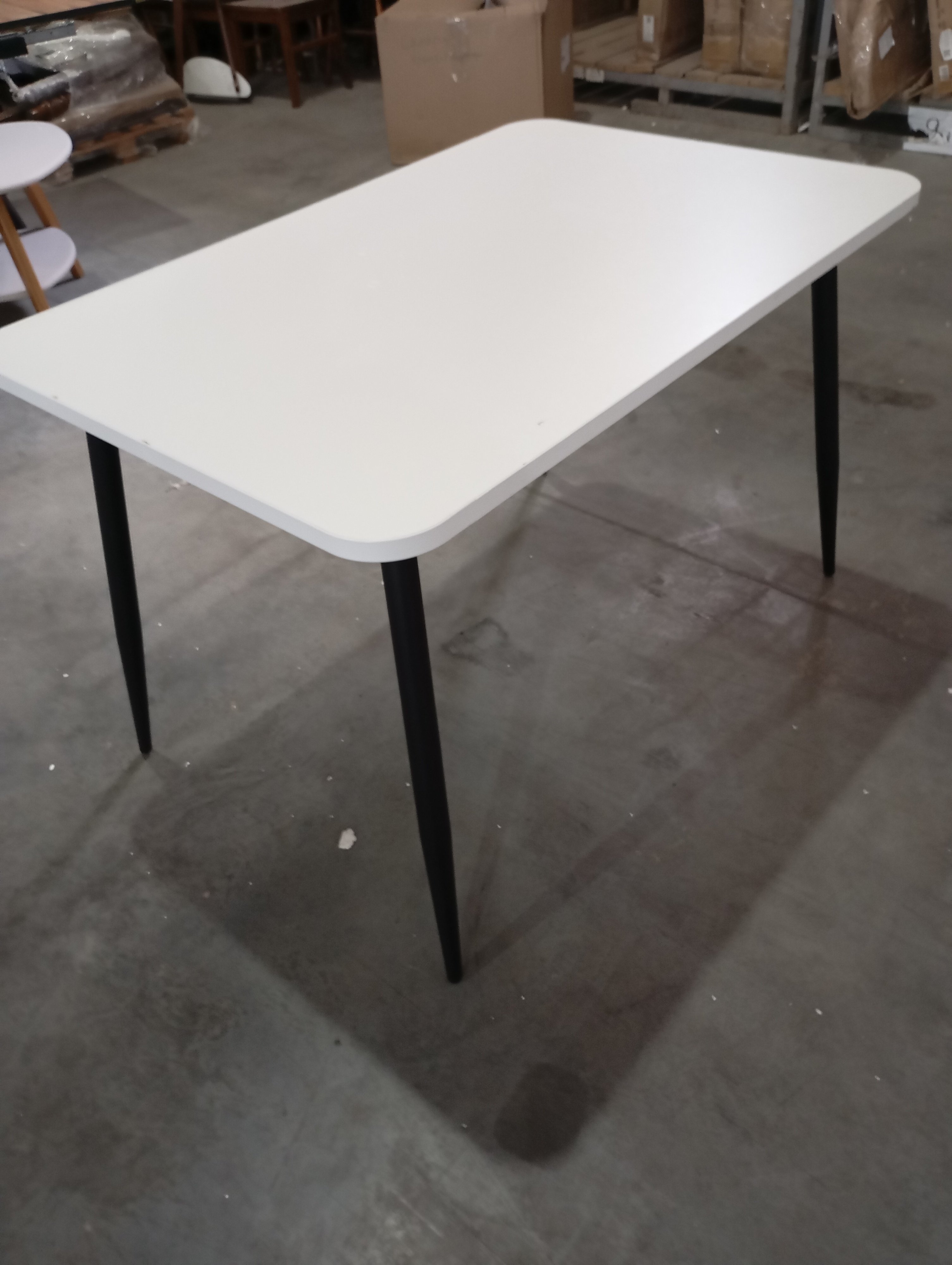 Описание товара без дефектов: Стильный и компактный стол Pluto из коллекции Modern – это удачное сочетание простоты и элегантности. Стол отлично впишется в интерьер кухни, столовой, гостиной, дачи или небольшого кафе. Cтолешница белого цвета выполнена из ЛДСП толщиной 25 мм, края оклеены прочной пластиковой кромкой толщиной 2 мм. Изящные тонкие ножки изготовлены из металла и окрашены в черный цвет. Простая в сборке и прочная конструкция прослужит вам долгие годы. Небольшие размеры стола позволят разместить его даже в небольшом пространстве. Стол прост в сборке, инструкция по сборке прилагается.