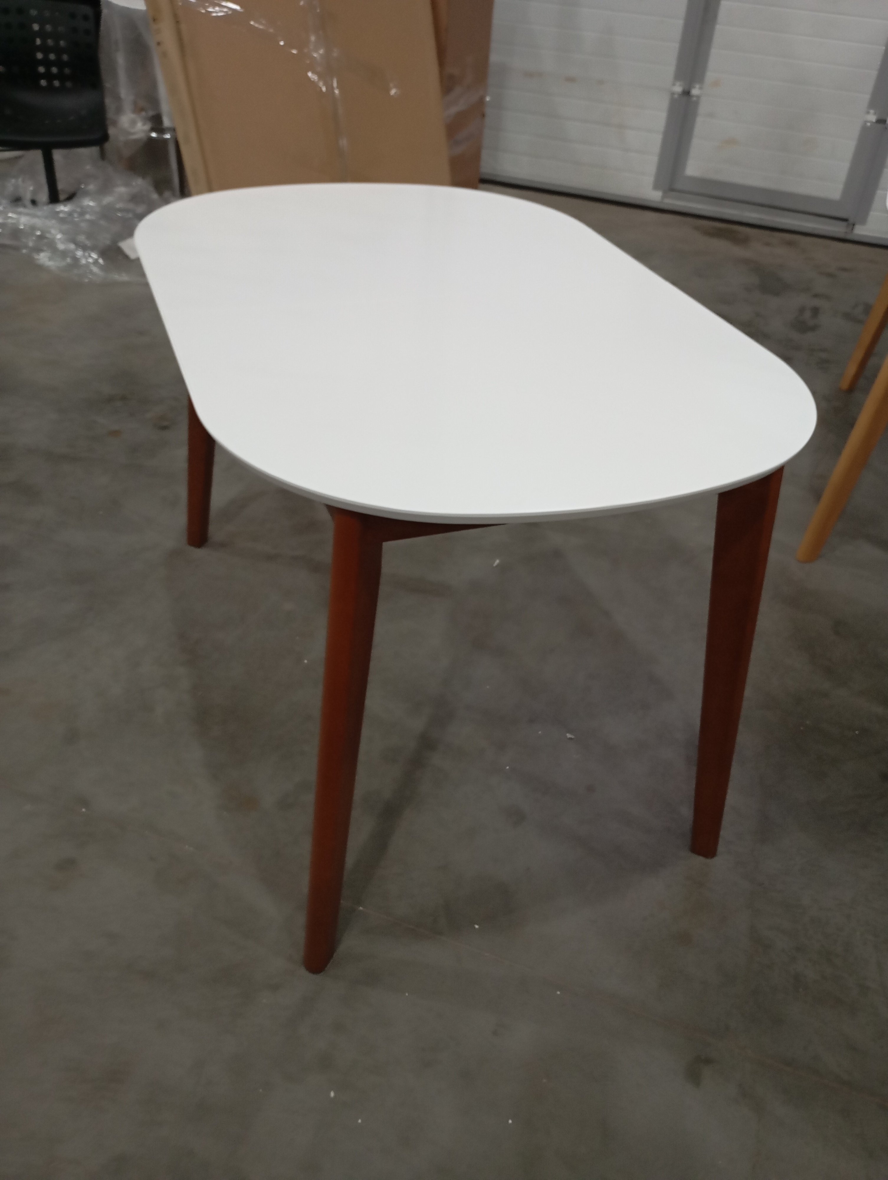 Описание товара без дефектов: Стильный обеденный стол BOSCO из Датской коллекции станет прекрасным украшением любой обстановки. Модель гармонично впишется как в классический, так и в современный интерьер. Контрастное сочетание белой столешницы и коричневых ножек поможет создать уют в любом помещении вашего дома. Отсутствие острых углов делает стол BOSCO идеальным решением для семей с маленькими детьми. Модель имеет надежный раздвижной механизм, который легко и без особых временных затрат дает возможность увеличить обеденное пространство. Размеры стола BOSCO позволяют с комфортом разместить от четырех до шести человек, при этом ваши гости не будут чувствовать тесноты или неудобства. Тонкие изящные ножки выполнены из надежной и прочной древесины – массива бука. Столешница овальной формы, изготовленная из МДФ со шпоном бука и глянцевым напылением, отличается элегантностью, практичностью и безопасностью. Она не требует специального ухода, устойчива к воздействию жидкости и тепла. Стол подойдёт для гостиной, для кухни, для загородного дома, для ресторана или для кафе. Стол поставляется в разобранном виде, необходима несложная сборка по инструкции.