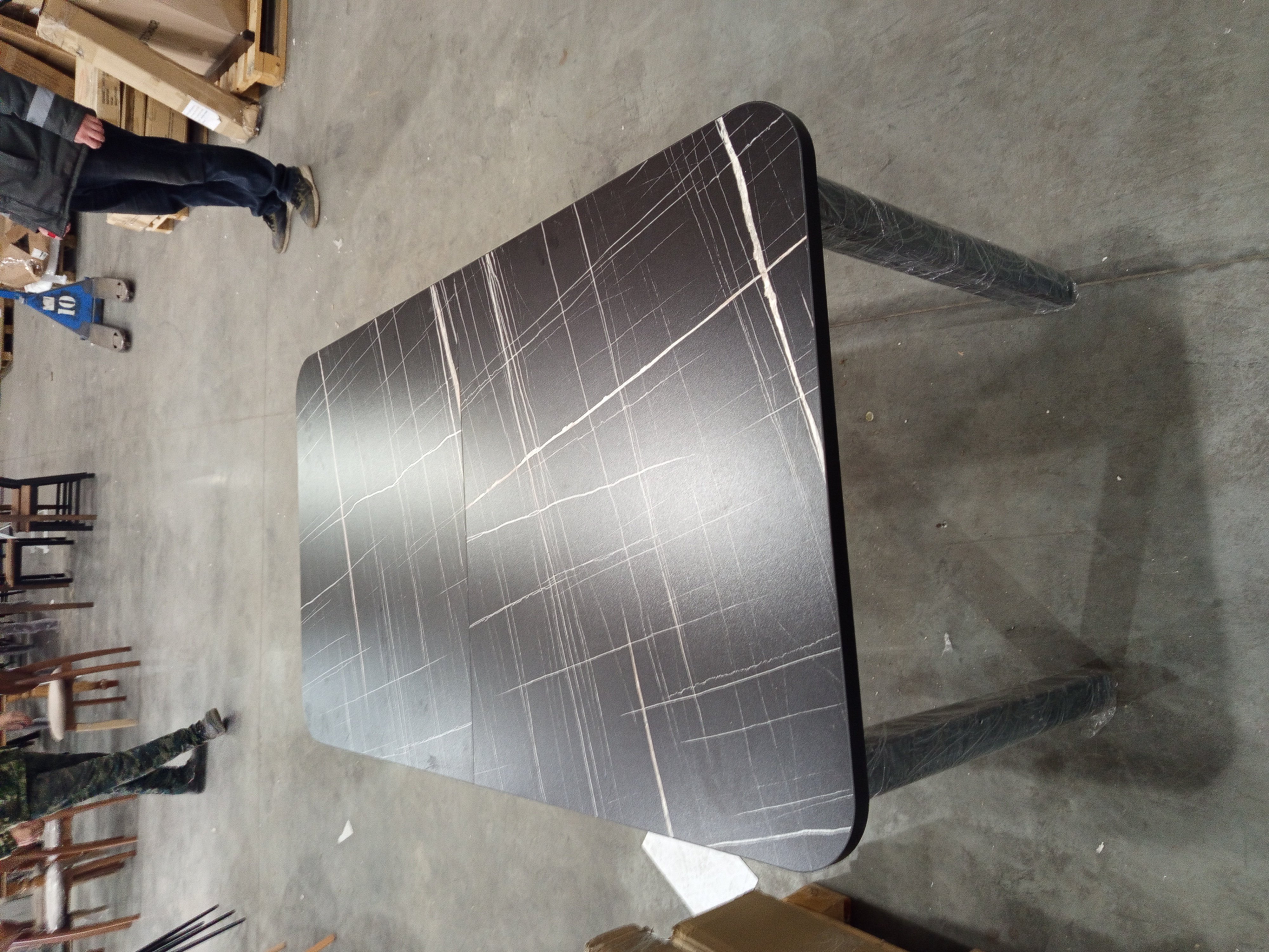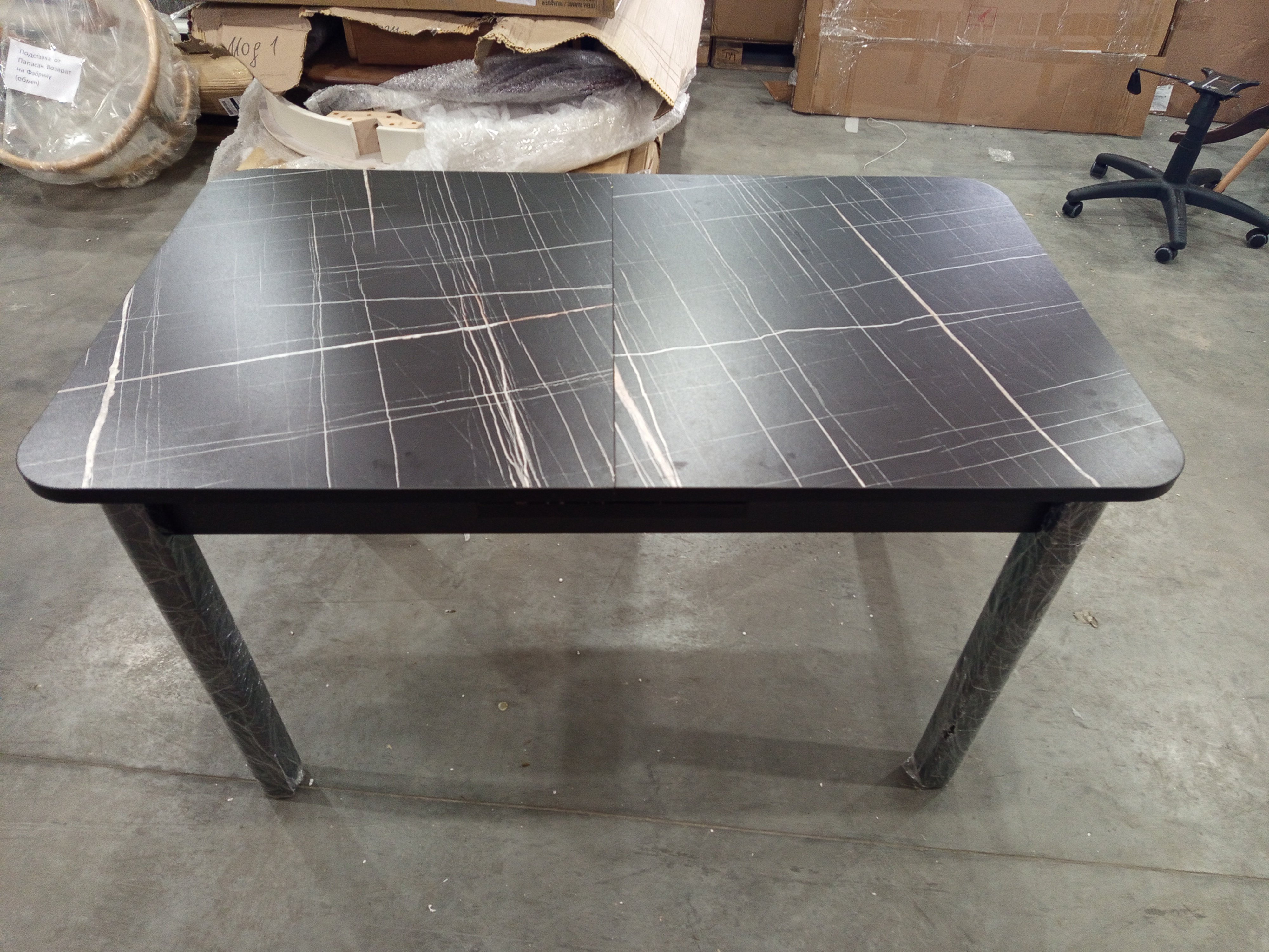 Описание товара без дефектов: Раскладной стол ALIGERY из коллекции Modern сделает оригинальным и узнаваемым интерьер загородного дома или городской квартиры. Стол подойдёт для гостиной, кухни или столовой. Столешница цвета черный мрамор и вставка выполнены из ЛДСП толщиной 22 мм на лицевую поверхность которых нанесен защитный слой HPL толщиной 1 мм. HPL имеет защитное покрытие оверлей высокой степени истирания, которое повышает устойчивость поверхностей к повреждениям. Используется кромка ПВХ 2 мм. Для увеличения размера стола используется автоматический механизм подъема вставки стола. Прочные черные ножки из массива березы, окрашены. Ножки стола регулируются по высоте для устранения неровности пола с помощью регулировочных винтов. Во избежании самопроизвольного раздвижения половинок столешниц обязательно переключайте фиксаторы в режим "Закрыто". Уникальная модель впечатлит своей прочностью, простотой в уходе и долговечностью, придаст помещению элегантность, изысканность и акцентирует внимание гостей на обеденной зоне. За столом могут разместиться от 2 до 6 человек. Стол упакован в транспортировочный короб из ЛДСП + гофрокороб. Модель проста в сборке, инструкция по сборке прилагается.