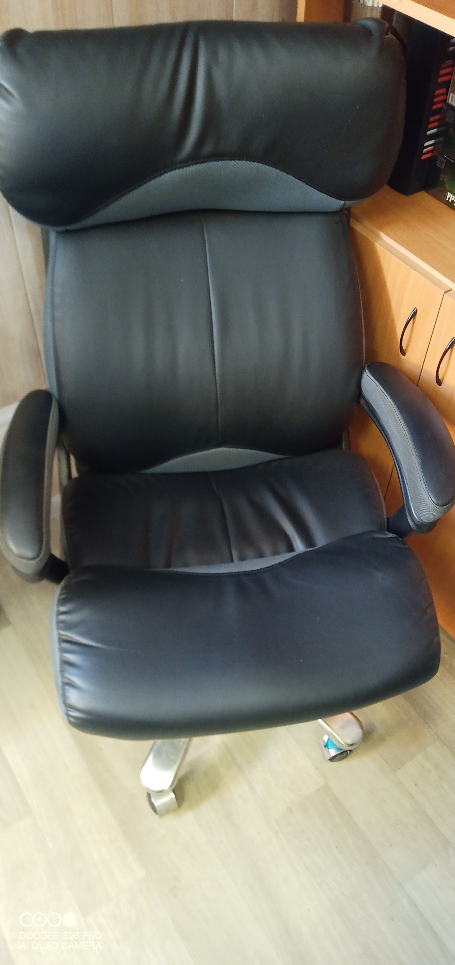 Описание товара без дефектов: Механизм качания с фиксацией угла наклона в любом положении. Пружинный блок в сиденье. Подлокотник - пластик с мягкими накладками. Крестовина хромированная, усиленная. Ролики - прорезиненные с хромированной накладкой. Максимальная нагрузка 120кг.