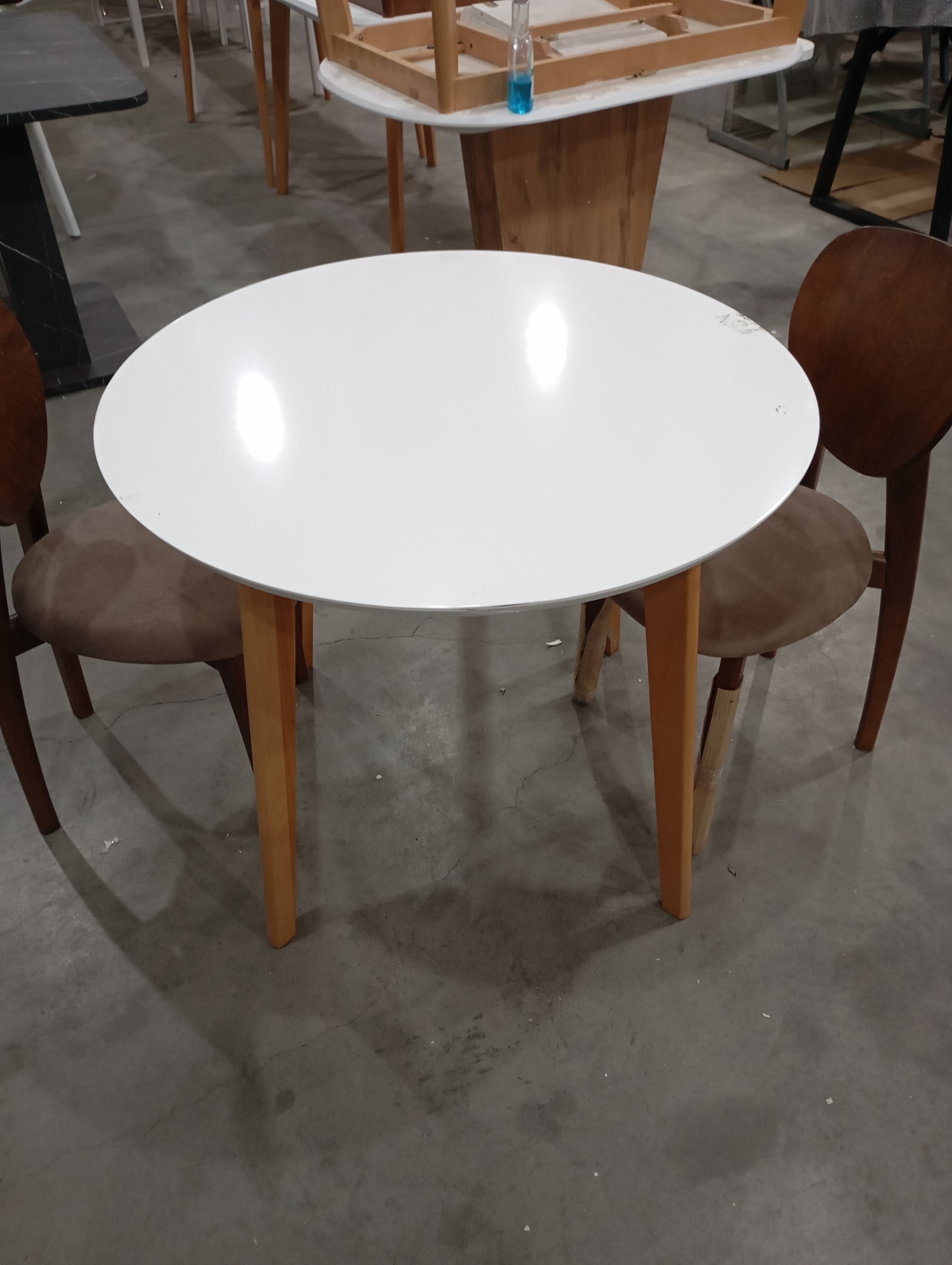 Описание товара без дефектов: Стильный обеденный стол BOSCO из Датской коллекции отлично дополнит интерьер загородного дома, городской квартиры, кухни, гостиной, кафе или ресторана. Компактный и аккуратный стол отлично подойдет даже для небольших помещений. Удачное сочетание столешницы, покрашенной в белый цвет, и визуально легких ножек цвета натурального дерева выглядит стильно, легко и привлекательно. Обеденный стол BOSCO хорошо впишется в любой современный интерьер. Круглая форма столешницы помогает создать свободную и легкую атмосферу в комнате, способствует спокойному и приятному общению. Изящные тонкие ножки изготовлены из натуральной экологически чистой древесины ─ массива бука. Столешница из МДФ со шпоном бука и глянцевым напылением не требует специального ухода, выдерживает воздействие жидкости и тепла. Модель поставляется в разобранном виде, необходима несложная сборка по инструкции.