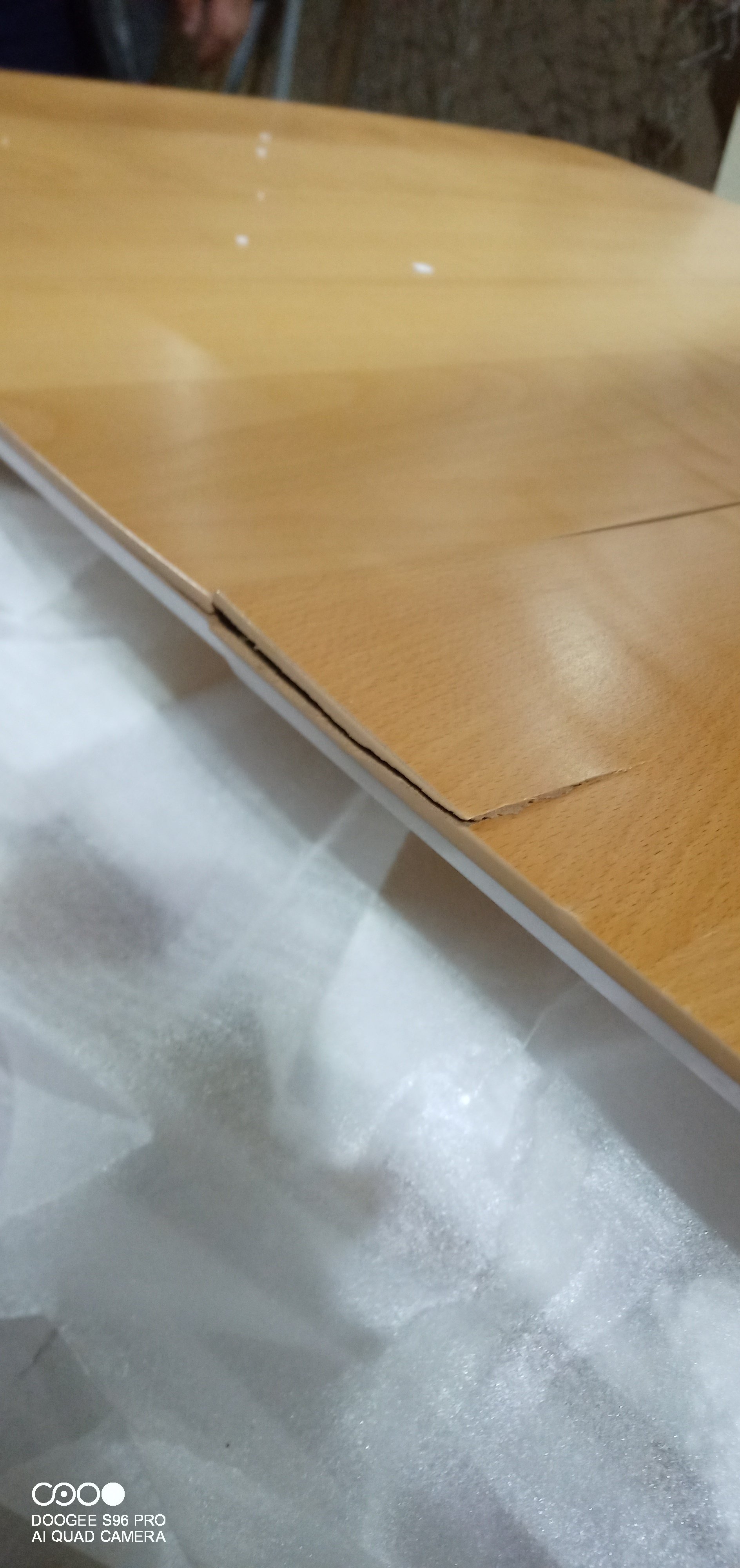 Описание дефекта: ножки со сколами и царапинами, на столешнице трещина