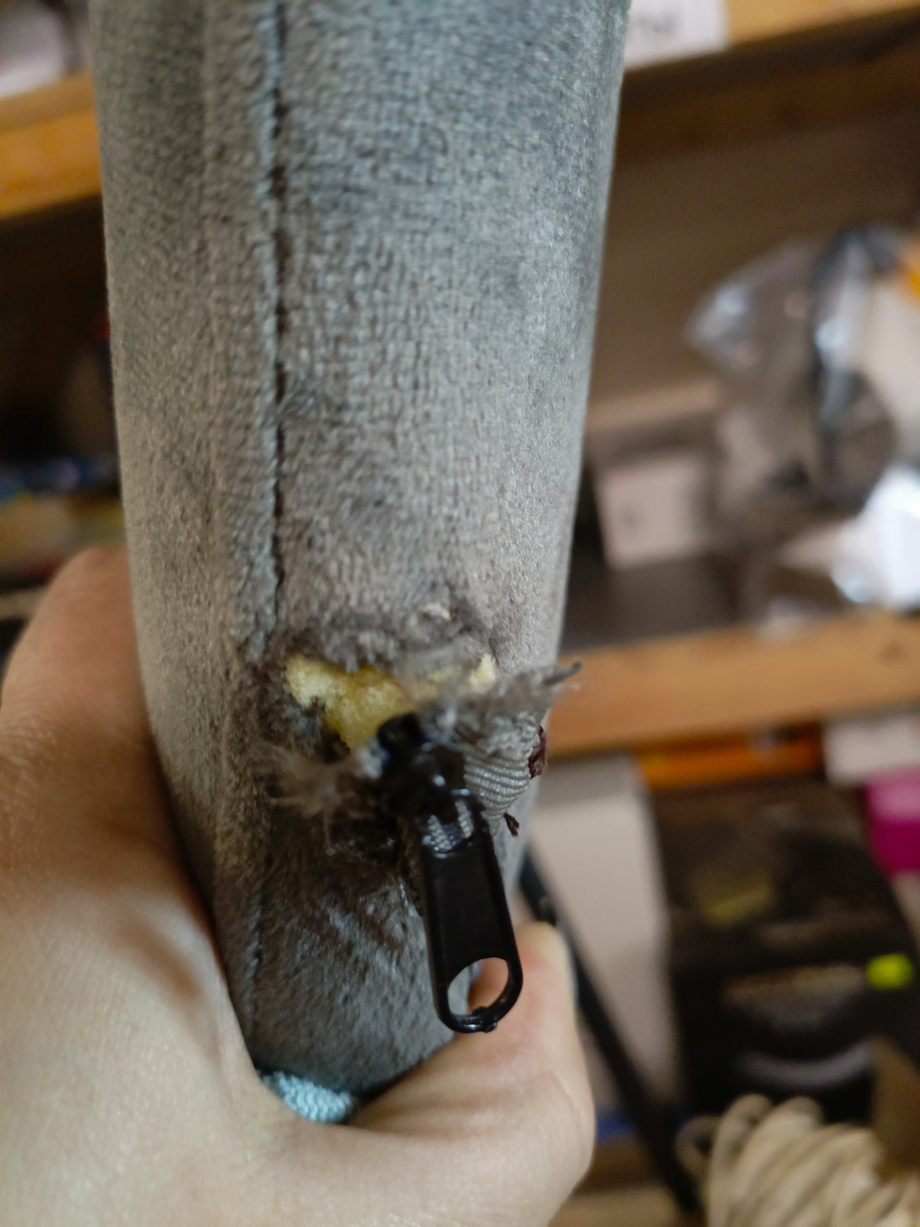 Описание дефекта: На спинке разорвана ткань, дефект молнии - разъезжается