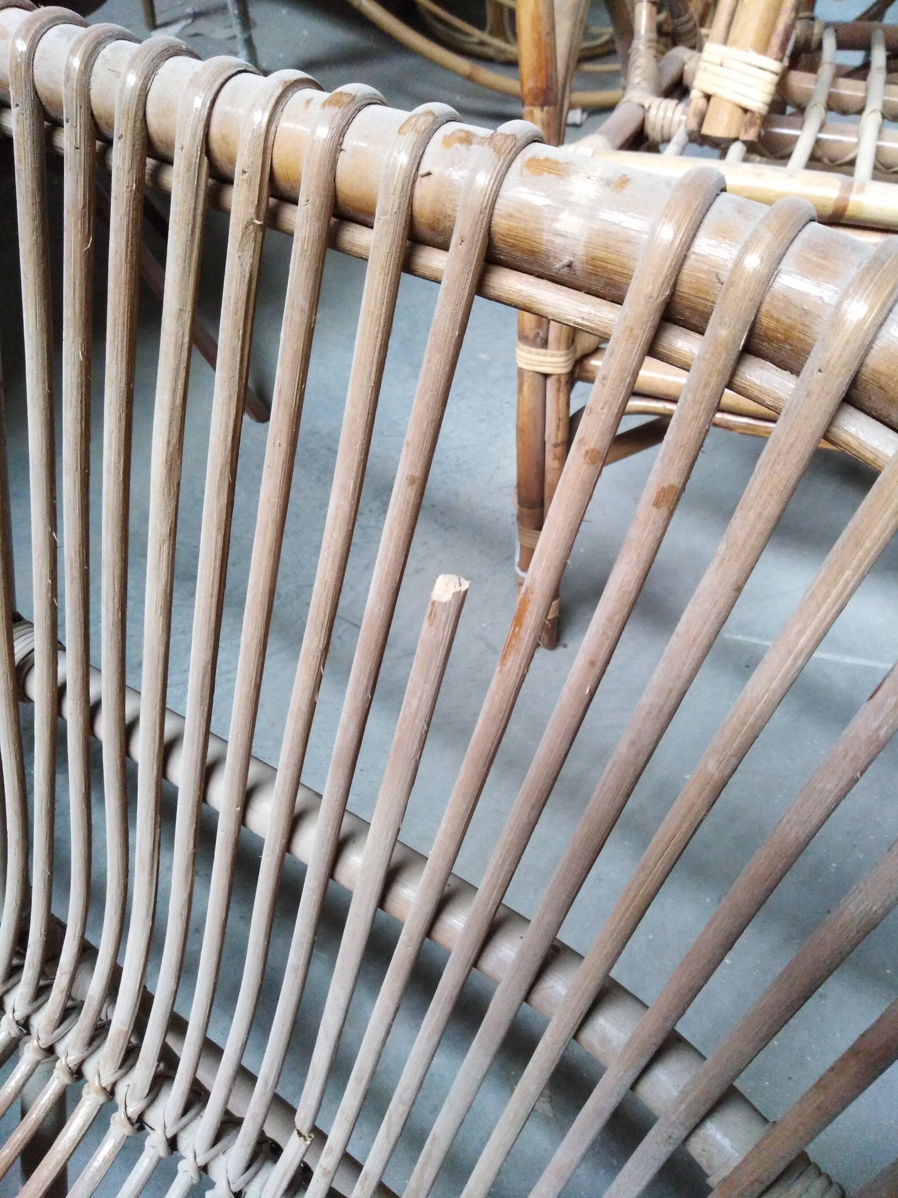 Описание дефекта: Сломаны ротанговые палочки. Нарушение плетения в местах соединения