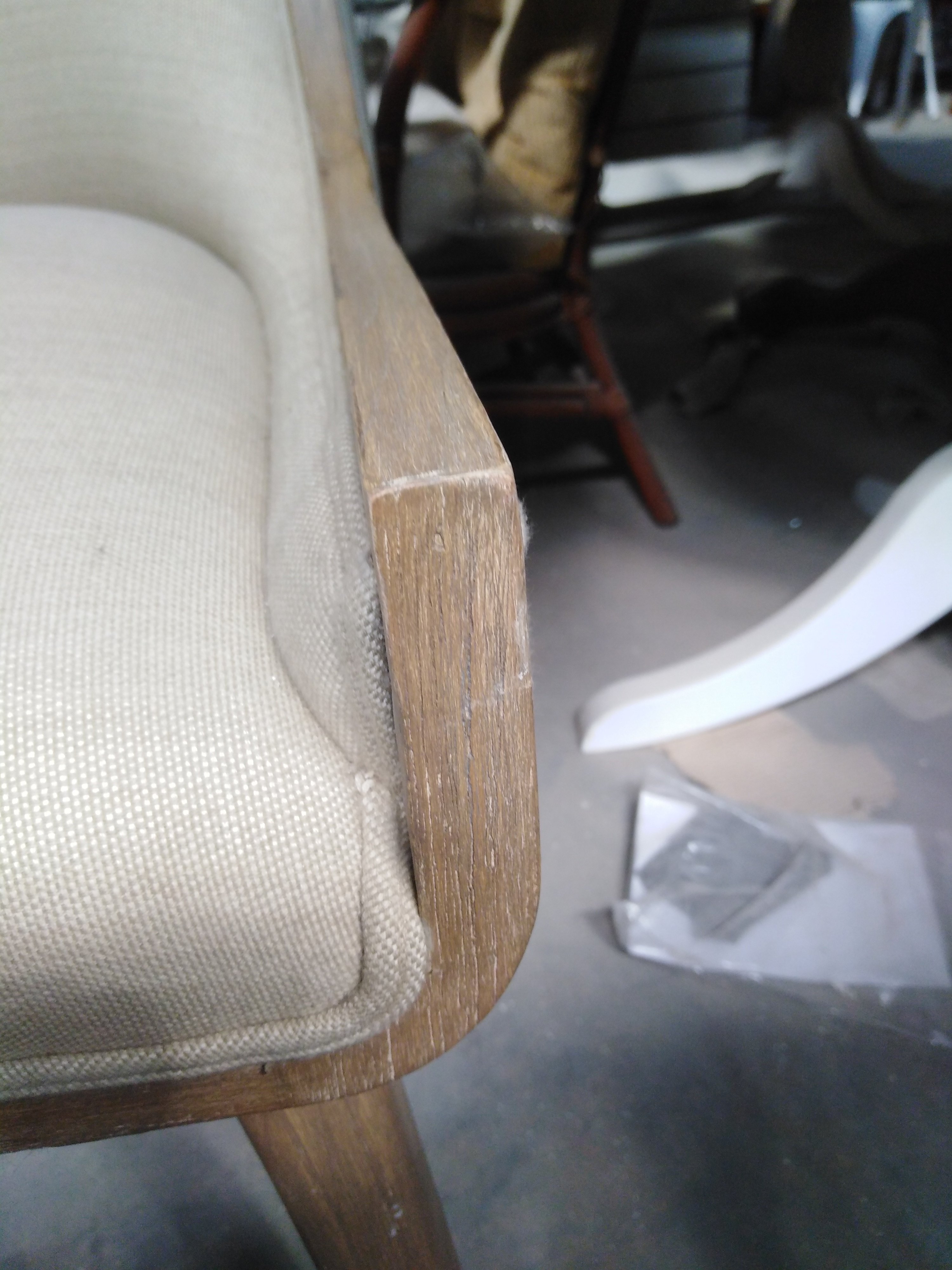 Описание дефекта: Сколы и царапины на деревянных поверхностях. Загрязнённость матариала сидения