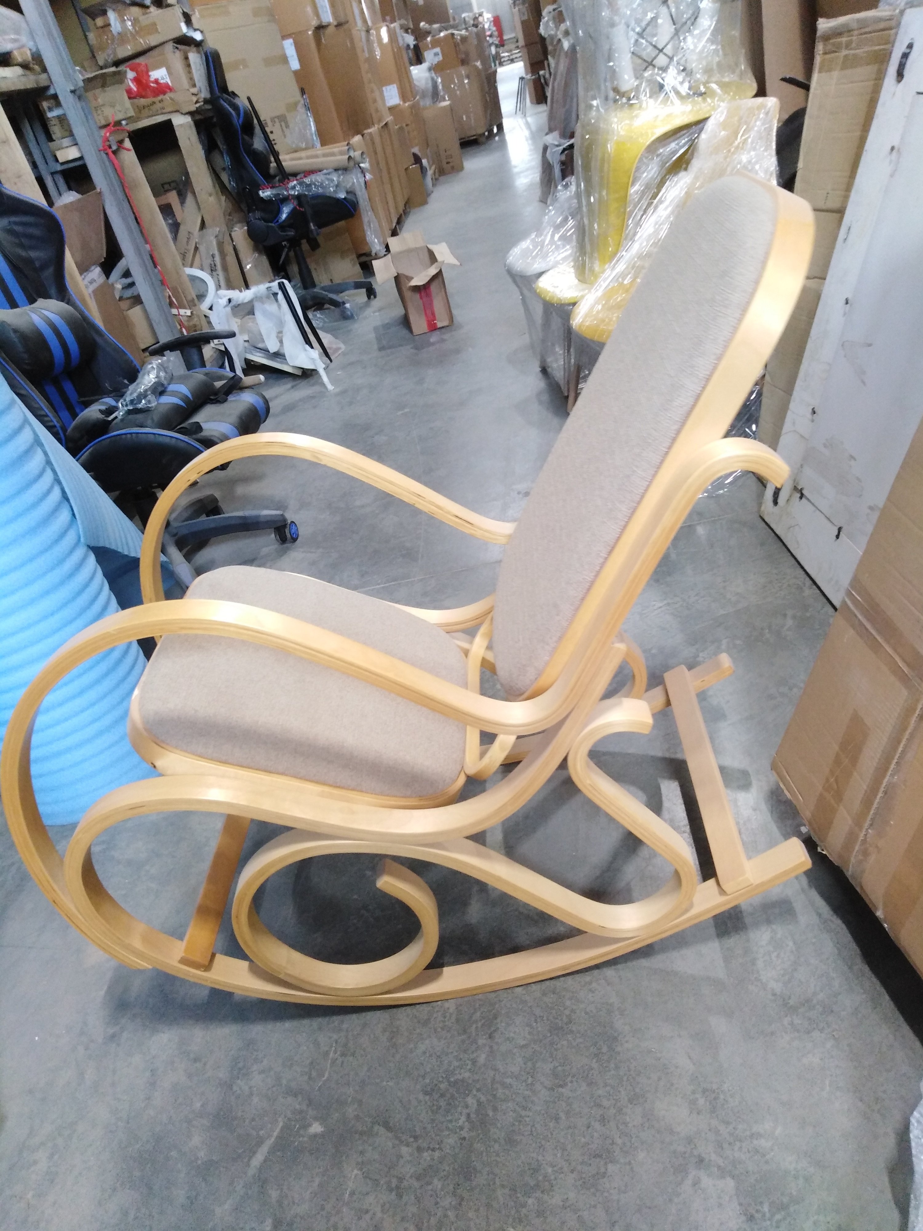Описание товара без дефектов: Кресло-качалка. Основание - берёза. Сиденье - ткань. Размеры: 48,5х54,5х86 см