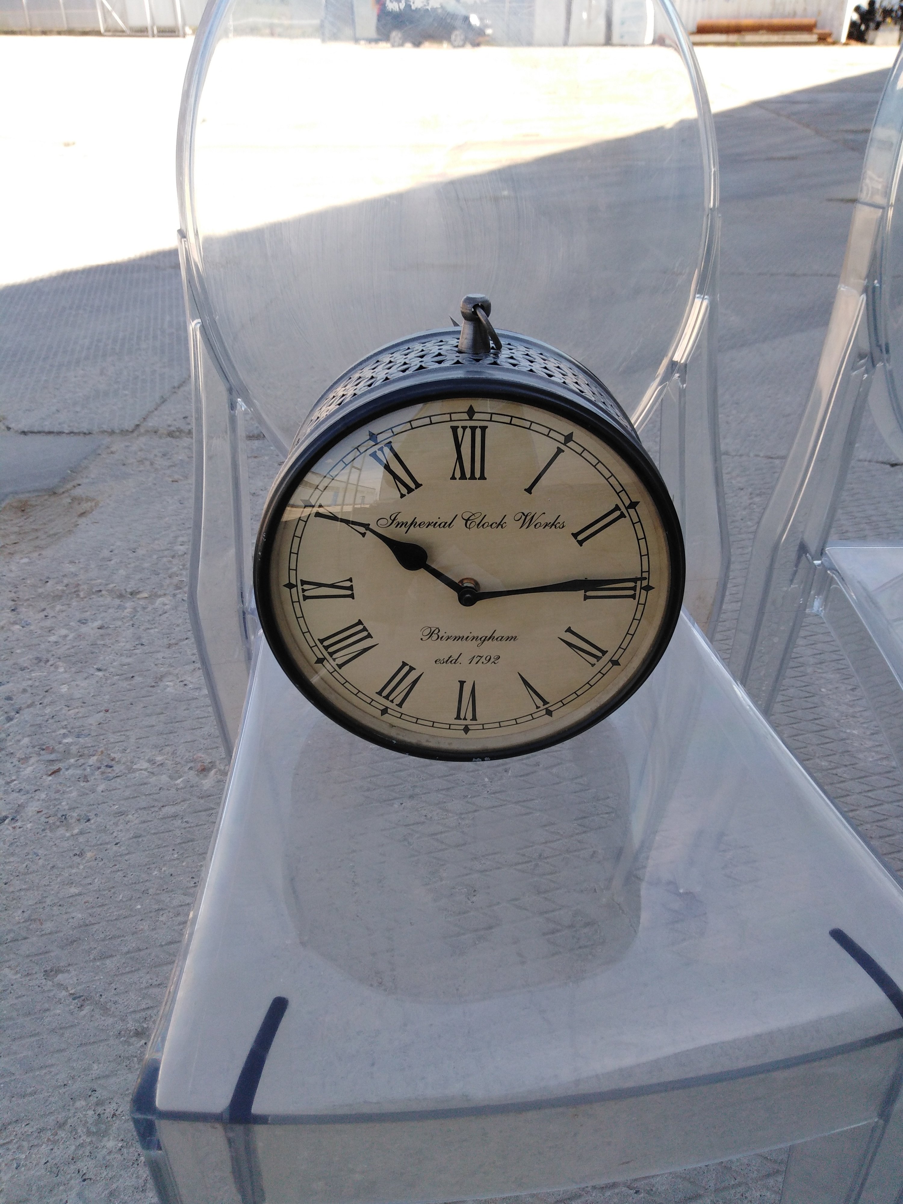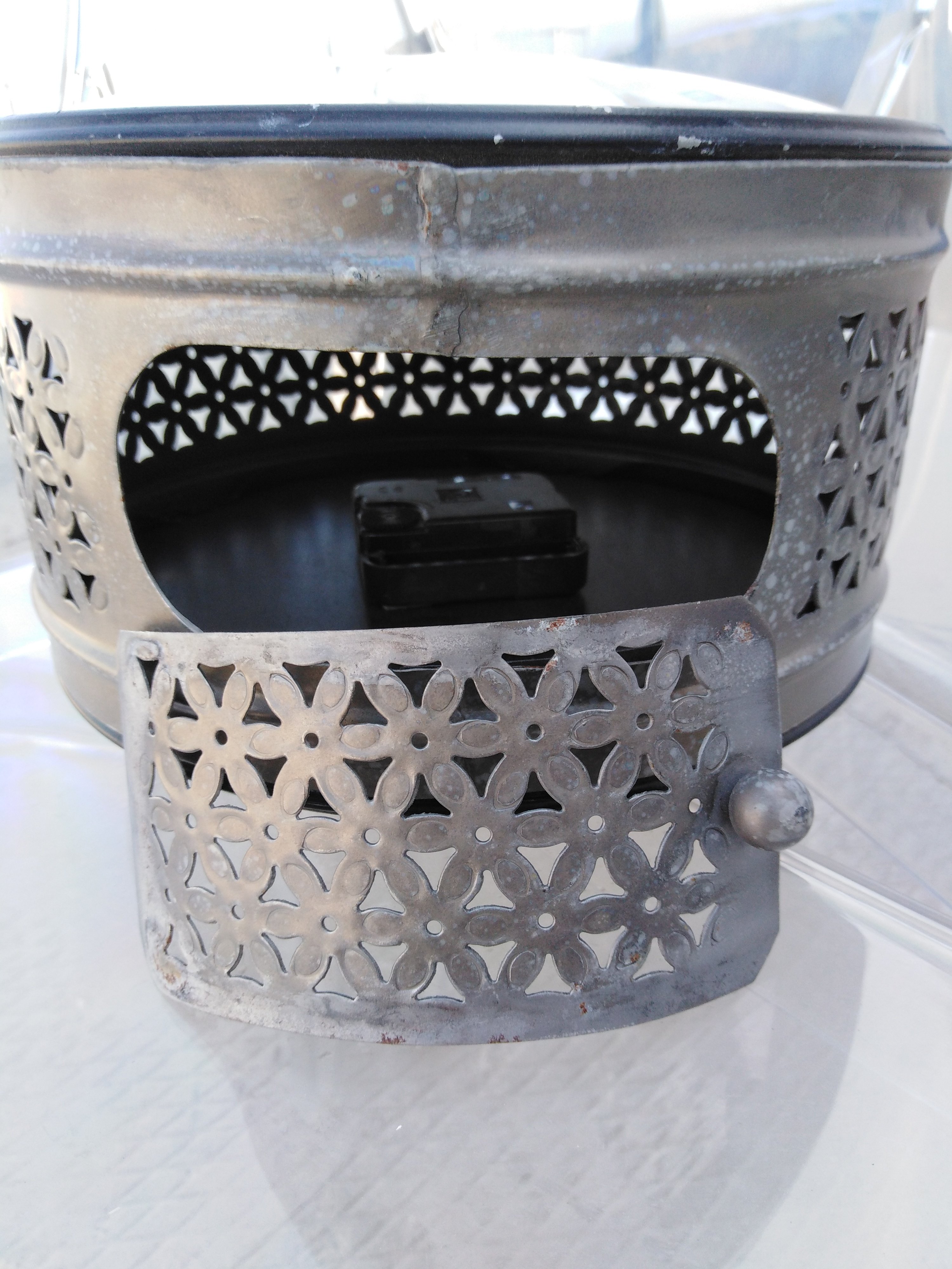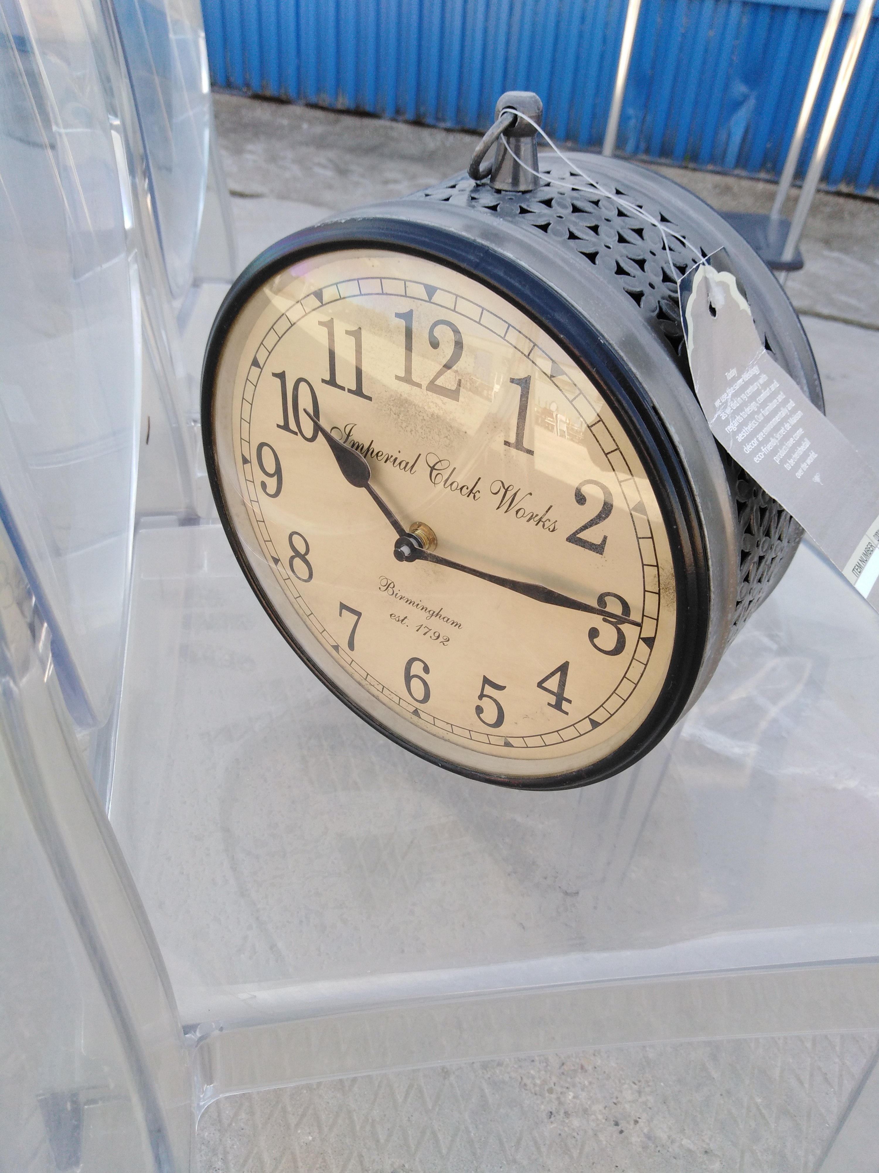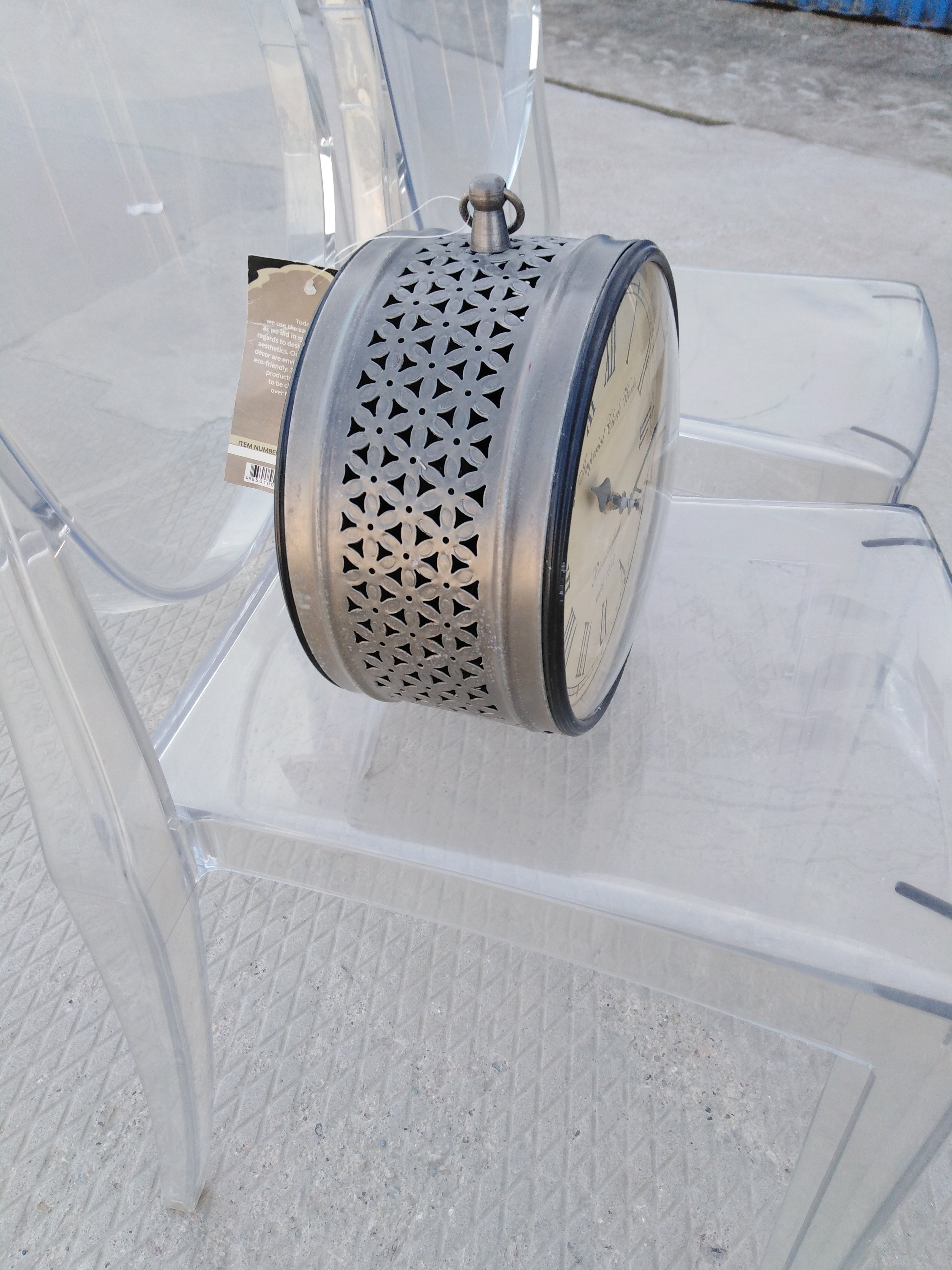 Описание товара без дефектов: Циферблат с обеих сторон. Механизм на пальчиковых батарейках ААА. Материал: металл. Цвет: античная медь. Размеры: D20х8 см