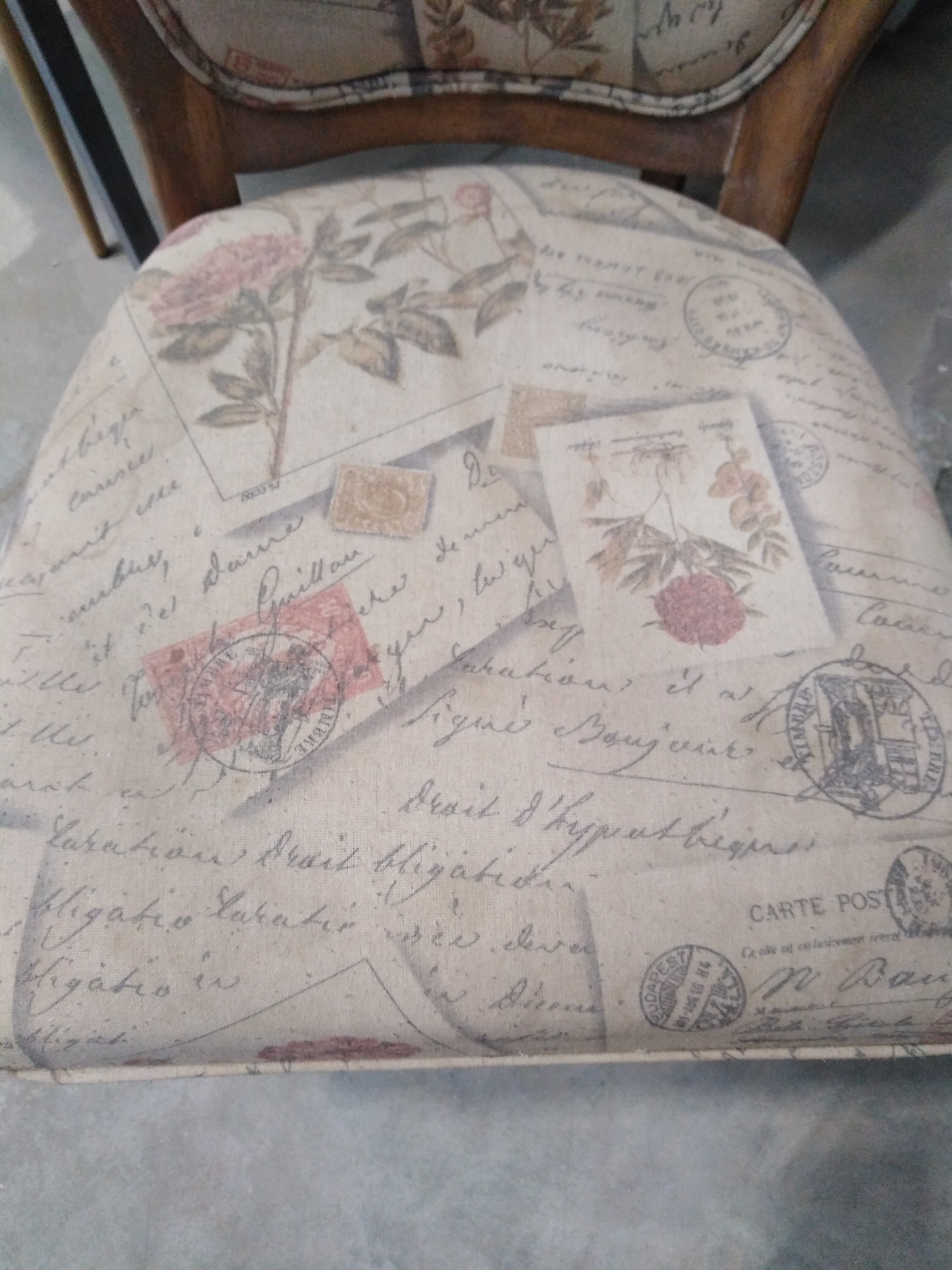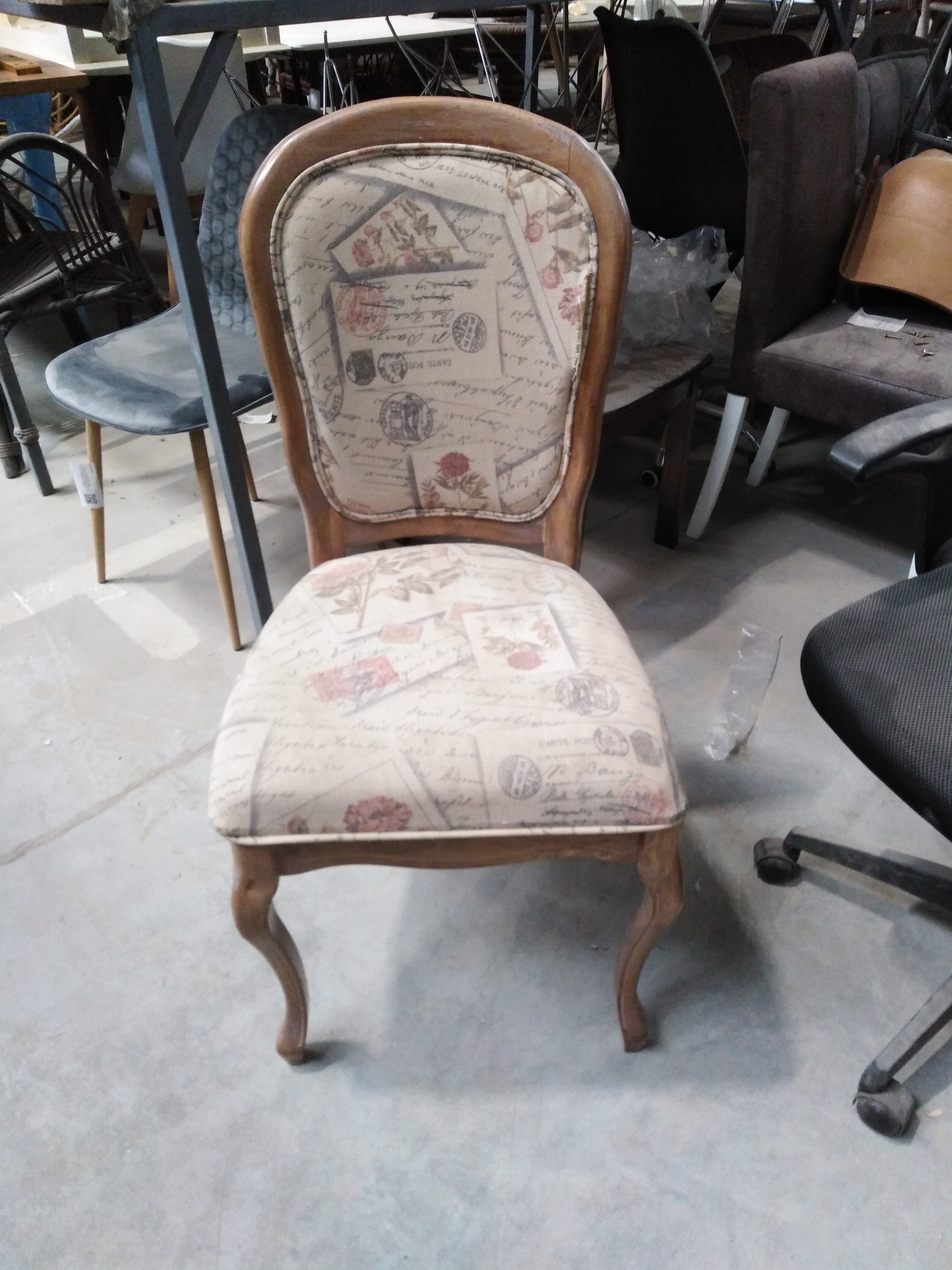 Описание товара без дефектов: Материал: каркас - массив гевеи, обивка - ткань. Форма спинки - неоклассический медальон. Размеры: 96х55х46 см