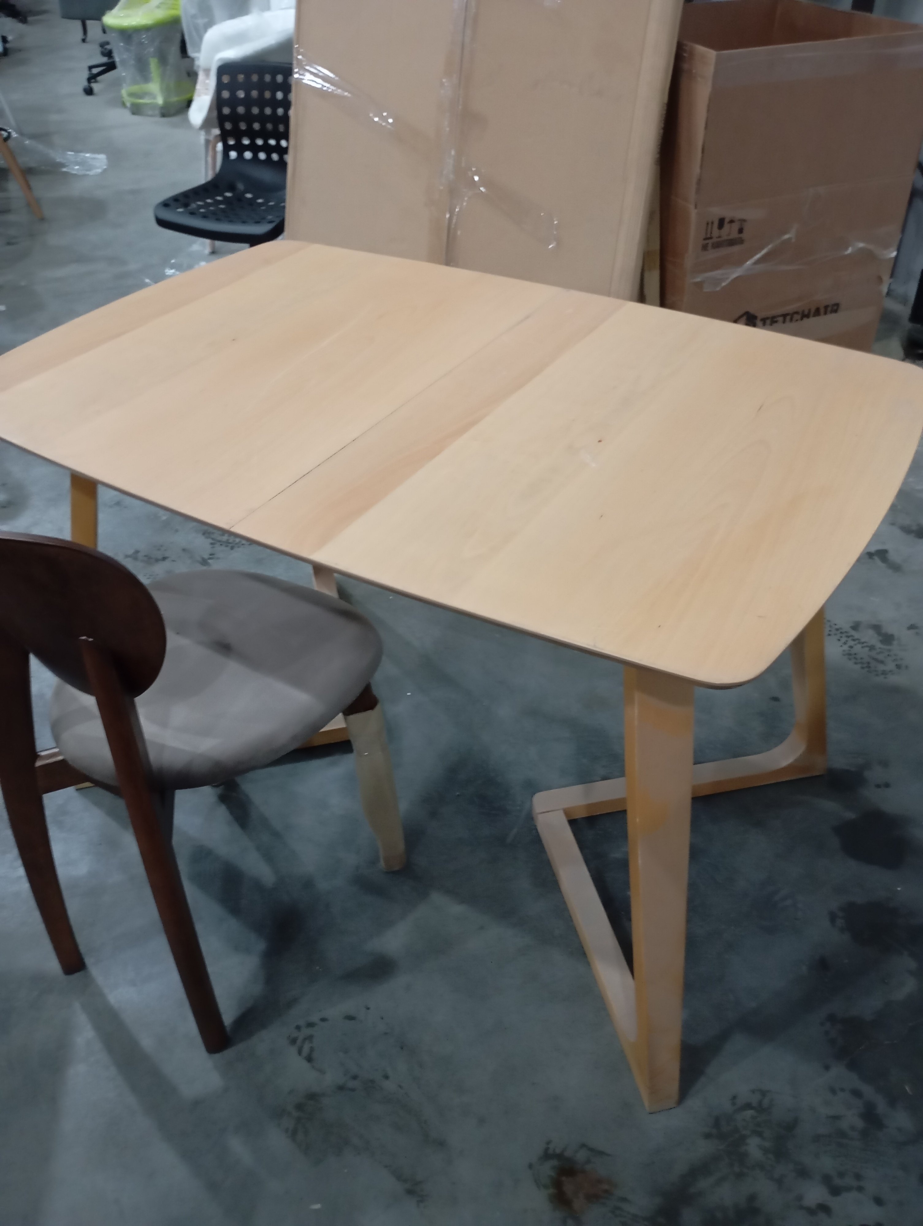 Описание товара без дефектов: Необычный раскладной стол VAKU из Датской коллекции сделает оригинальным и узнаваемым интерьер загородного дома или городской квартиры. Необычная форма ножек придаст любому помещению особую индивидуальность и привлекательность. Надежное основание из массива бука и прямоугольная столешница из МДФ с закругленными углами добавит уюта и комфорта в обстановку кухни, гостиной или столовой. Надежный стол с прочным раздвижным механизмом позволит увеличить обеденное пространство и разместить с удобством от четырех до шести человек. Стильный стол VAKU цвета натурального дерева─ это воплощение простоты, лаконичности и функциональности. Стол подойдёт для гостиной, для кухни, для загородного дома, для ресторана или для кафе. Модель не требует специального ухода, устойчива к воздействию жидкостей и тепла, проста в сборке.
