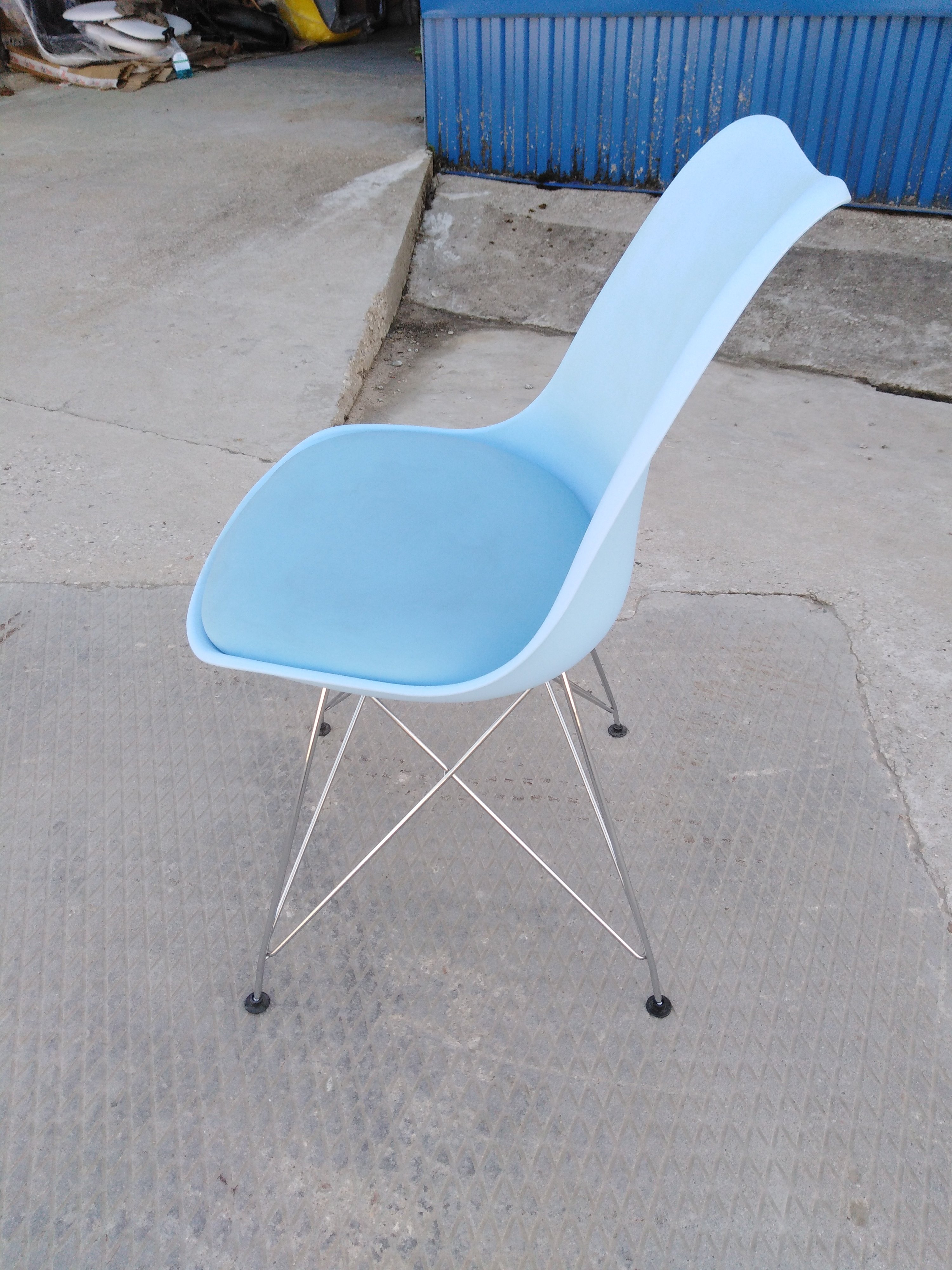 Описание товара без дефектов: Дизайн стула TULIP IRON CHAIR из коллекции Modern вдохновлен формой известного стула Tulip, спроектированного американским архитектором Ээро Саариненом в 50-х годах двадцатого века. Стул подкупает своей универсальностью и комфортной посадкой, благодаря которым варианты его расположения в интерьере безграничны. Этот удобный и привлекательный стул отлично впишется в интерьер городской квартиры, загородной веранды, кафе или ресторана. Оригинальные металлические ножки, монолитная конструкция сиденья и спинки украсят любое пространство, изменят обстановку в лучшую сторону, наполнят интерьер легкостью и уютом. Удобное сиденье с мягкой накладкой из искусственной кожи позволяет комфортно сидеть в течение длительного времени. Металлические ножки делают модель устойчивой и надежной. Стул выполнен из прочного пластика голубого цвета. Модель практична, надежна, способна выдерживать большие нагрузки, устойчива к воздействию влаги, температурным перепадам и проста в уходе.