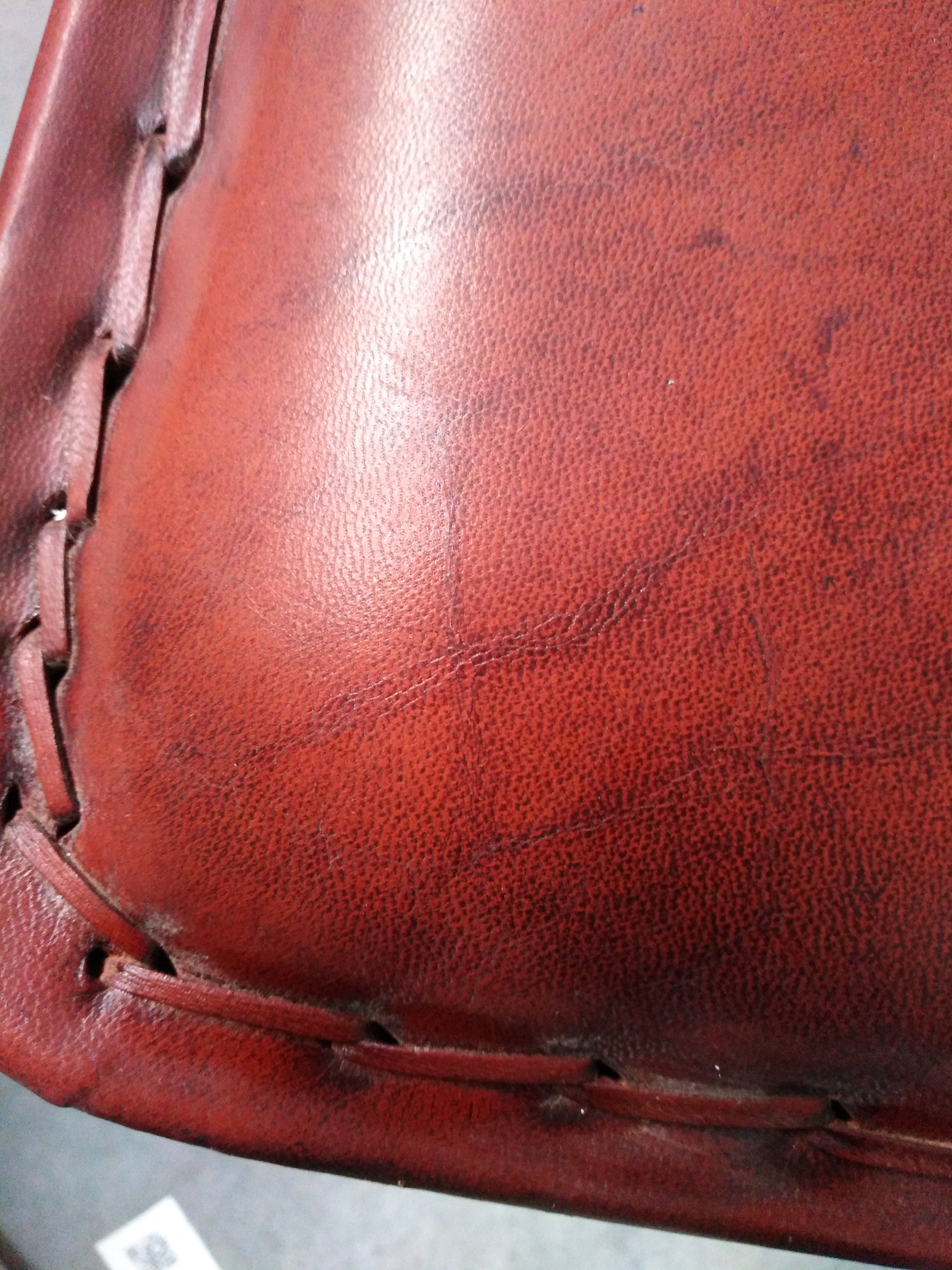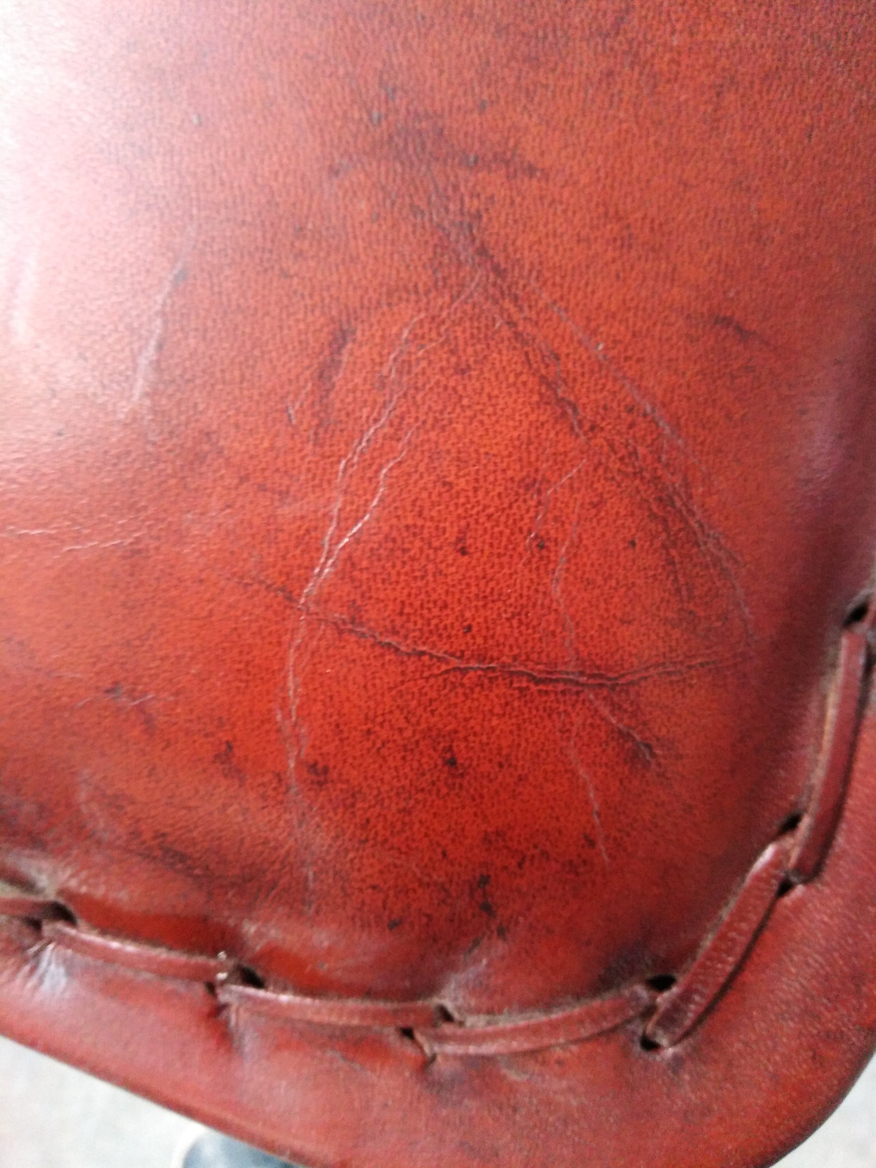 Описание дефекта: Ярко выраженные трещины на коже в месте сиденья и ножек Просматриваются следы клея. Царапи и сколы на ножках, местами видна ржавчина.
