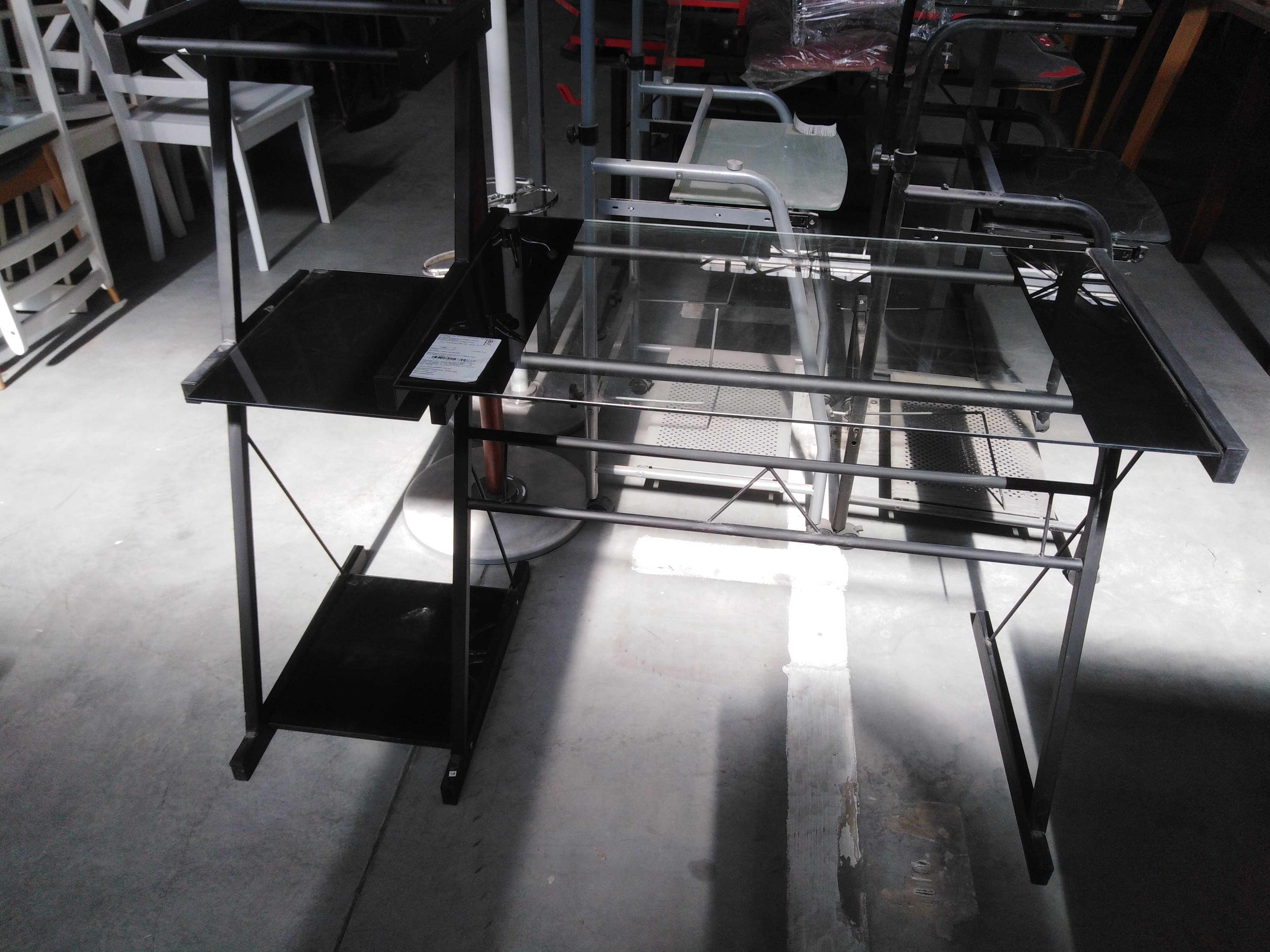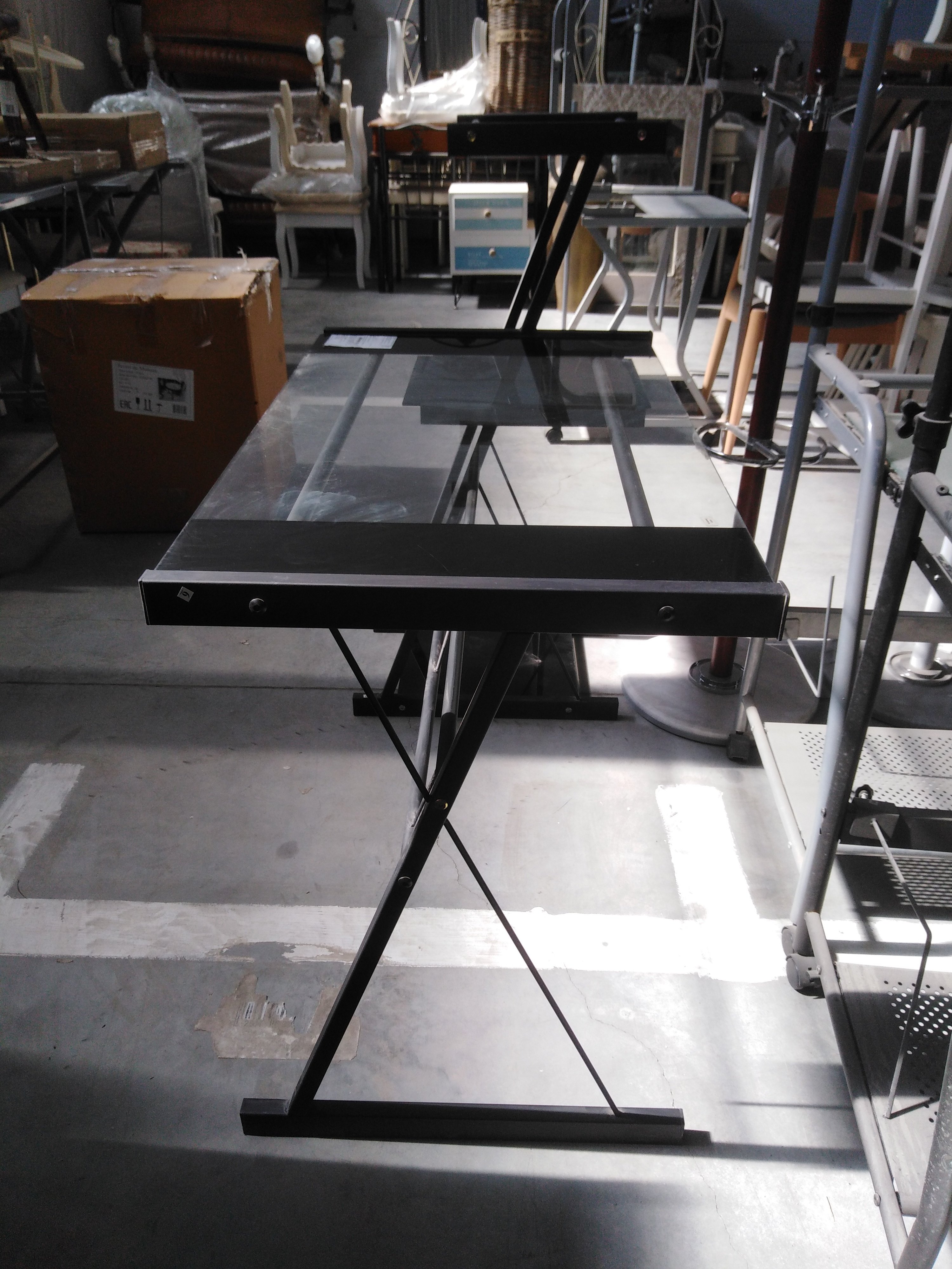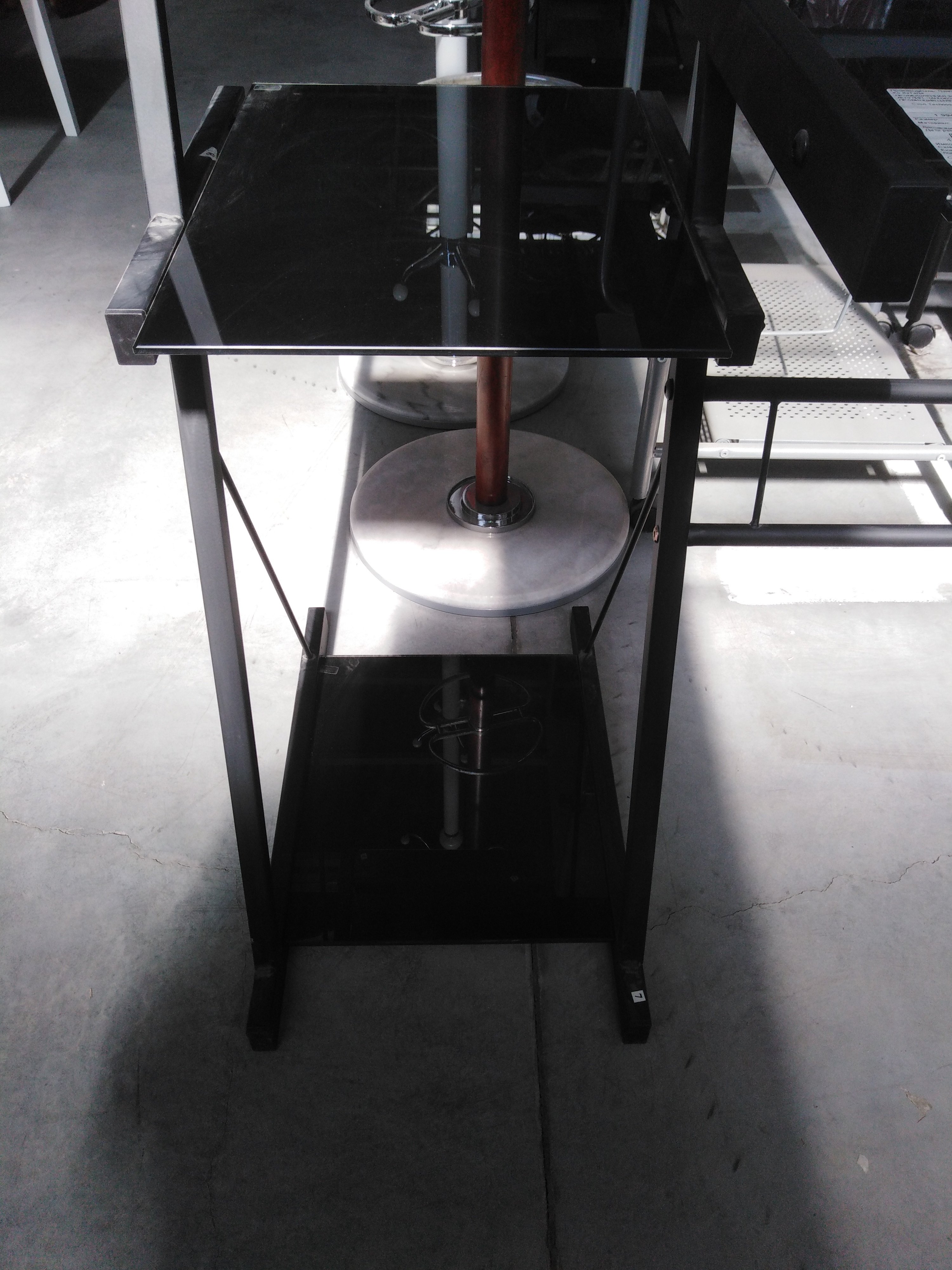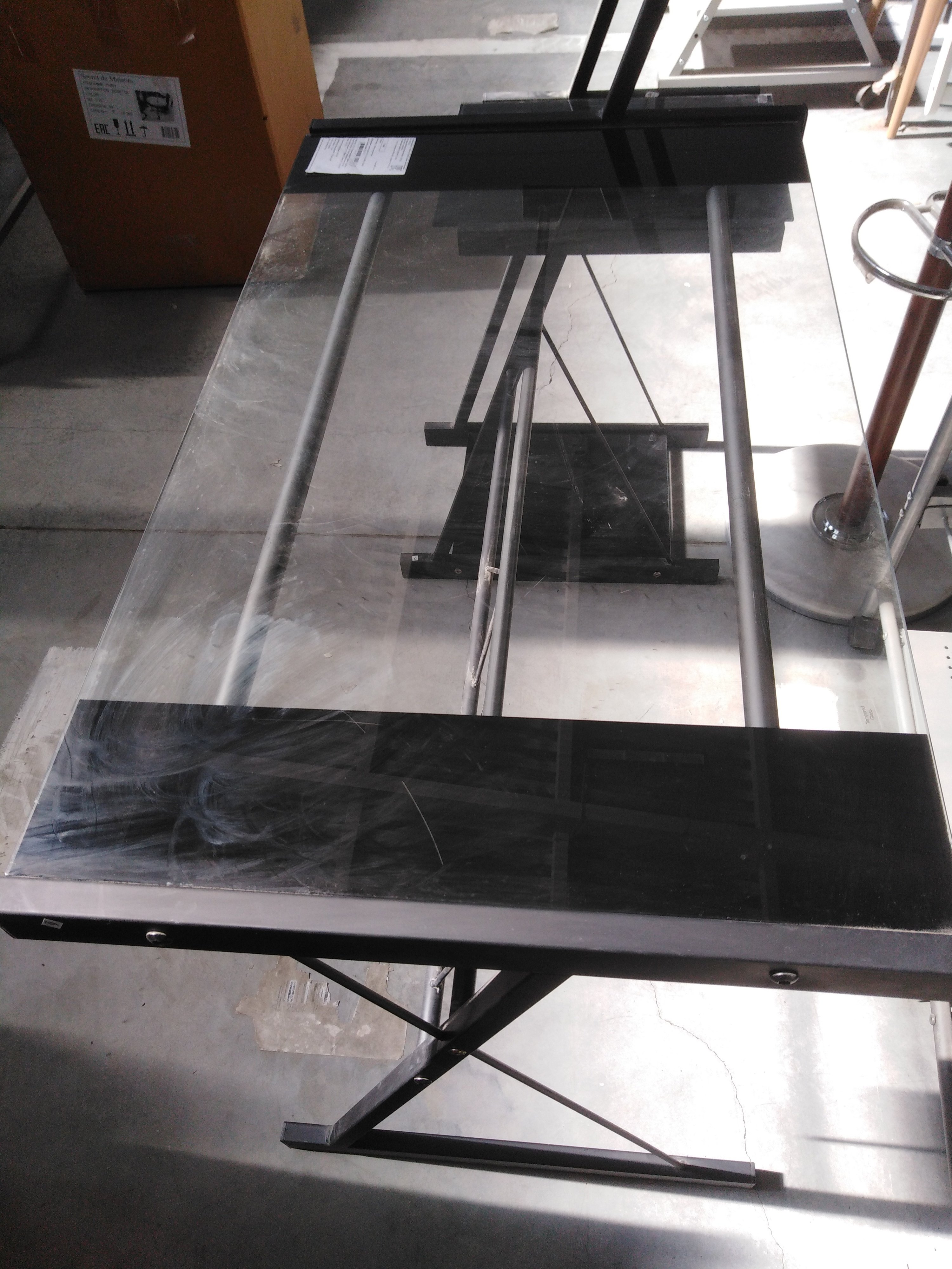 Описание товара без дефектов: Металлокаркас. Плоскостные поверхности - закалённое стекло (5 мм). Цвет: металл - чёрный, стекло - бесцветный. Размры: 113х61,5х90,5 см