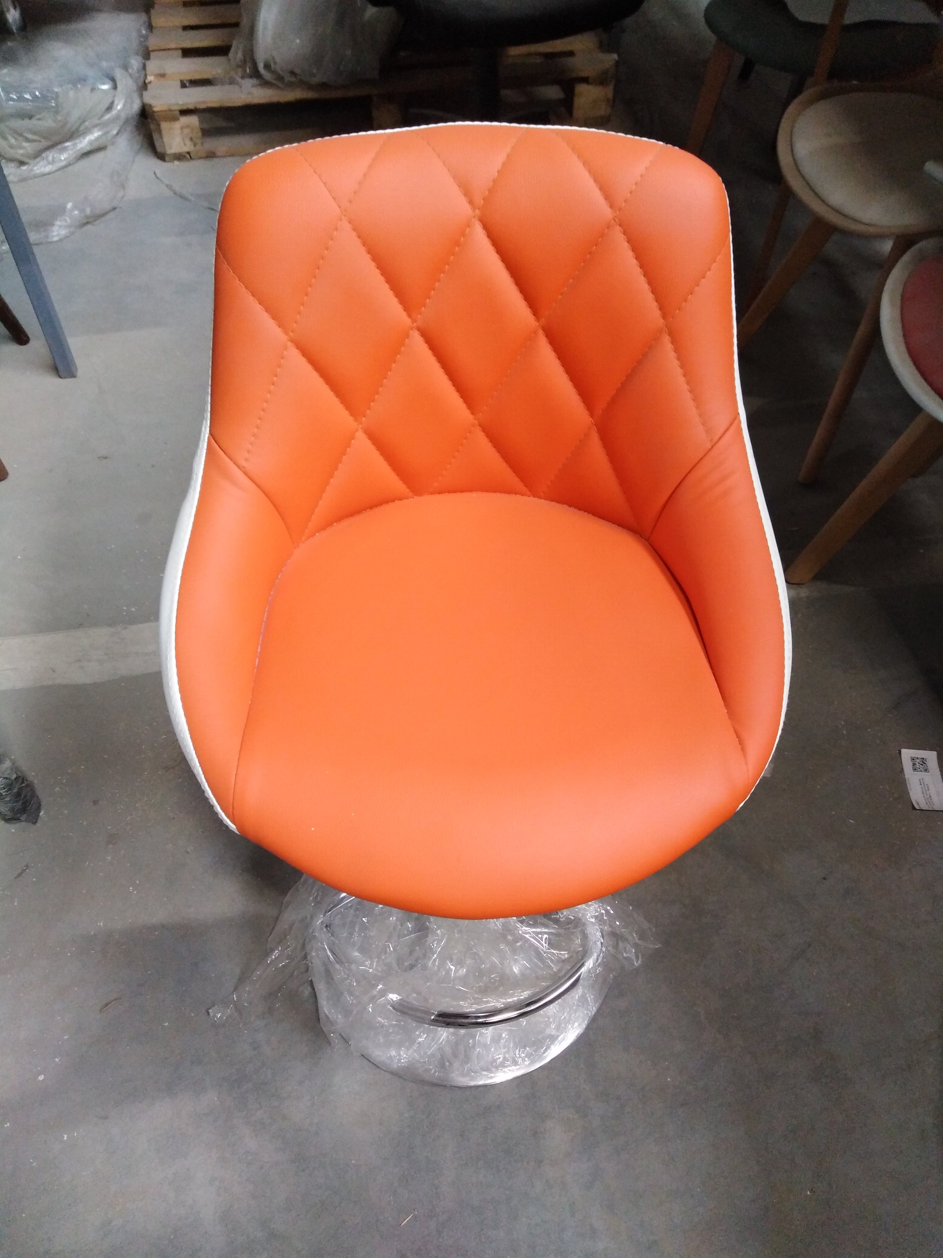 Описание товара без дефектов: Стильный барный стул MESSY из коллекции Modern задает настроение вашему пространству. Удобный и привлекательный стул будет украшением городской квартиры, загородного дома, кафе или ресторана. Оригинальное сочетание хромированного металла с черно-белой обивкой из экокожи выглядит стильно и современно. Удобная спинка, мягкое сиденье, подставка для ног и механизм регулировки высоты позволят комфортно расположиться за барной стойкой на продолжительное время. Круглое основание из стали с хромированным покрытием придает стулу большую устойчивость. Имеется поворотный механизм 360 градусов. Обивка из экокожи – красивая, надежная, легкая в уходе. Материал сочетает в себе мягкость и эластичность натуральной кожи с прочностью текстильных волокон. Металл – надежный материал, благодаря которому стул будет радовать вас своим первоначальным видом долгие годы. Стул хорошо подойдет для гостиной, для кухни, для бара, для ресторана или для кафе. Стул очень прост в сборке, инструкция по сборке прилагается.