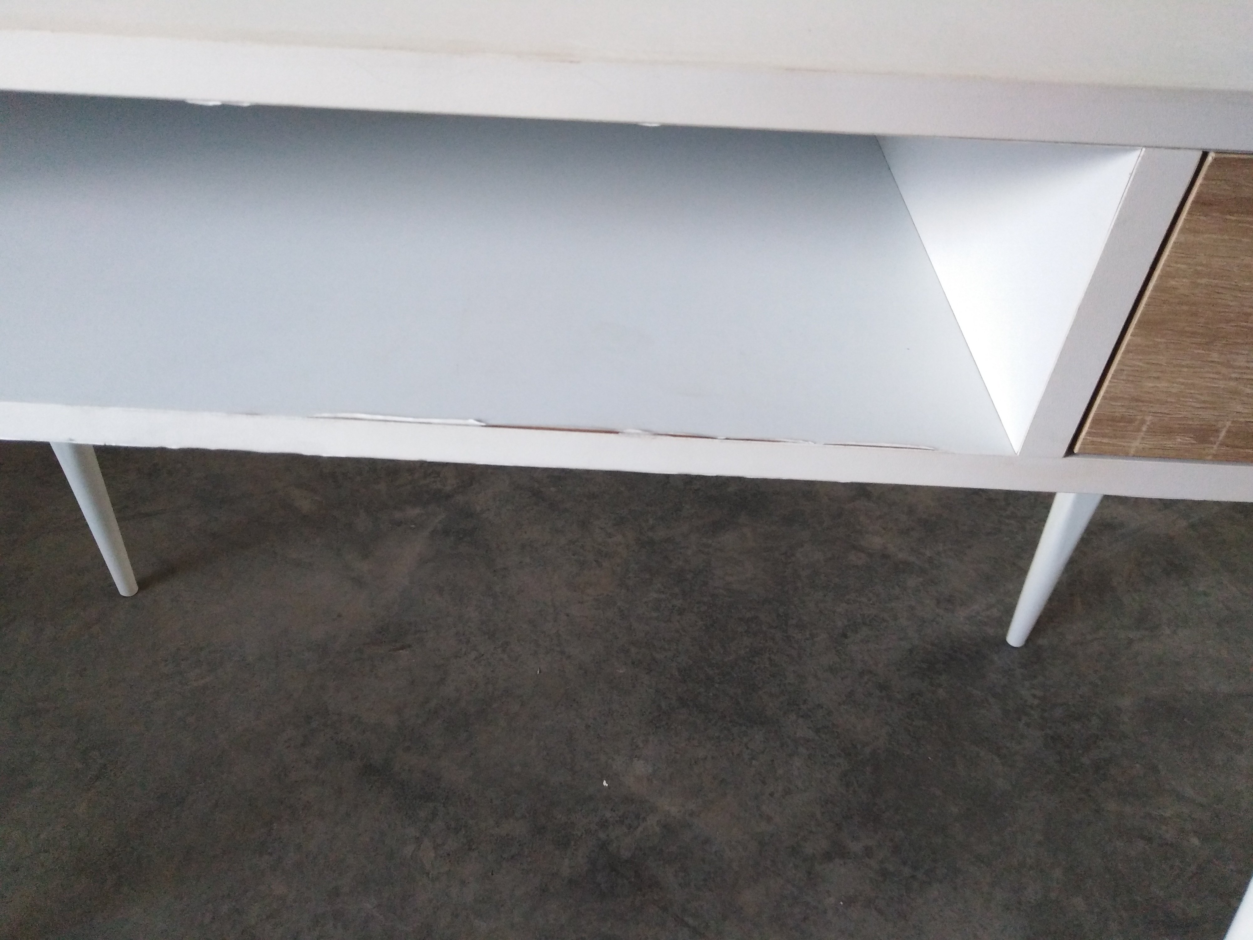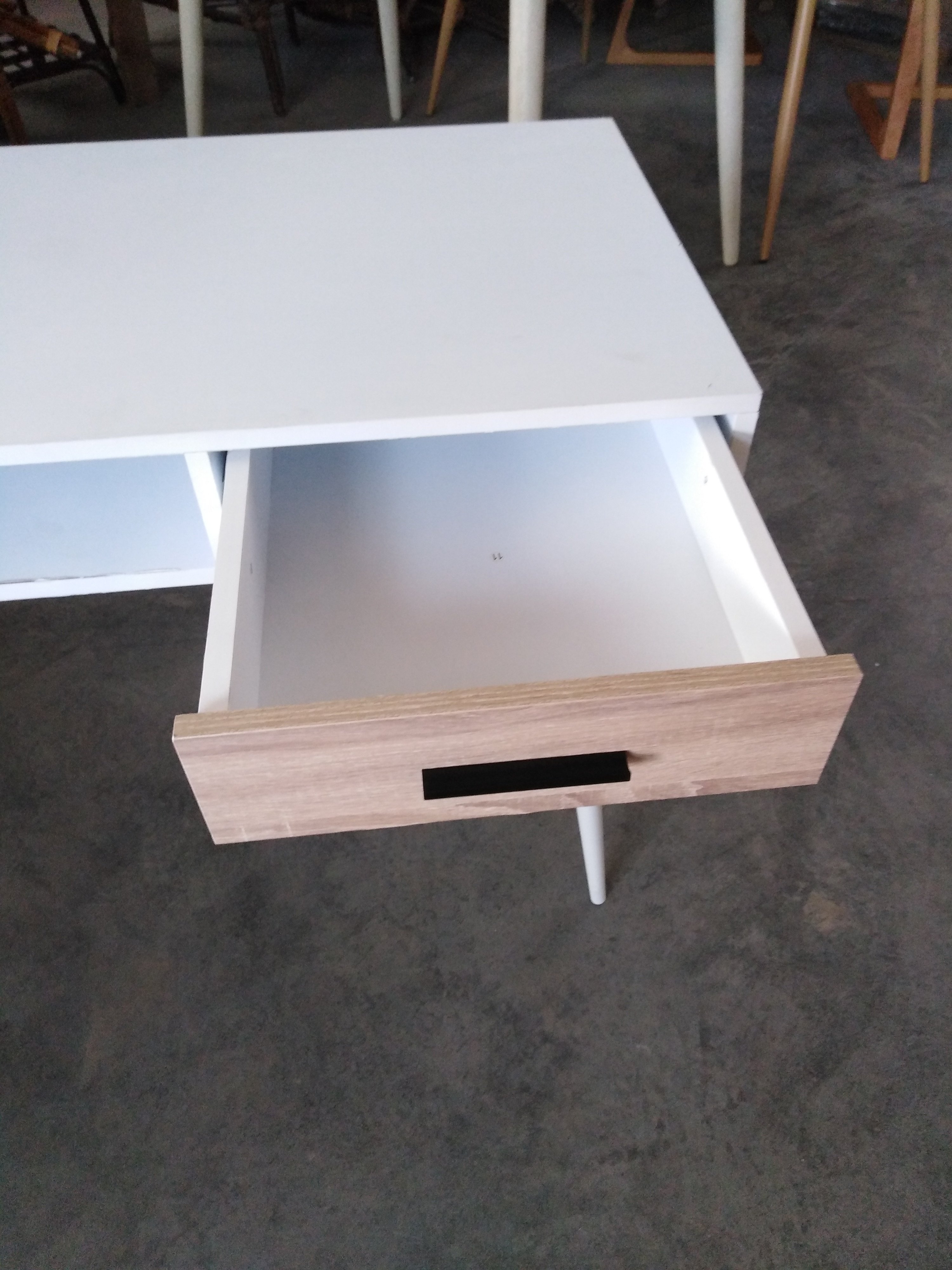 Описание товара без дефектов: Столешница: МДФ 15 мм (Е1), ПВХ пленка Каркас: круглая металлическая труба (38*0,8 мм), порошковая покраска. Регулируемые опоры ножек, выдвижной ящик, ниша Размеры 110*50*75