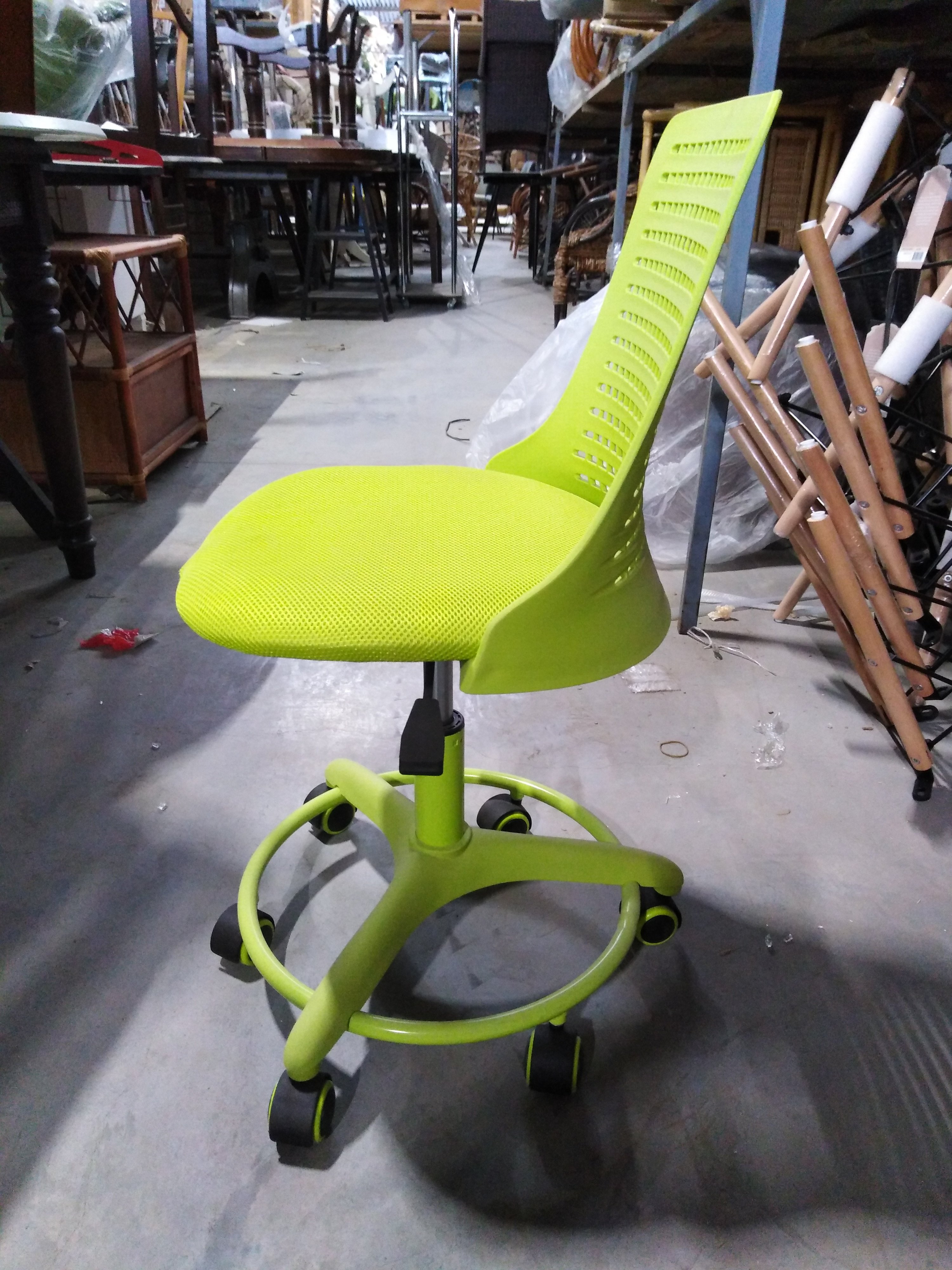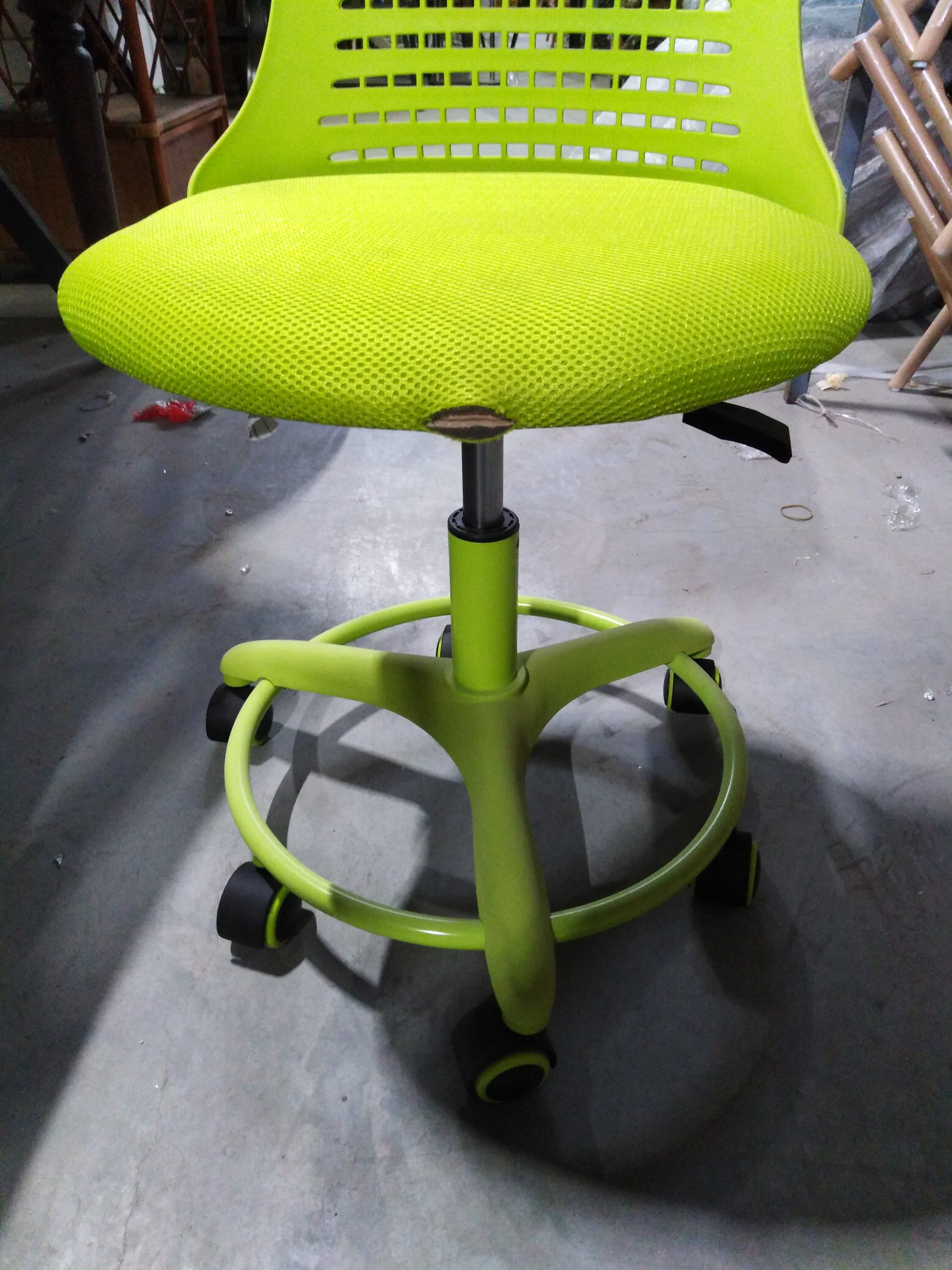 Описание товара без дефектов: Оригинальное кресло KIDDY – это незаменимый предмет мебели в комнате вашего ребенка. Привлекательная модель салатового цвета прекрасно дополнит любой интерьер и создаст в помещении атмосферу комфорта и уюта. Пластиковый каркас модели салатового цвета долговечен и надежен, не теряет своего первоначального вида продолжительное время. Сиденье слатового цвета выполнено из сетчатой ткани с дополнительной перфорацией для поступления воздуха. Сетка, используемая при изготовлении кресла, выдерживает до 25 000 циклов на истирание по Мартиндейлу. В сиденье используется мягкий наполнитель из пенополиуретана стандартной плотности. Прочная и устойчивая пластиковая крестовина диаметром 500 мм оснащена металлической подставкой для ног, которая позволит ребенку расположиться на кресле с комфортом и удобством. Бесшумные высококачественные прорезиненные ролики не повреждают поверхность, подойдут для использования на паркете и ламинате. Ролики и крестовина в креслах бренда TETCHAIR соответствуют стандарту BIFMA. Во всех креслах бренда TETCHAIR используются газлифты 3 класса, он способен выдерживать вес до 80 кг. Яркая расцветка, привлекательный дизайн, крепкое основание, эргономичная спинка и надежный механизм регулировки высоты будут доставлять удовольствие, восхищать вас и вашего ребенка долгие годы. Модель поставляется в разобранном виде. Необходима несложная сборка по прилагаемой инструкции. Максимальная нагрузка модели 80 кг.