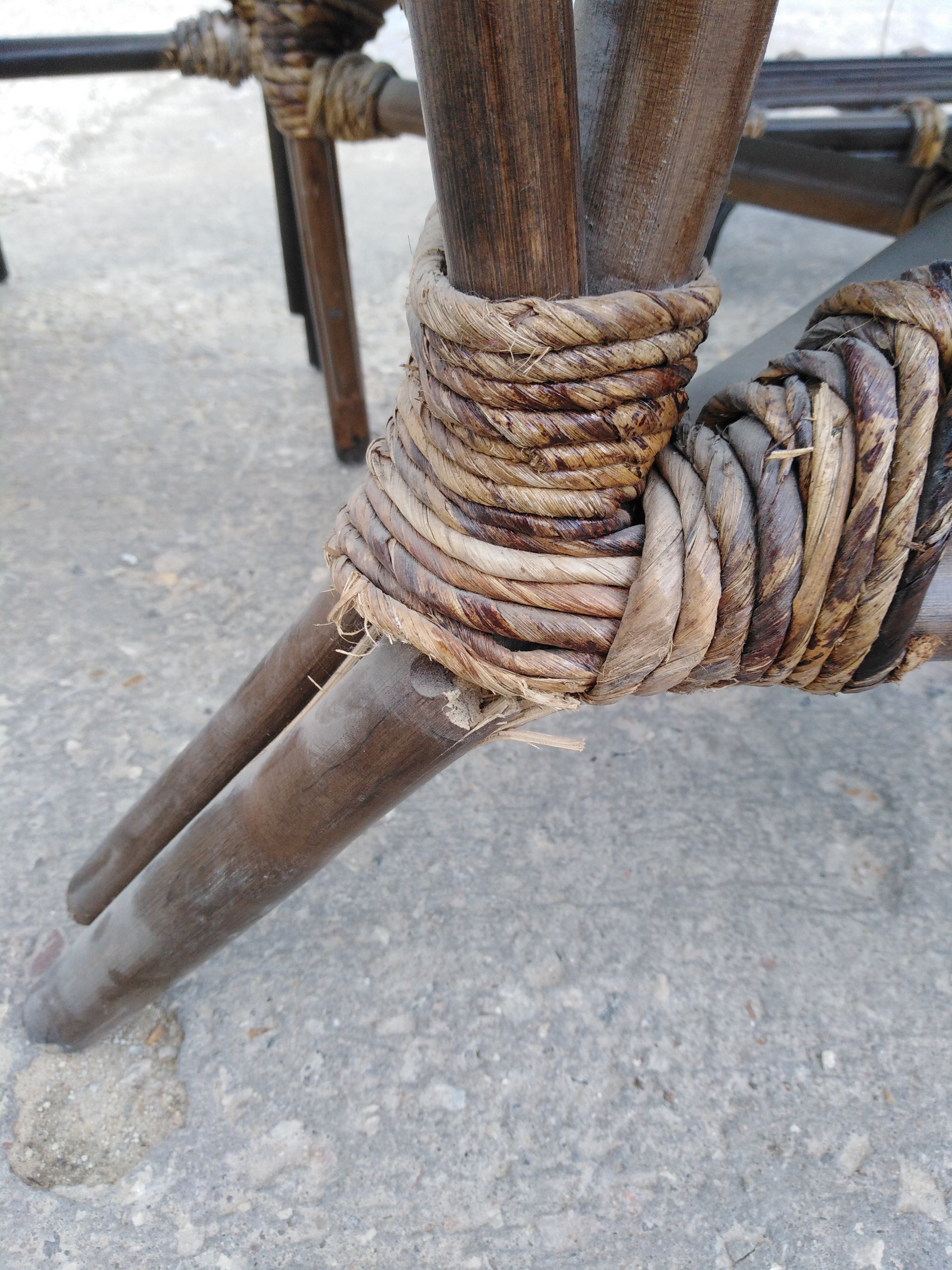 Описание дефекта: Подломлена задняя ножка у дивана, нарушение ЛКП, нарушение плетения, сколы