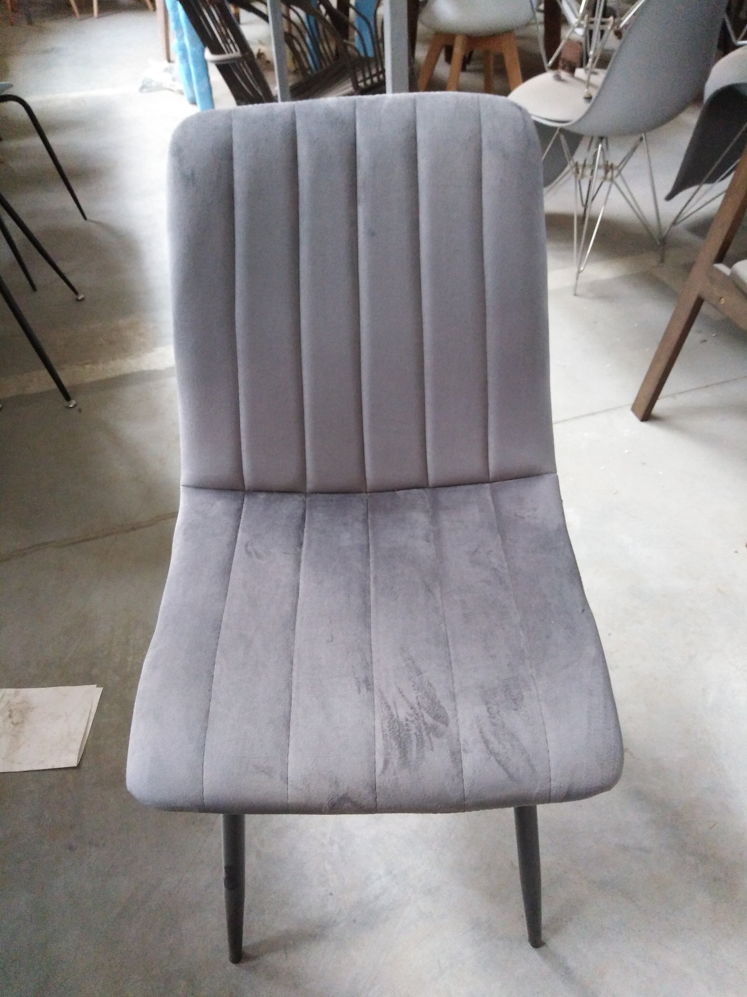 Описание товара без дефектов: Великолепный стул DUBLIN из коллекции Modern сделает ваш интерьер не только стильным, но по-домашнему уютным и комфортным. Тонкие изящные ножки в сочетании со стеганой обивкой из вельвета серого цвета выгодно выделяют его в интерьере. Мягкое сиденье и спинка позволяют комфортно сидеть в течение длительного времени. Бархатистая и приятная на ощупь поверхность обивки обеспечит максимальный комфорт и уют. Четыре прочные ножки делают модель устойчивой и надежной. Тканевая обивка не мнётся, не меняет форму, пропускает воздух, экологична и гипоаллергенна. Этот стильный и удобный стул отлично впишется в интерьер гостиной, кухни или столовой.