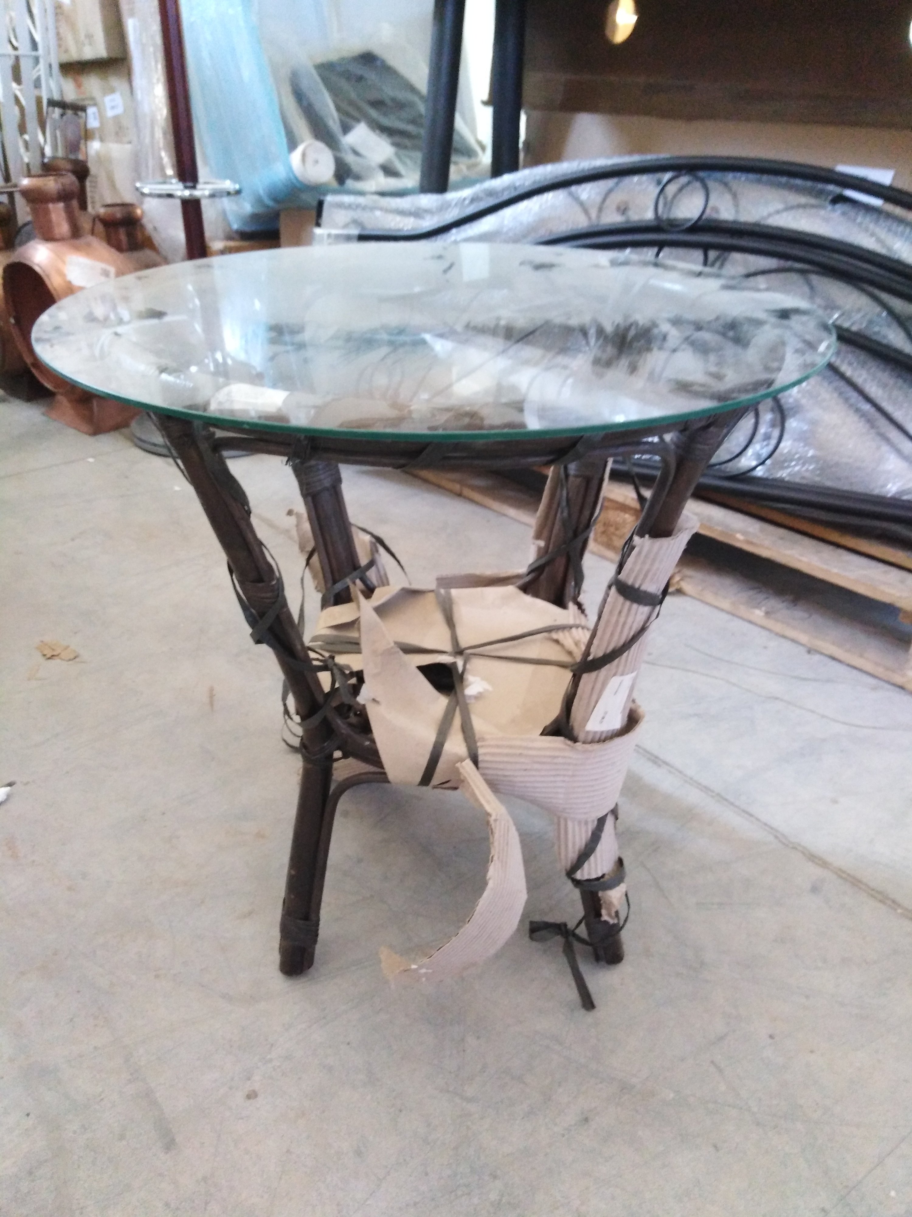 Описание дефекта: Нарушение ЛКП на ножках. Нарушение плетения ротанга, отсутствуют присоски дл стекла