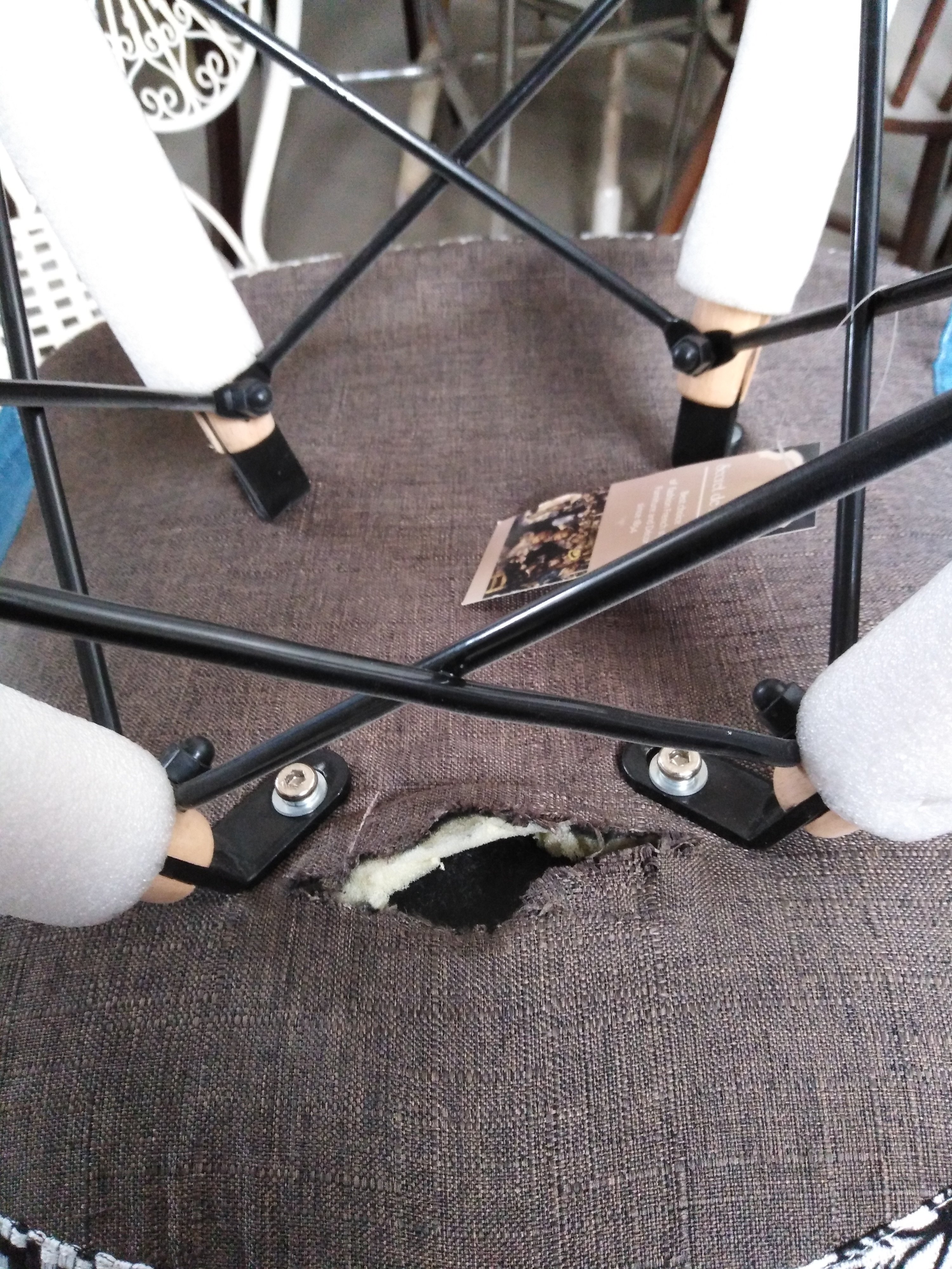 Описание дефекта: Во время эксплуатации треснула фанера сидения в месте крепления одной из ножек