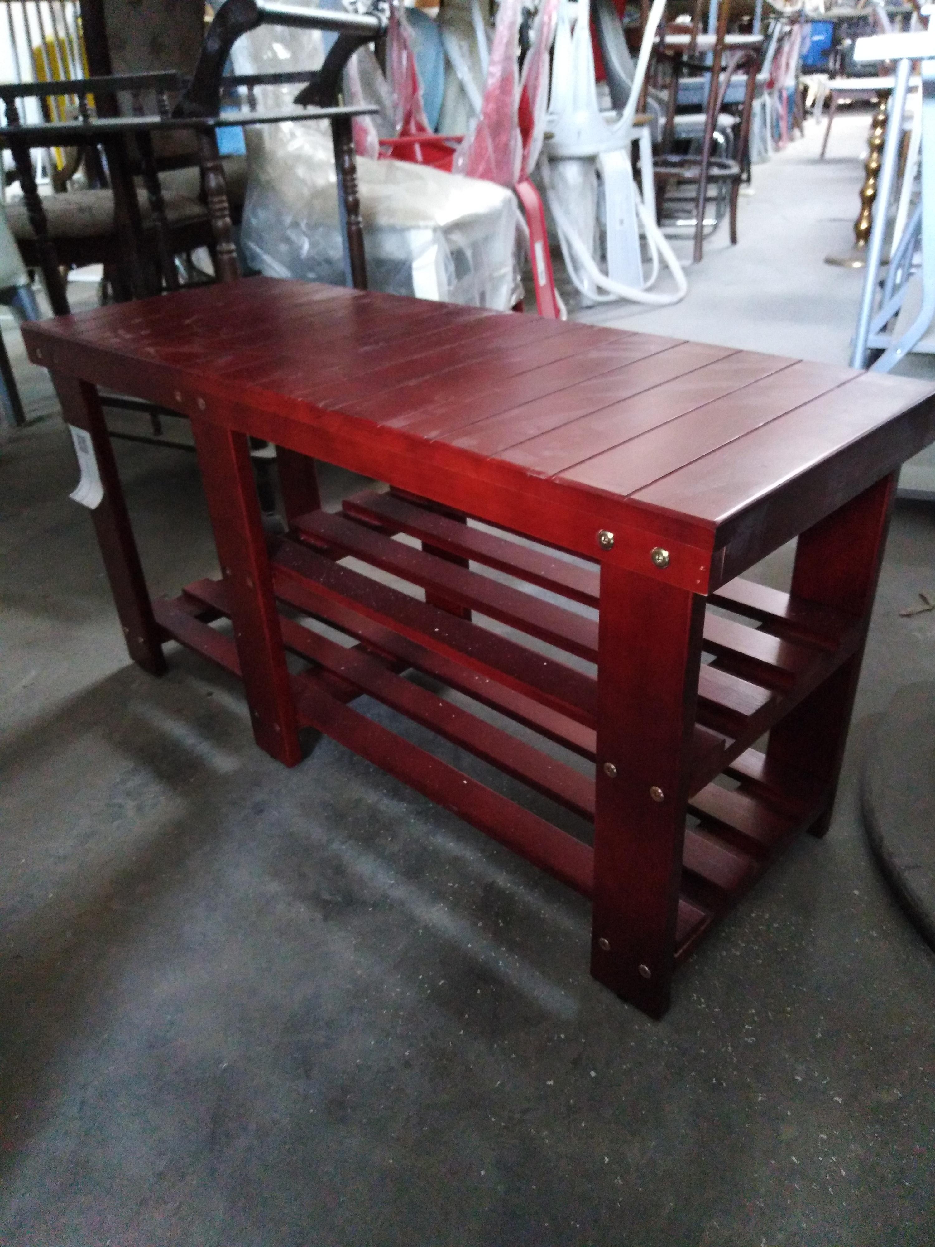 Описание товара без дефектов: Обувница-скамья. Материал: МДФ/дерево. Цвет: вишня (сherry). Размеры: 90х33х45,5 см