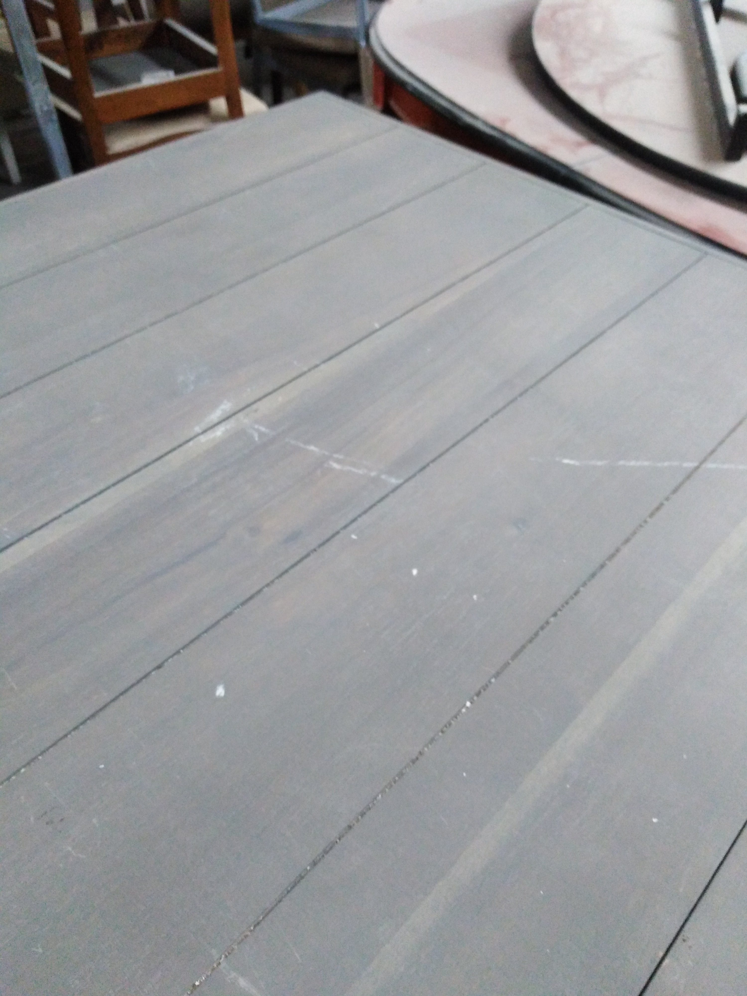 Описание дефекта: Потёртости и непрокрасы на столешнице. Сколы и трещины на ножках