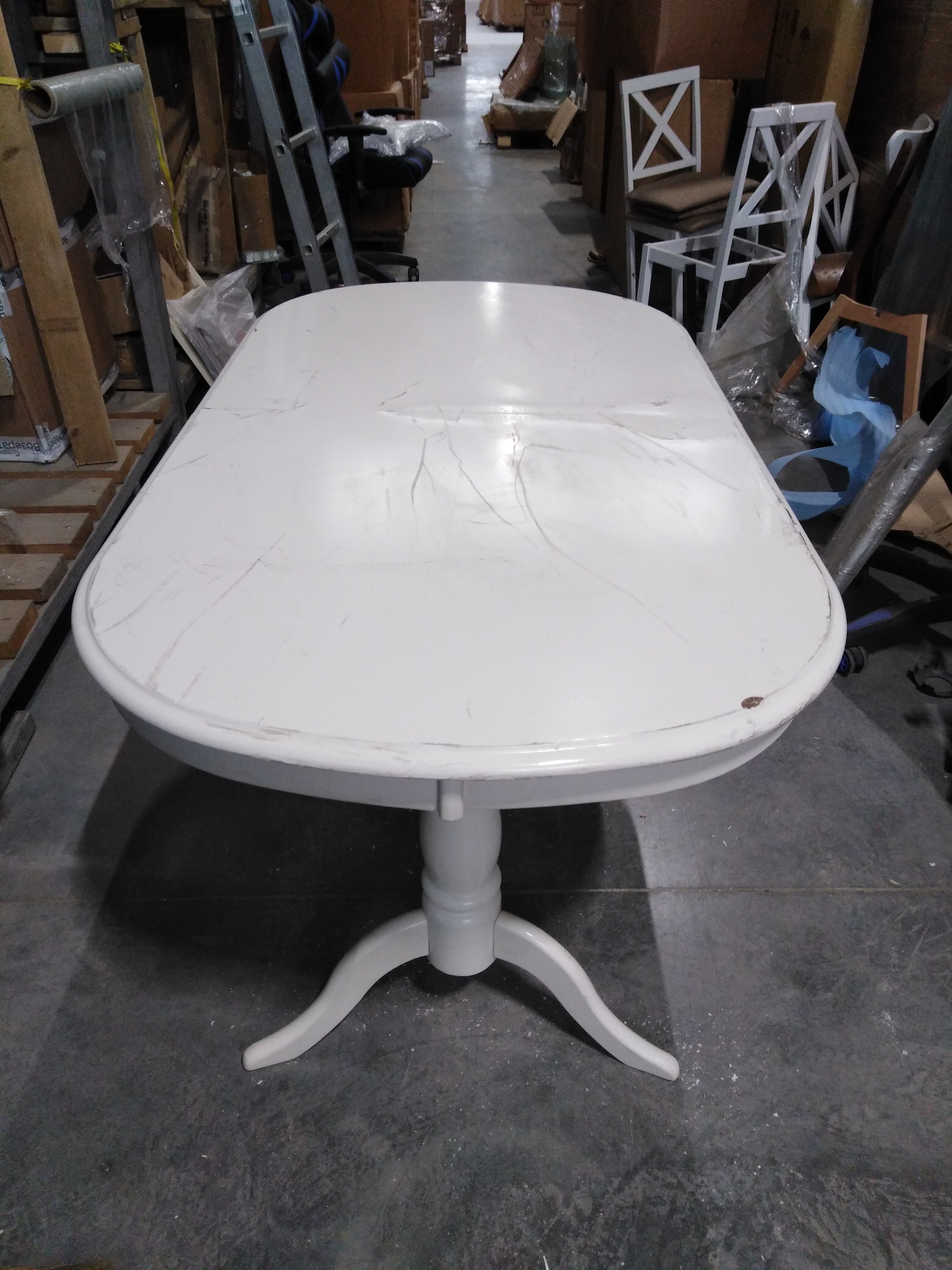 Описание товара без дефектов: Уникальной чертой раскладного обеденного стола «Сиена» (Siena) из Миланской коллекции является его оригинальный размер. При небольшой ширине стол можно разложить до 220 см, что позволит с комфортом разместить за ним большую компанию. Стол прекрасно впишется в интерьер и небольшой комнаты и просторной гостиной, идеальное решение для загородного дома или городской квартиры . Модель изготовлена из надежной древесины - массива гевеи с привлекательным природным рисунком. Резные ножки удивят вас устойчивостью и фундаментальностью, несмотря на изящный и элегантный внешний вид. Столешница выполенеа из МДФ Деревянный раскладной стол «Сиена» (Siena) цвета слоновой кости (Ivory white) впечатлит своей величиной, прочностью, простотой в уходе и долговечностью. Он придаст помещению строгость, элегантность и изысканность, привлечет внимание гостей к обеденной зоне. Идеальное решение для столовой, гостиной или кухни. Стол прост в сборке, инструкция по сборке прилагается.