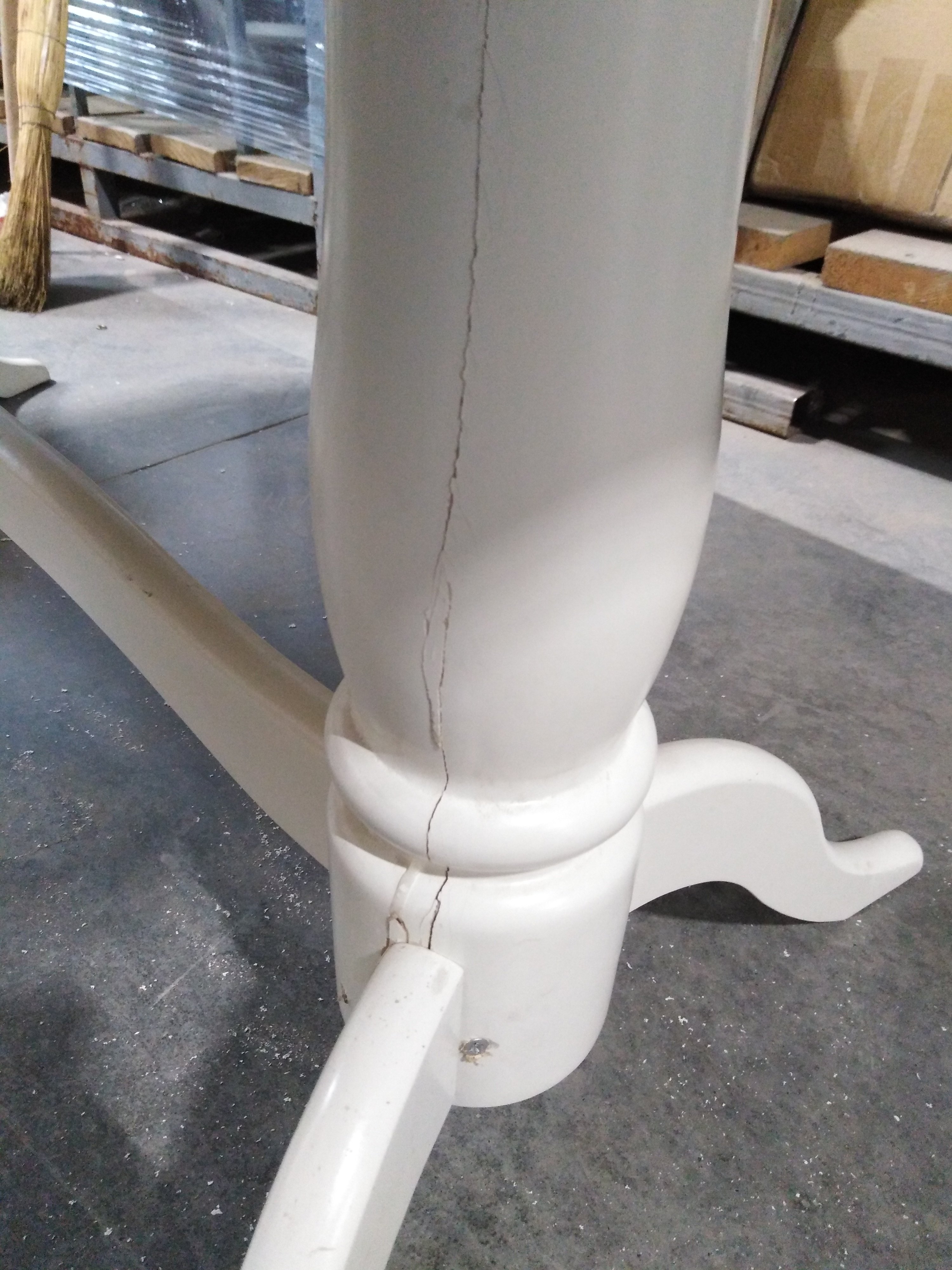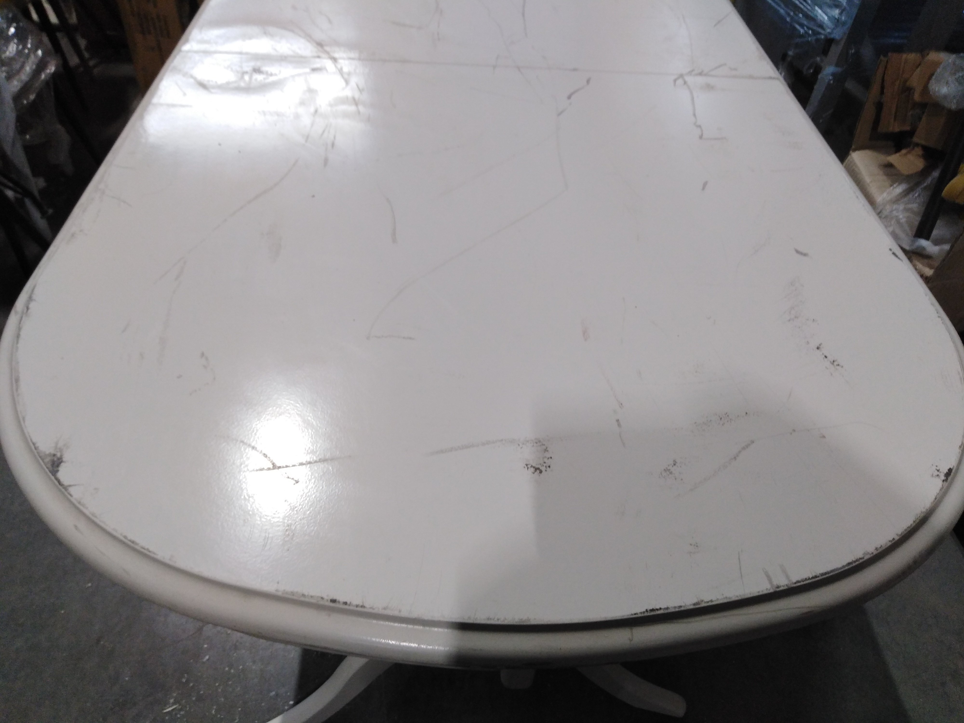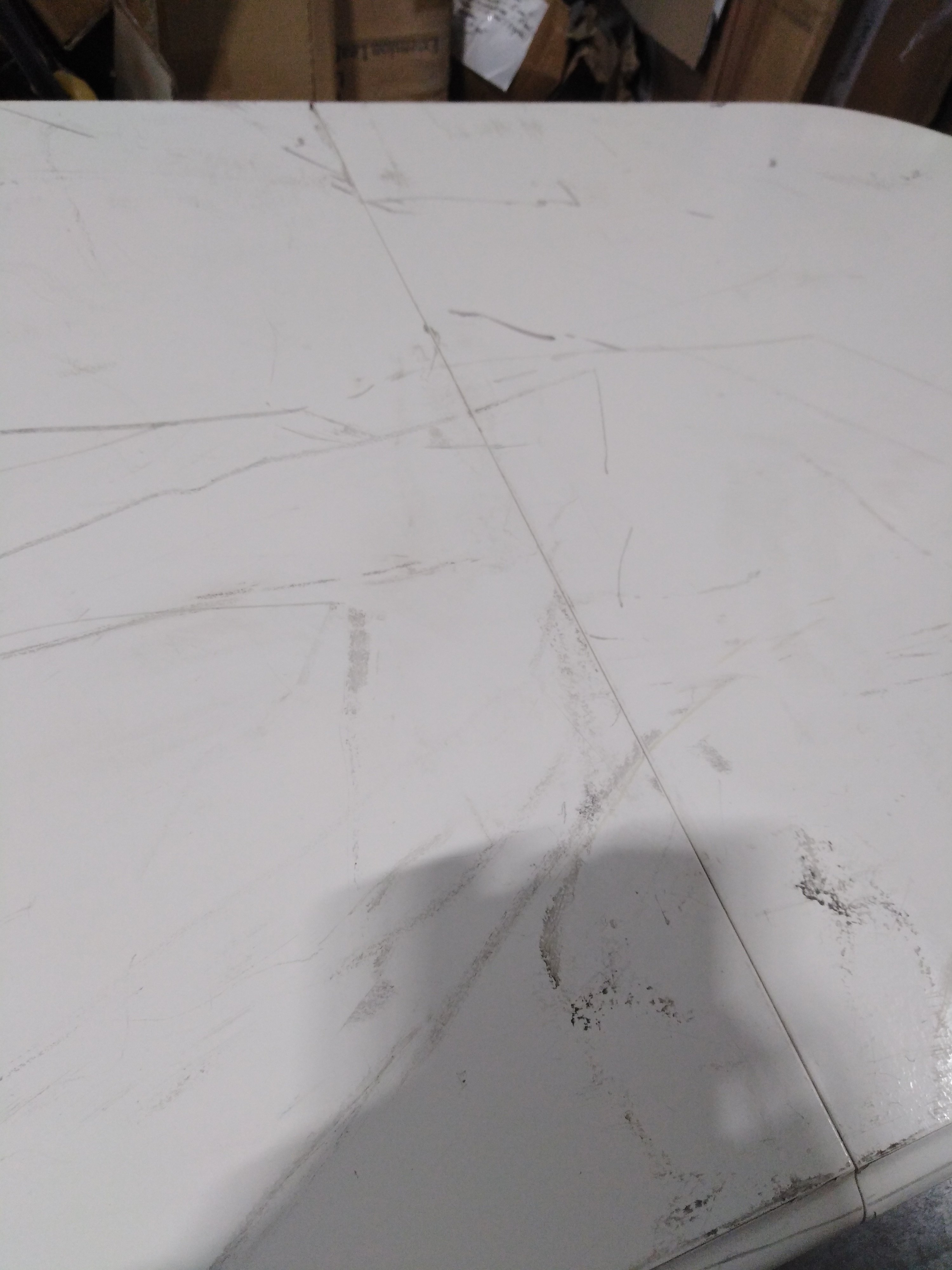 Описание дефекта: Многочисленные царапины на столешнице, лопнута одна опора, нет вставки.