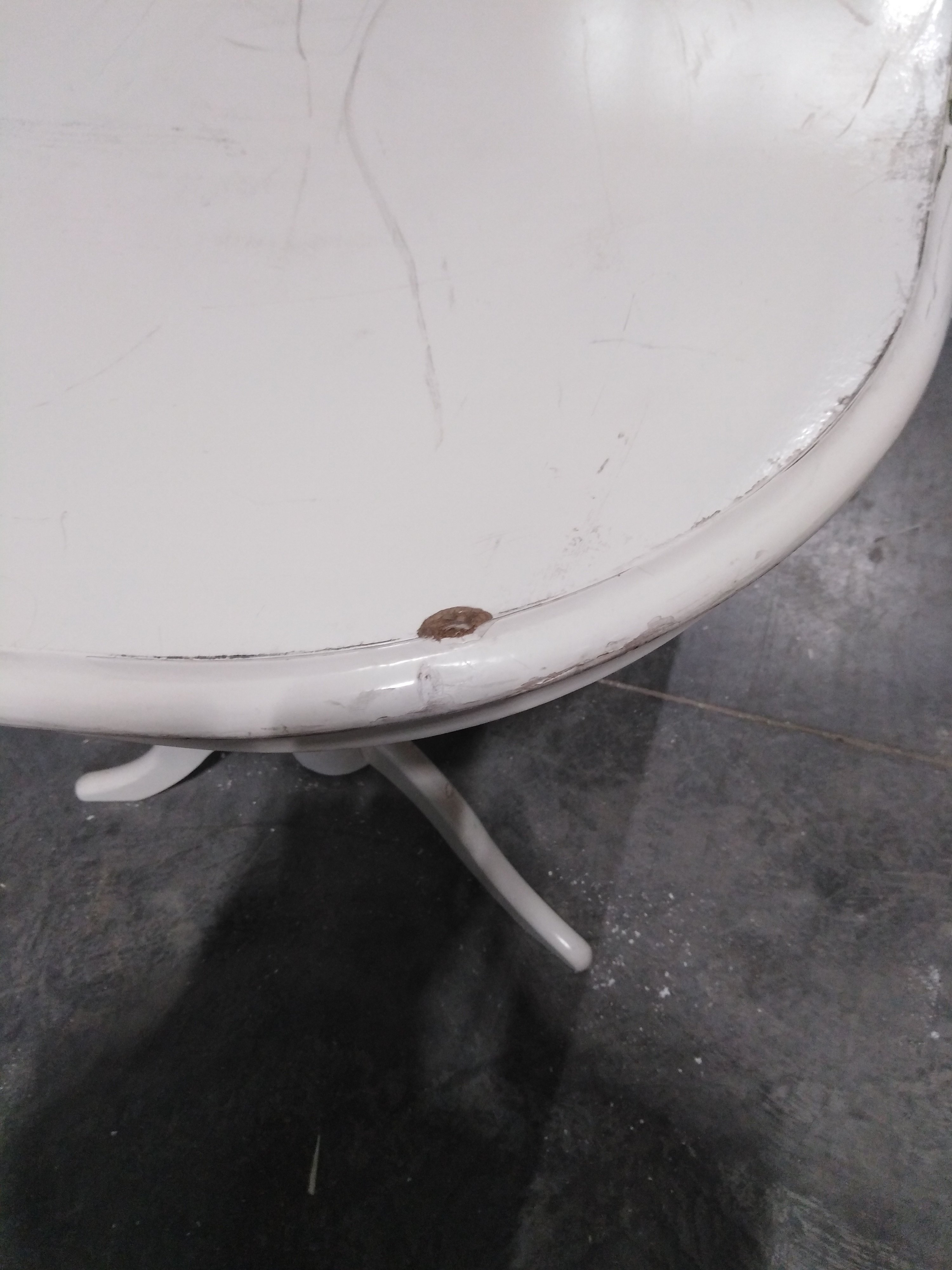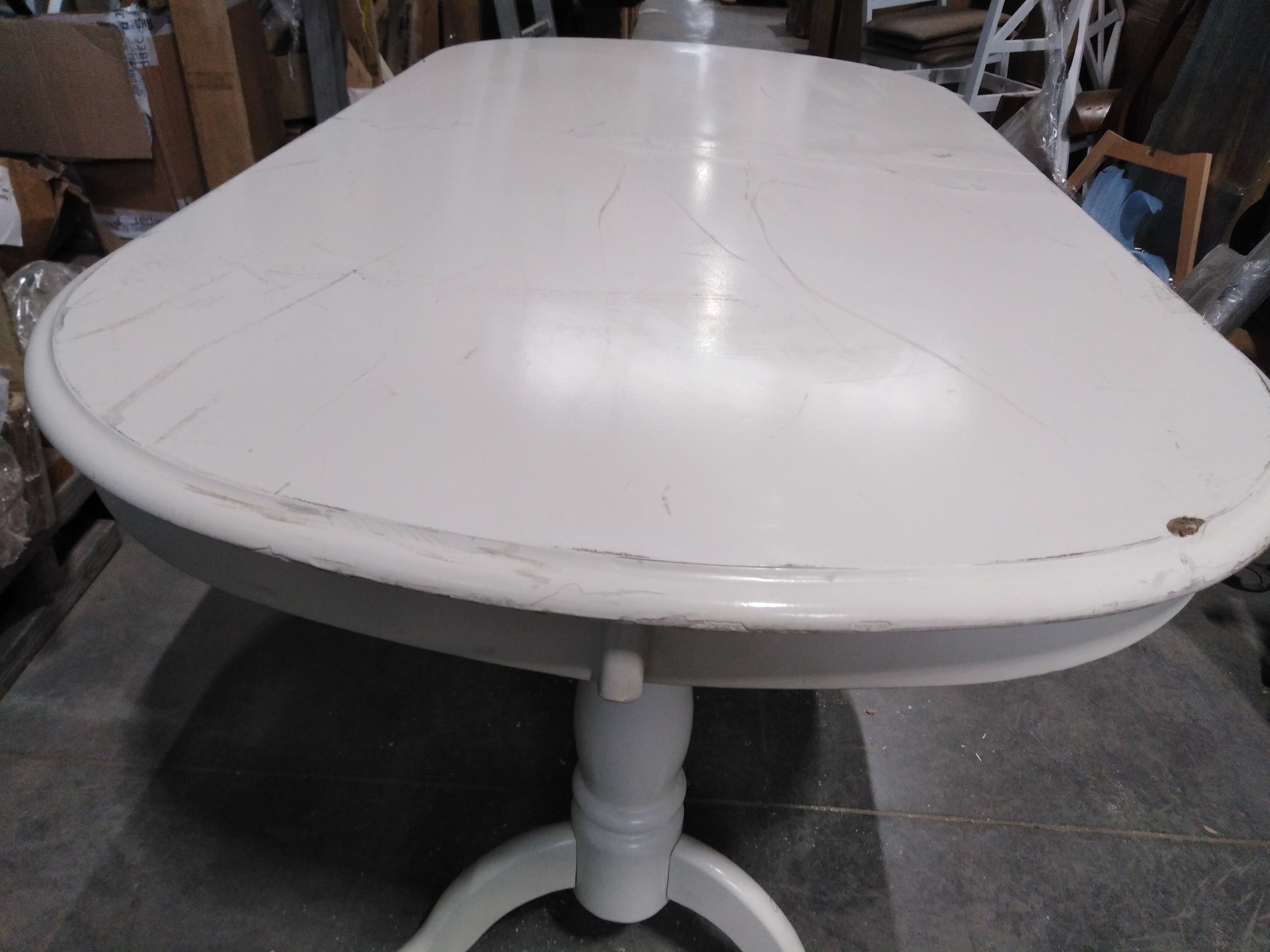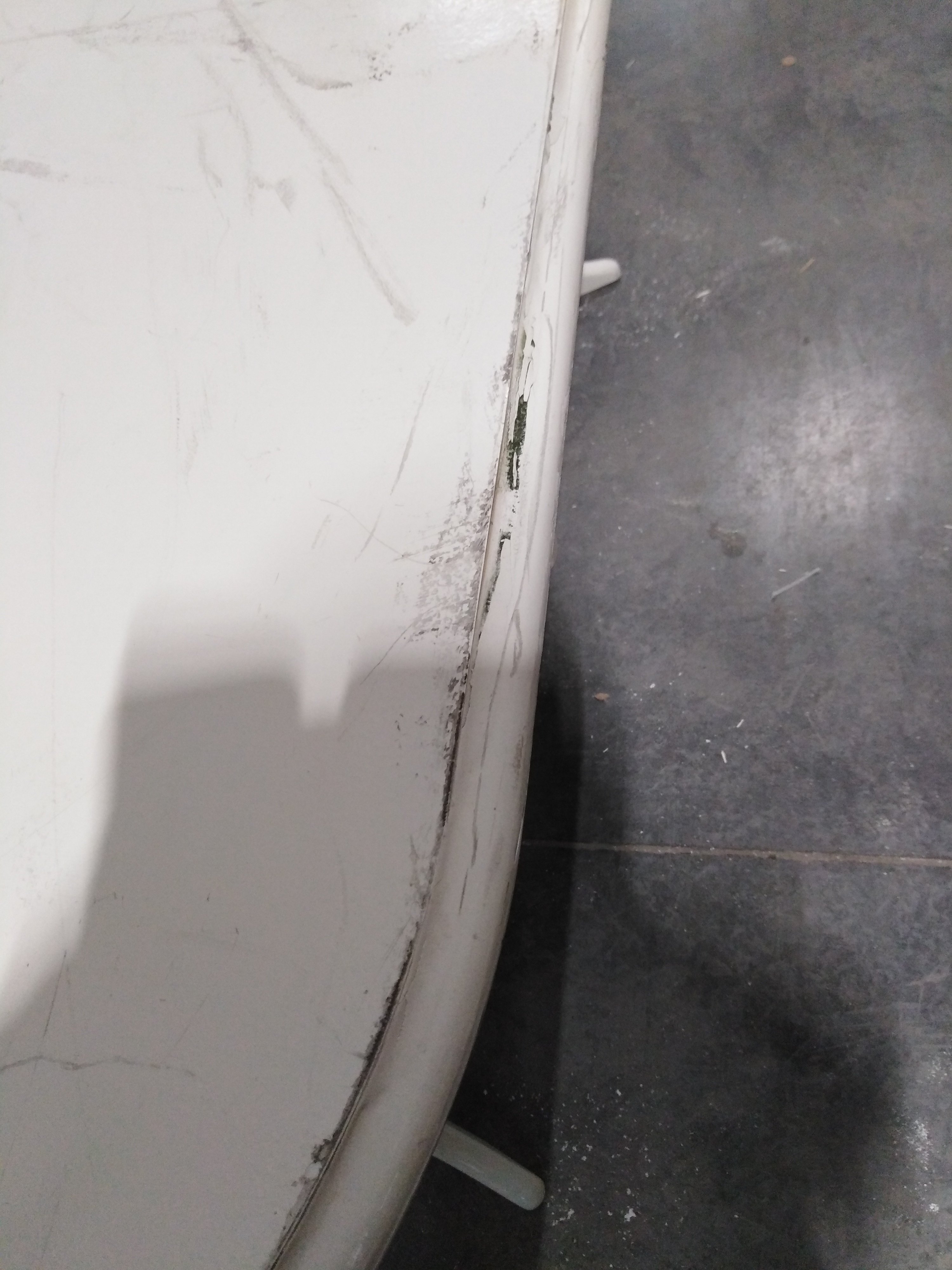 Описание дефекта: Многочисленные царапины на столешнице, лопнута одна опора, нет вставки.