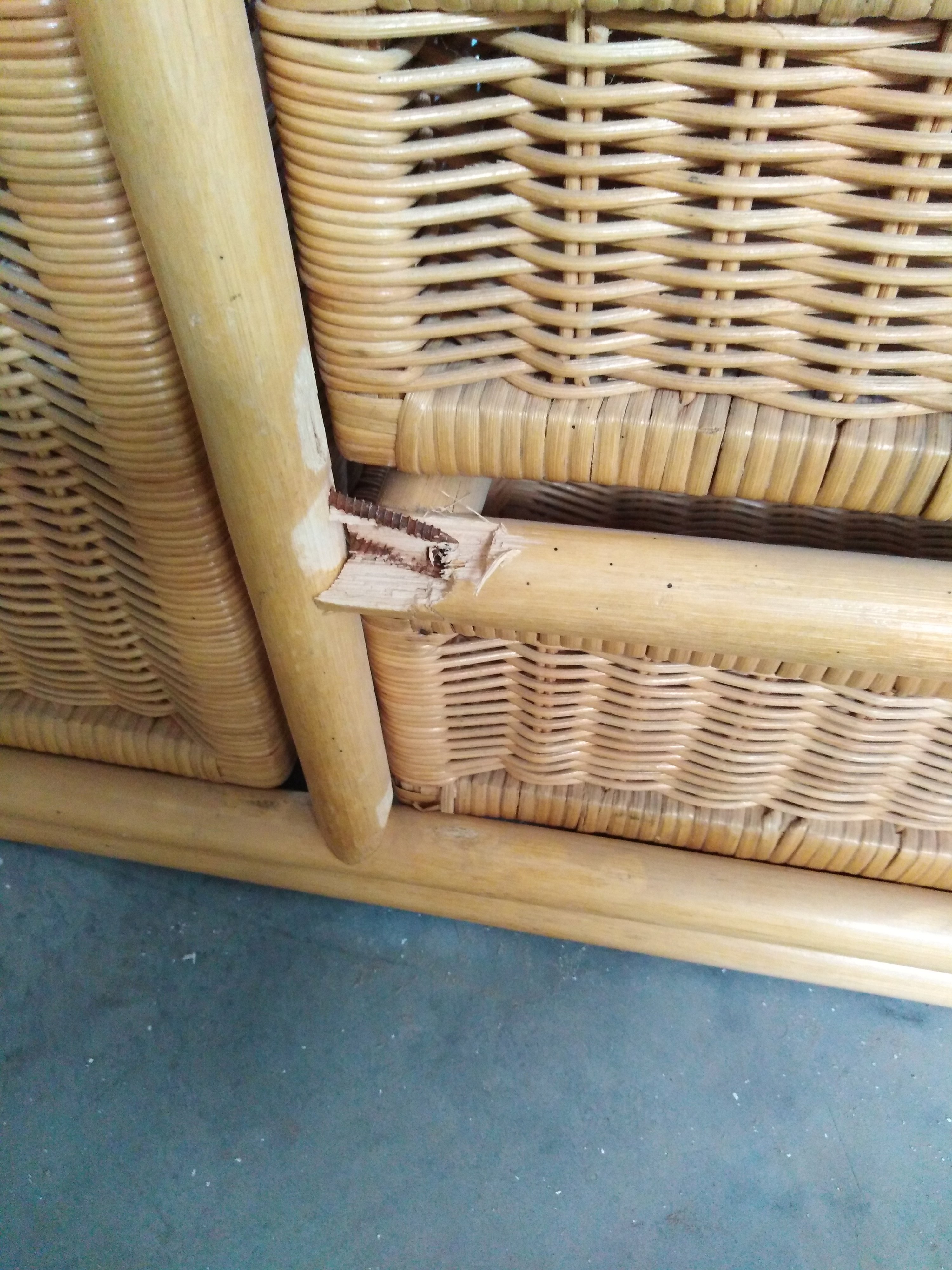 Описание дефекта: нарушение плетения и сколы и трещины на ротанге