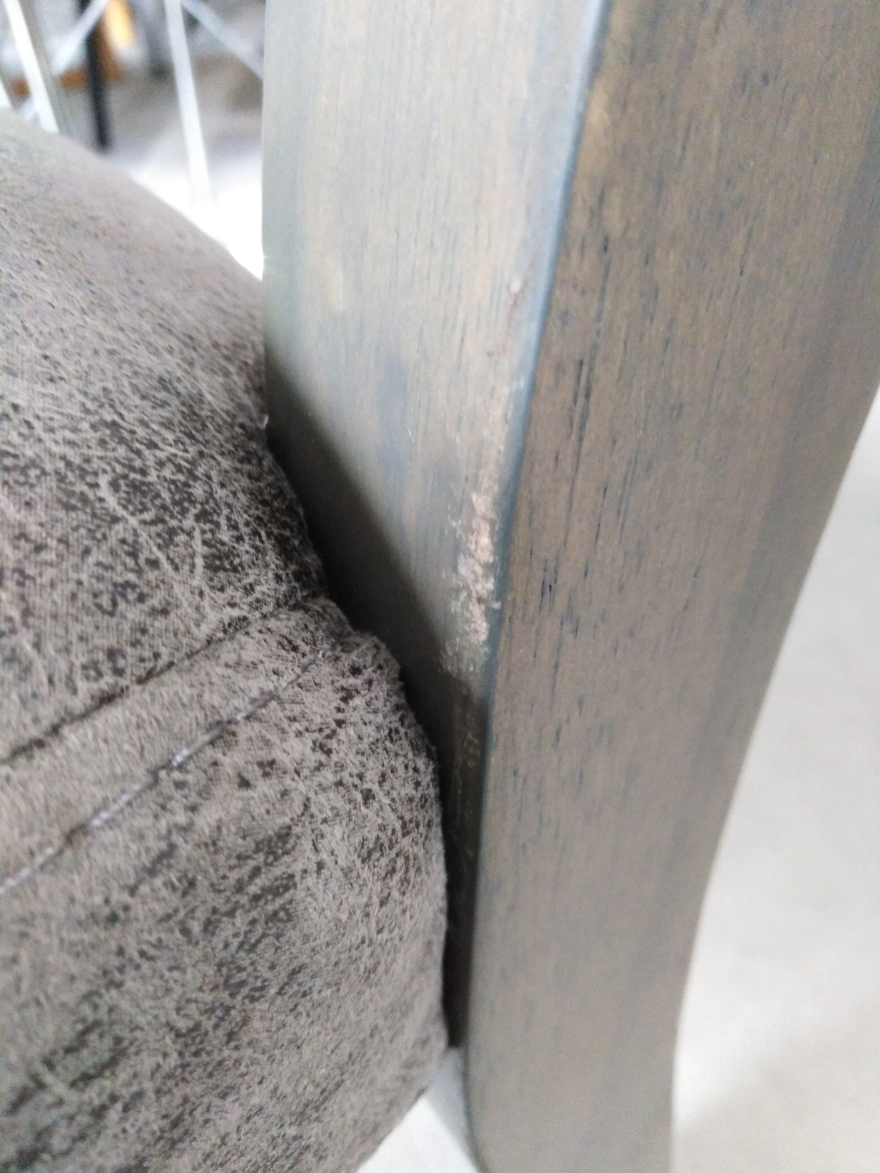 Описание дефекта: Нарушение ЛКП на деревянных поверхностях. Потёртости на коже сидения и спинки