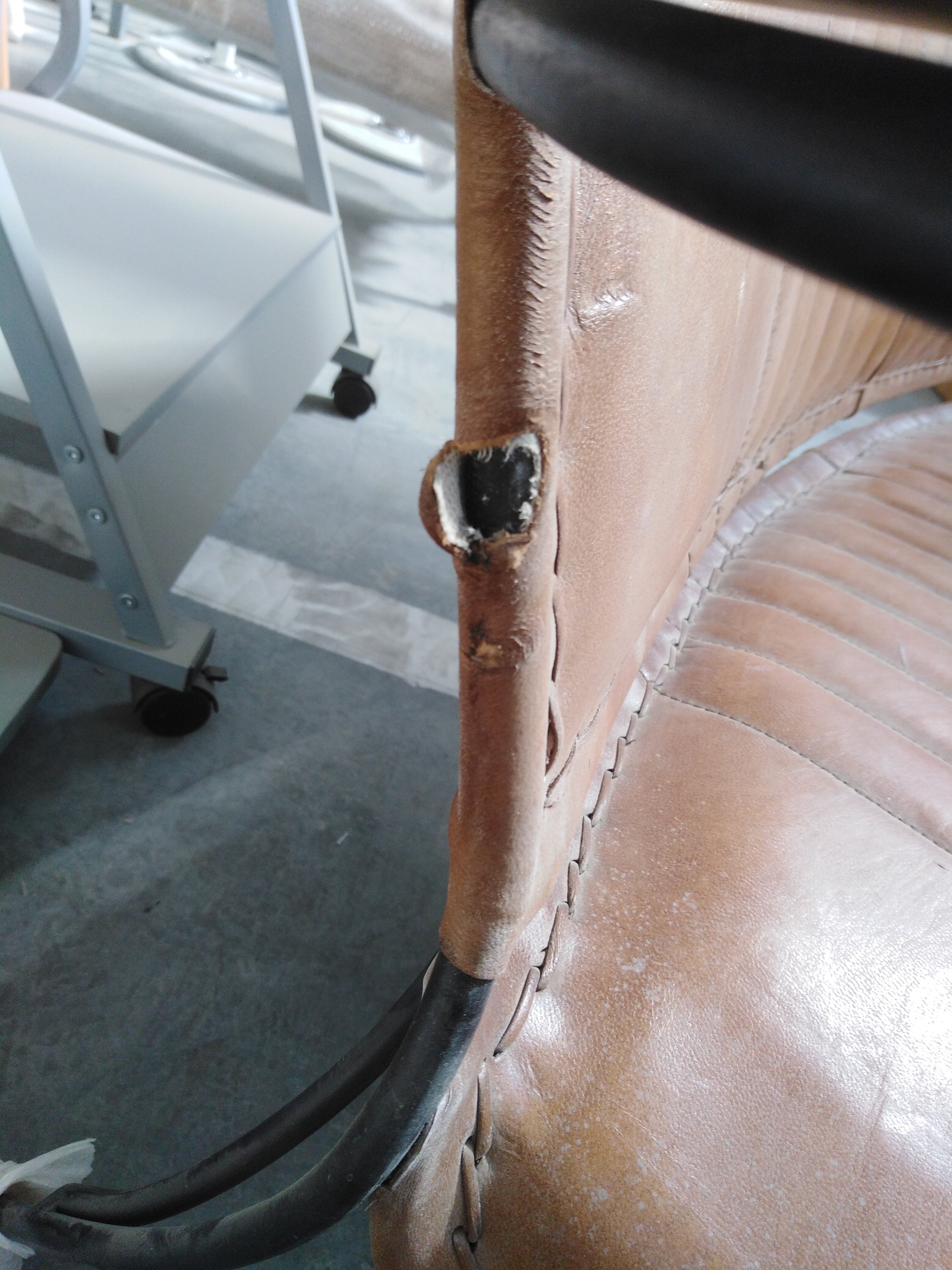Описание дефекта: Нарушение ЛКП, трещины на подлокотниках, задиры на коже