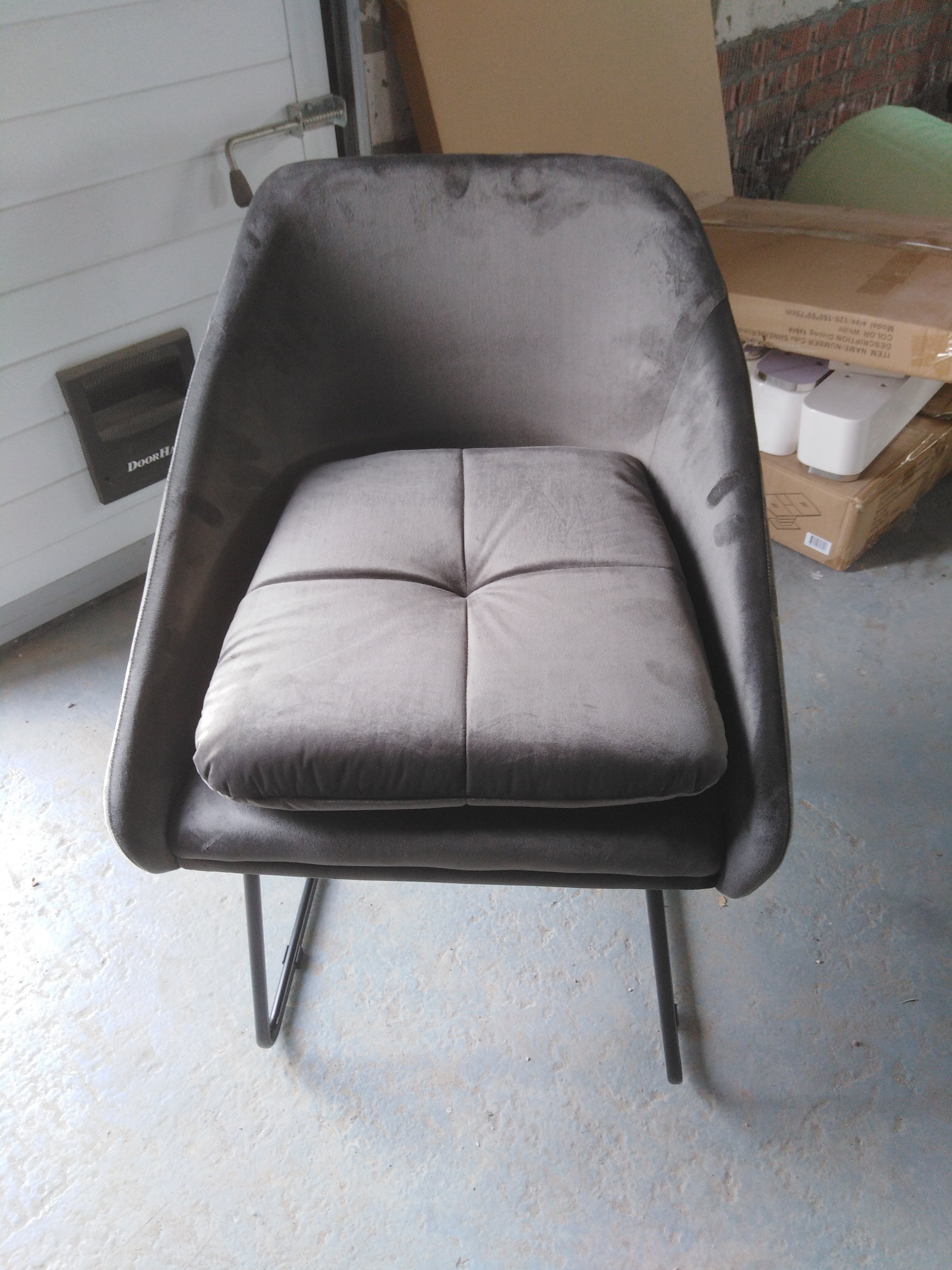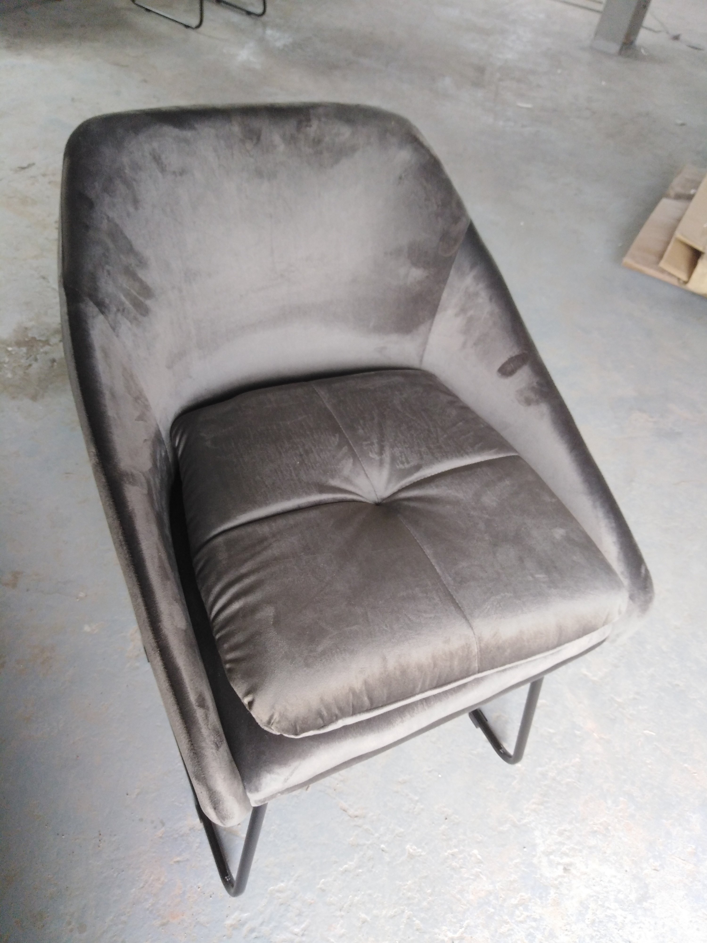 Описание товара без дефектов: Оригинальное кресло STAR из коллекции Modern – это не только уютный предмет мебели, но и важный акцент в интерьере, который может задать настроение комнате. Оно будет хорошо смотреться в гостиной, столовой, кухне, спальне, кафе. Необычный металлический каркас черного цвета прекрасно сочетается с серой тканевой обивкой из вельвета. Модель станет идеальным дополнением современного, стильного пространства. Мягкая подушка под спину, невысокие подлокотники и удобное сиденье позволят комфортно расположиться на долгое время. Тканевая обивка из вельвета серого цвета не мнётся, не меняет форму, пропускает воздух, экологична и гипоаллергенна. Металлические ножки с пластиковыми подпятниками делают кресло прочным, устойчивым, предотвращают появление царапин на напольном покрытии. Данная модель прослужит вам долгие годы, радуя своим первоначальным видом. Кресло подойдёт для гостиной, для кухни или для спальни. Кресло очень простое в сборке, инструкция по сборке прилагается.