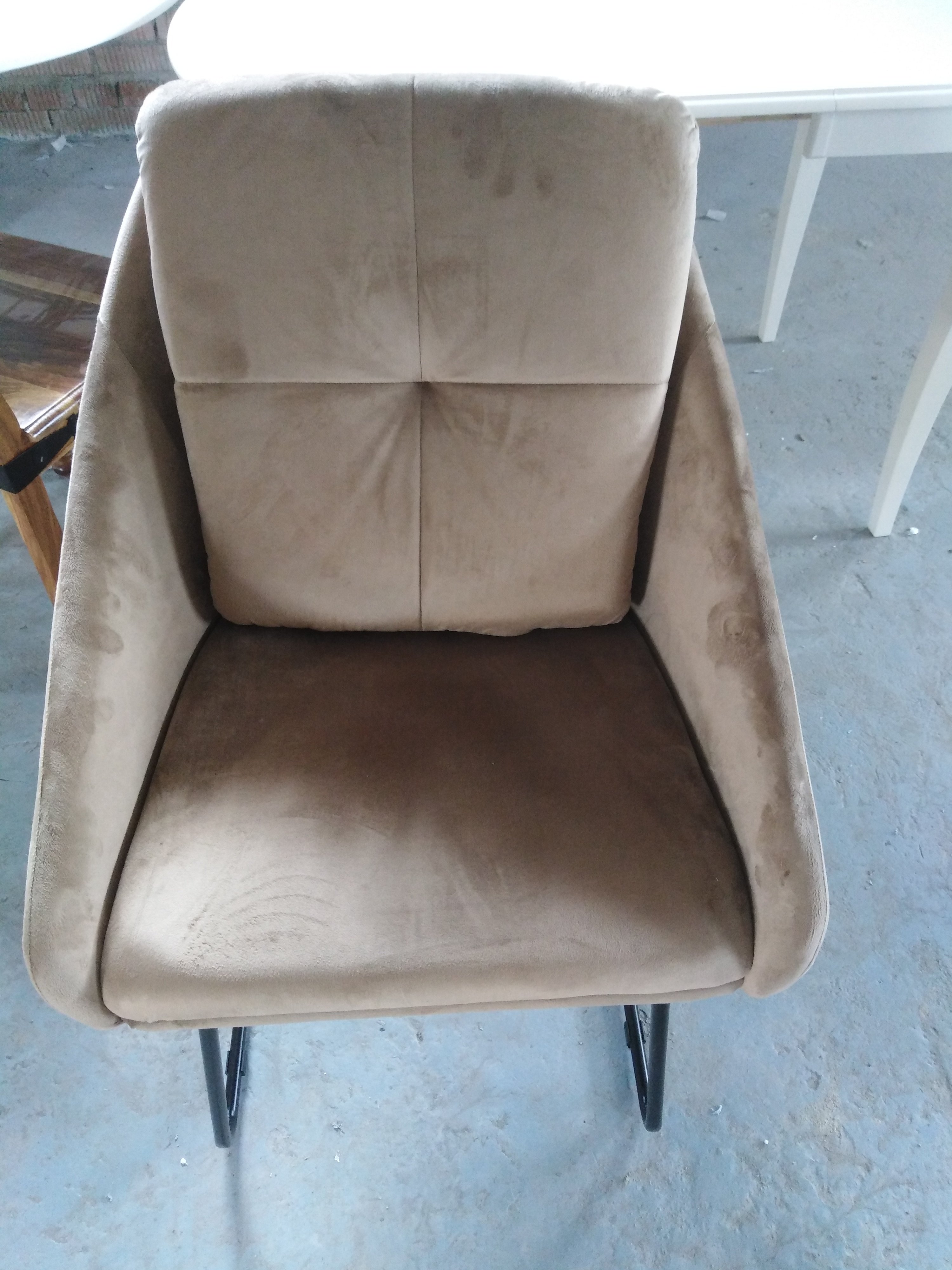 Описание товара без дефектов: Оригинальное кресло STAR из коллекции Modern – это не только уютный предмет мебели, но и важный акцент в интерьере, который может задать настроение комнате. Оно будет хорошо смотреться в гостиной, столовой, кухне, спальне, кафе. Необычный металлический каркас черного цвета прекрасно сочетается с коричневой тканевой обивкой из вельвета. Модель станет идеальным дополнением современного стильного пространства. Мягкая подушка под спину, невысокие подлокотники и удобное сиденье позволят комфортно расположиться на долгое время. Тканевая обивка из вельвета коричневого цвета не мнётся, не меняет форму, пропускает воздух, экологична и гипоаллергенна. Металлические ножки с пластиковыми подпятниками делают кресло прочным, устойчивым, предотвращают появление царапин на напольном покрытии. Данная модель прослужит вам долгие годы, радуя своим первоначальным видом. Кресло подойдёт для гостиной, для кухни или для спальни. Кресло очень простое в сборке, инструкция по сборке прилагается.