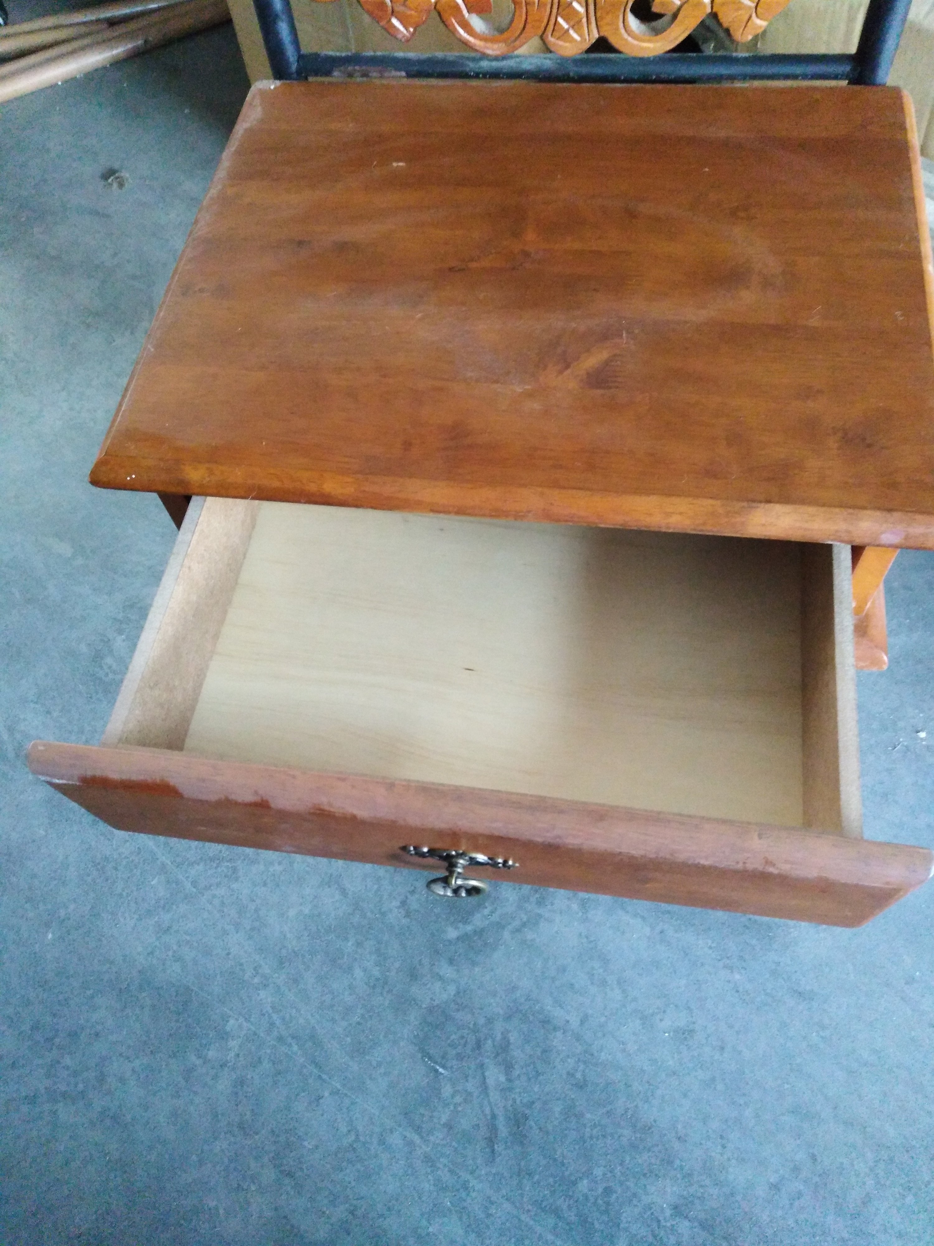 Описание товара без дефектов: Зеркало, 2 выдвижных ящика, стул с обивкой. Материал: каркас - металл; столешница, выдвижные ящики, элементы декора - дерево гевея и металл. Цвет: дерево - красный дуб, металл - чёрный. Размеры: 95х46х16,2 см