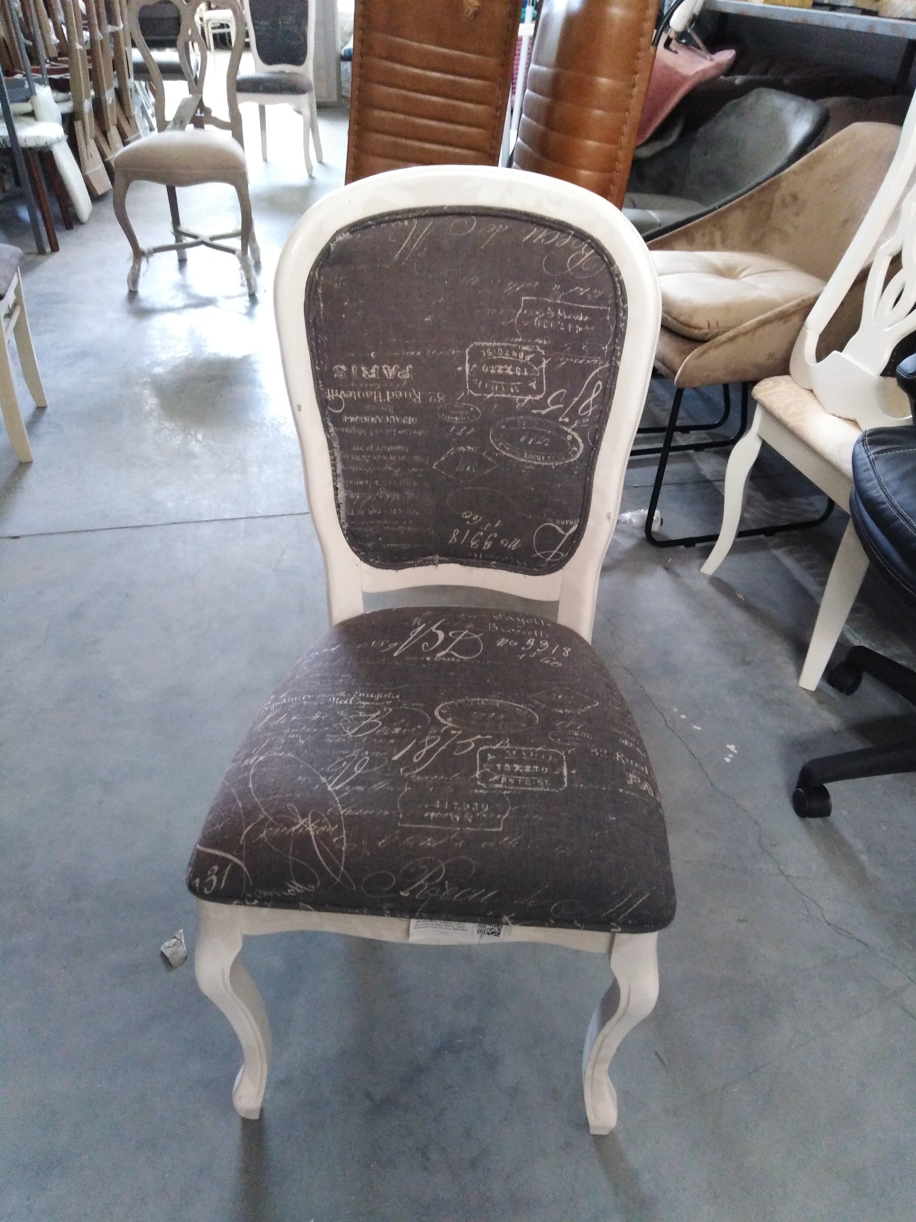 Описание товара без дефектов: Материал: каркас - массив гевеи, обивка - ткань. Форма спинки - неоклассический медальон. Размеры: 96х55х46 см