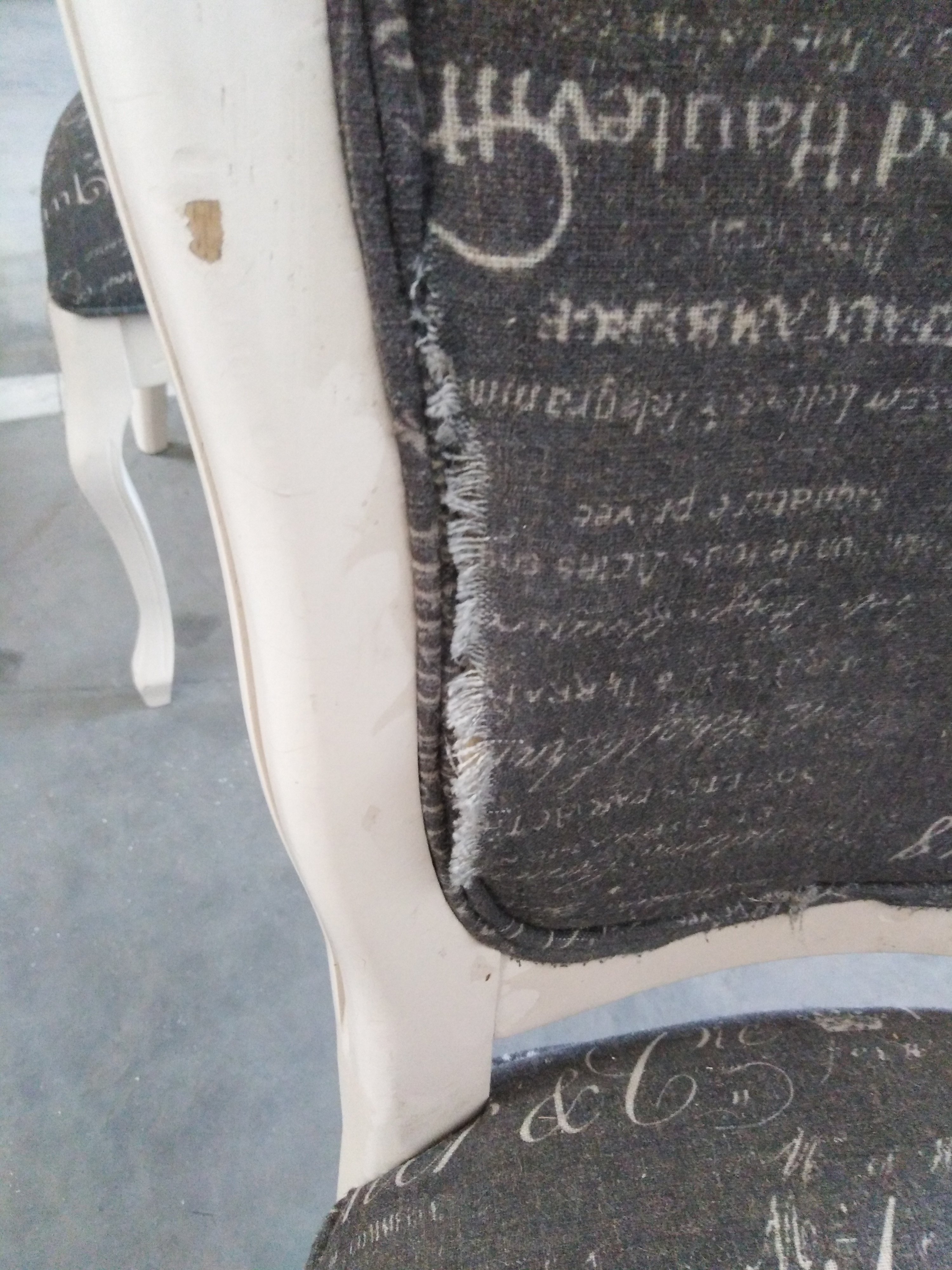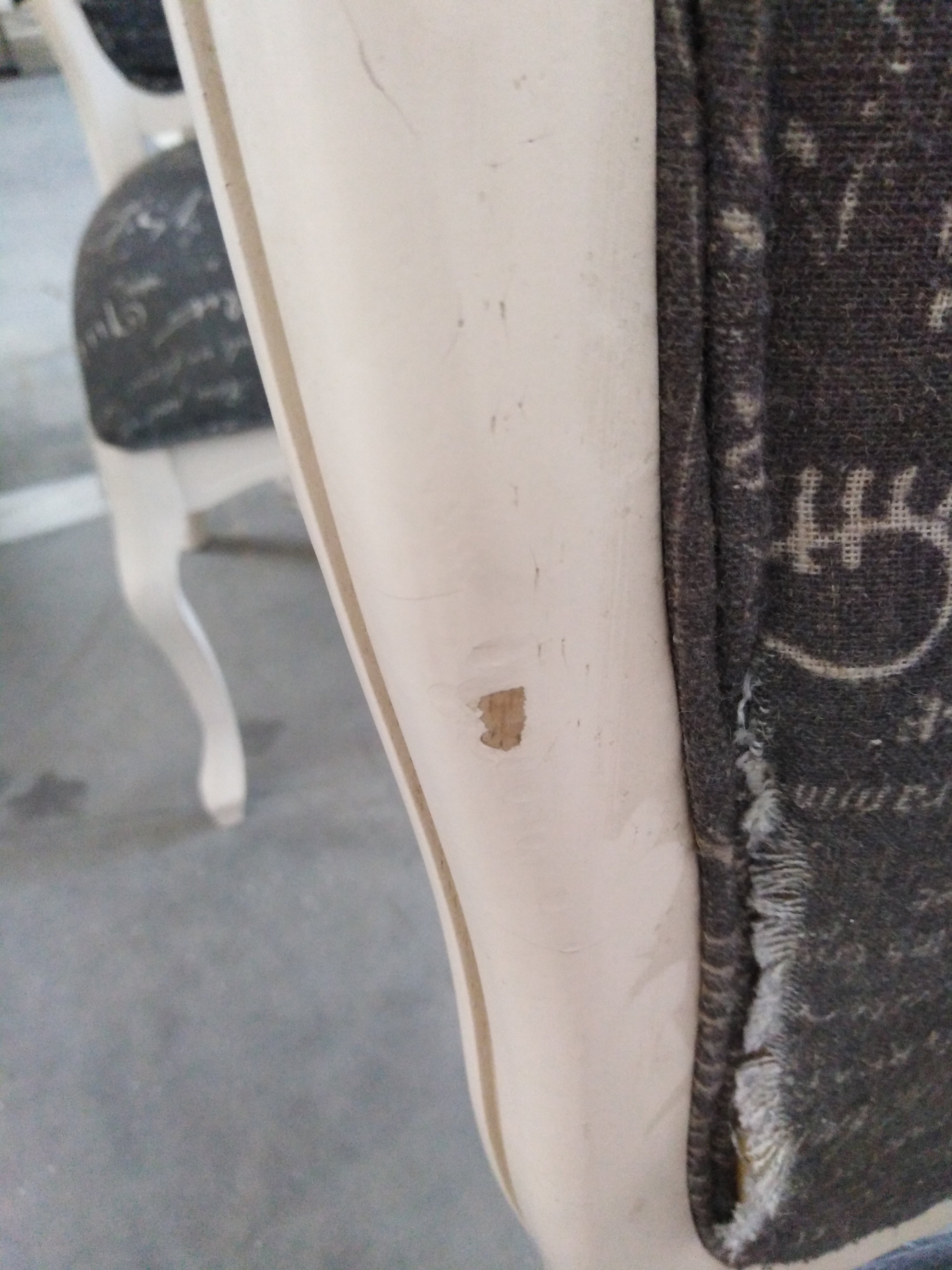 Описание дефекта: ННарушение ЛКП на ножках и спинке. Трещины и сколы по деревянным частям. Частичная загрязнённость сидения. Имееетмя механическое повреждения ткани спи