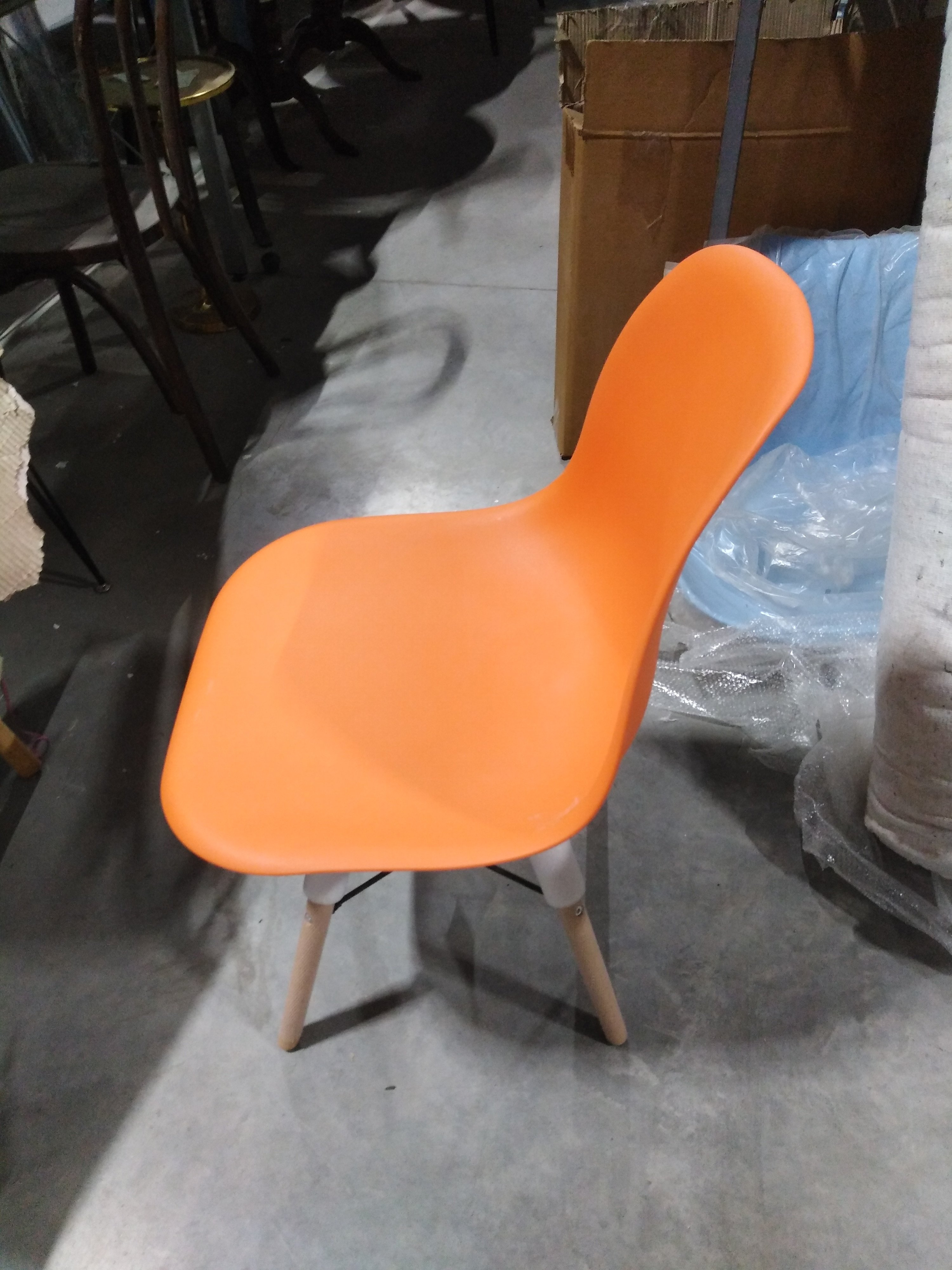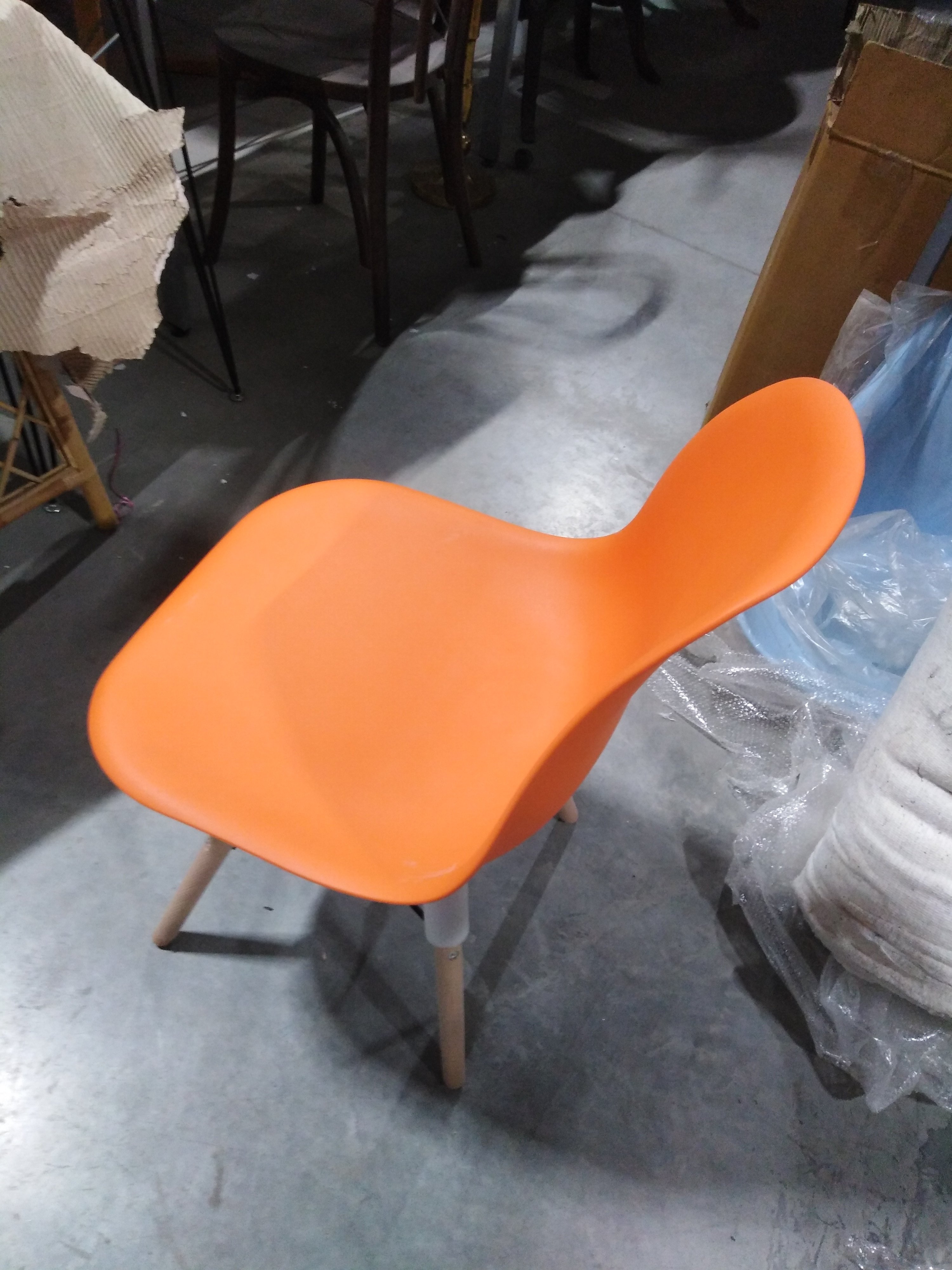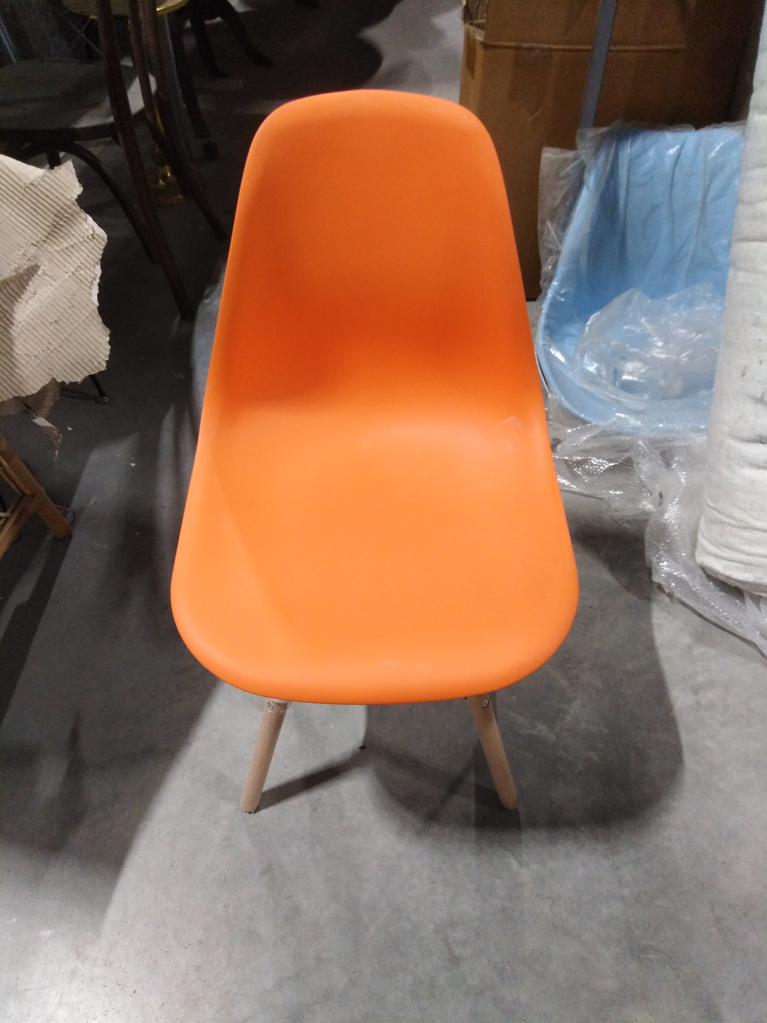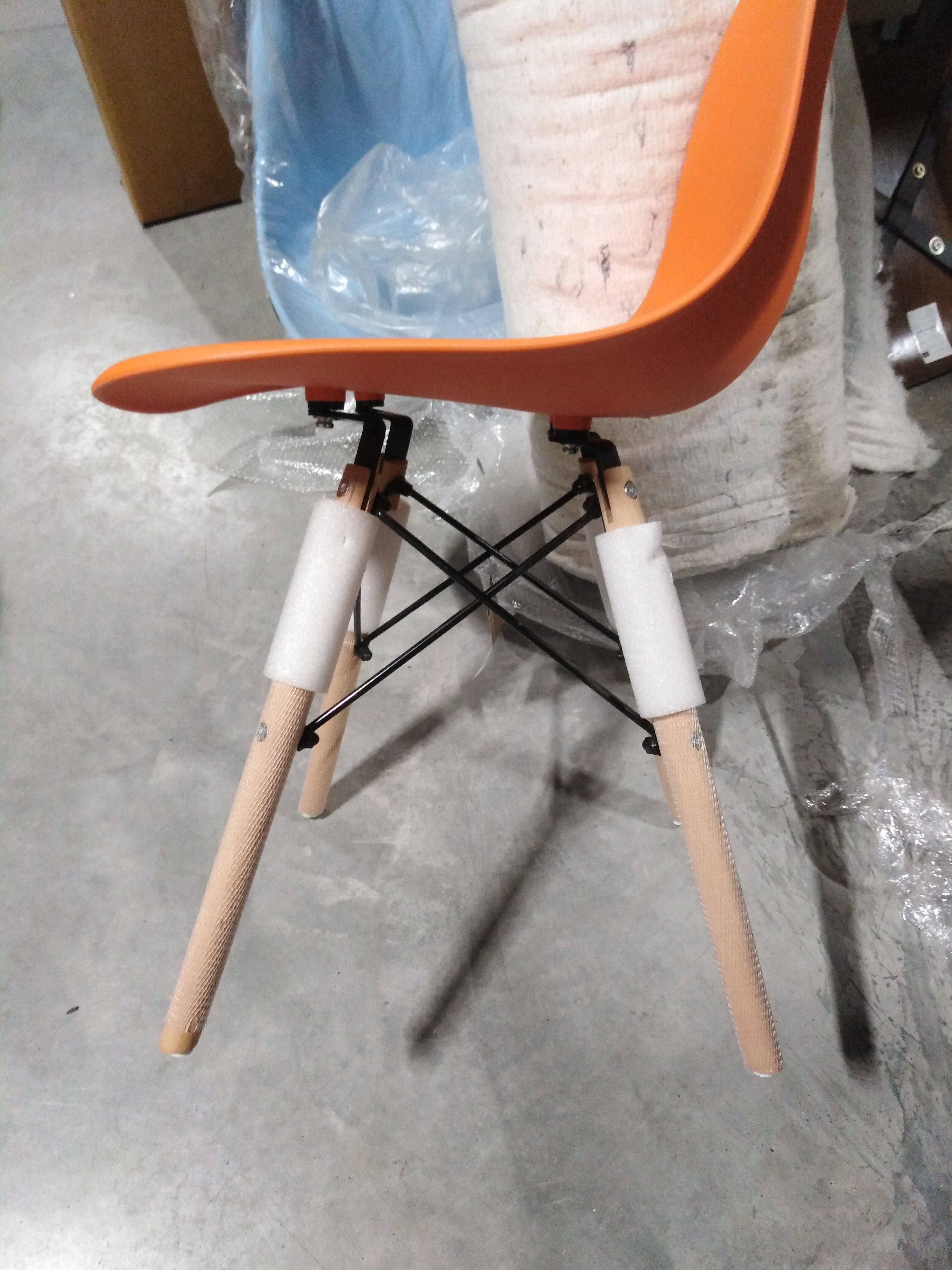 Описание товара без дефектов: Стильный стул Cindy Chair из коллекции Modern, созданный в стиле знаменитого стула Eames DSW супругов Имз, украсит собой любую домашнюю обстановку. Этот удобный и легкий стул будет отличным украшением городской квартиры, загородного дома, кафе или ресторана. Сочетание оранжевого пластикового сиденья, ножек из массива бука и классического металлического крепления придает стулу особенную красоту и оригинальность. Эргономичная спинка и удобное сиденье позволят комфортно расположиться на продолжительное время. Конструкция изделия разработана с учетом равномерного распределения нагрузки. Пластик и массив бука – прочные и долговечные материалы, не требующие специального ухода, способные выдерживать большую нагрузку. Стул будет радовать вас своим первоначальным видом долгие годы. Стул хорошо подойдет для гостиной, для кухни, для терассы, для дачи, для ресторана или для кафе. Стул очень прост в сборке, инструкция по сборке прилагается.