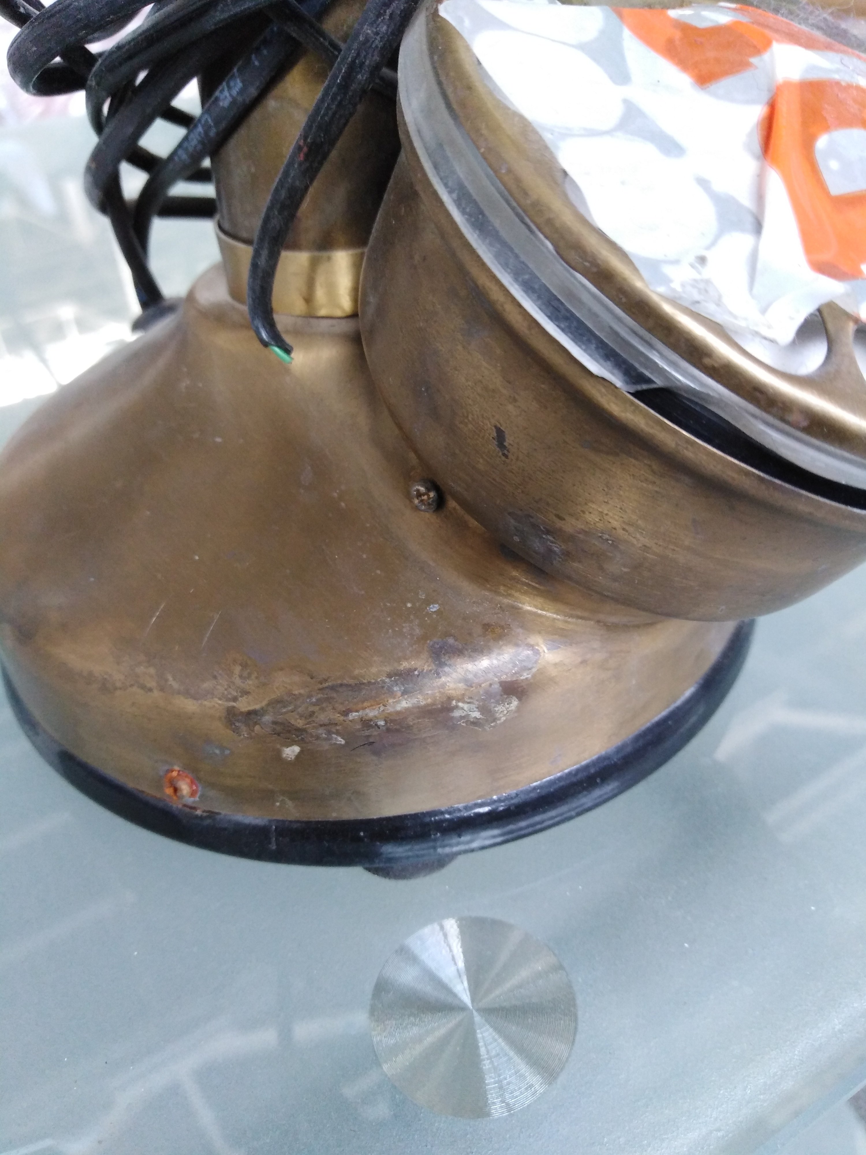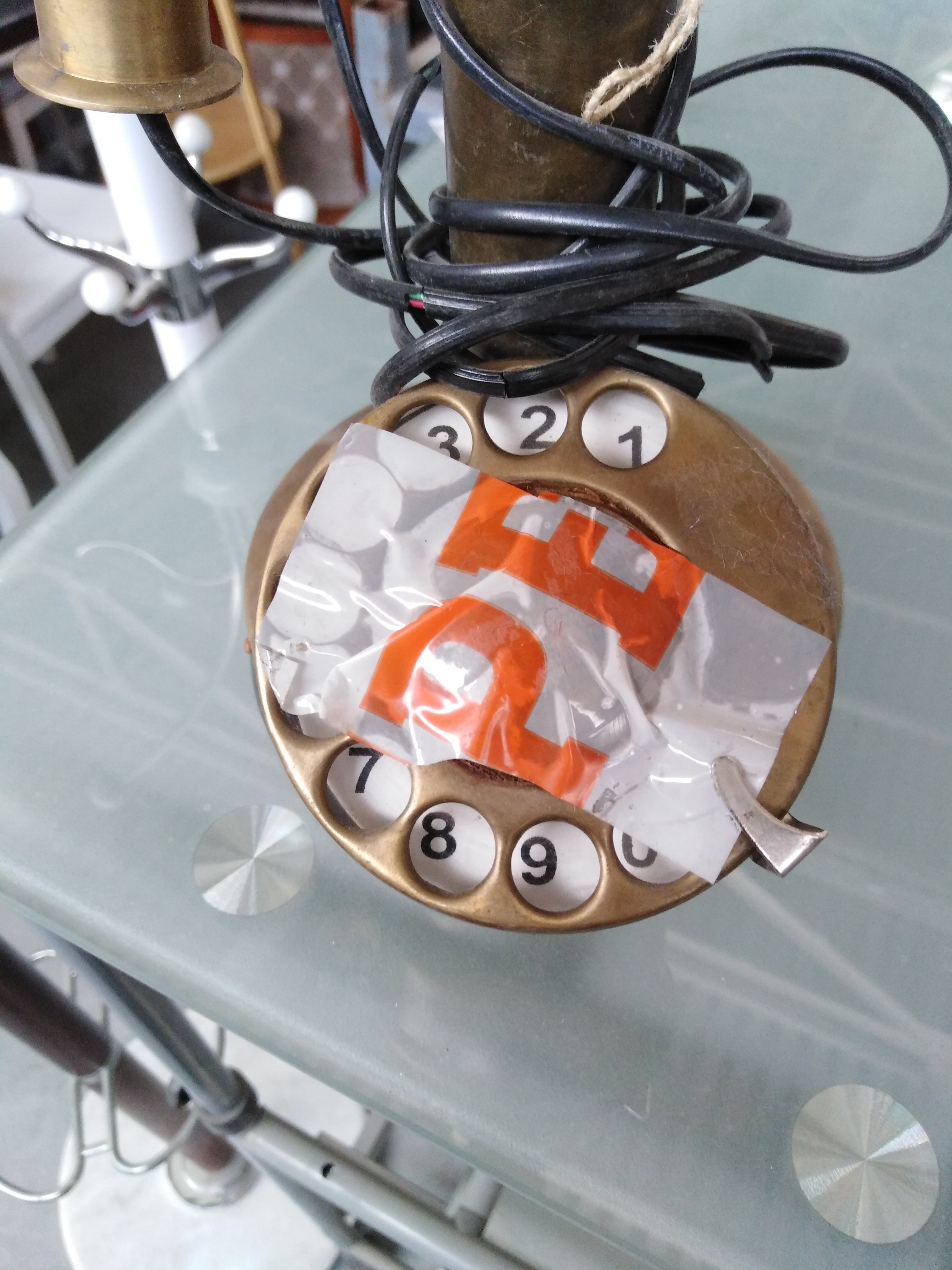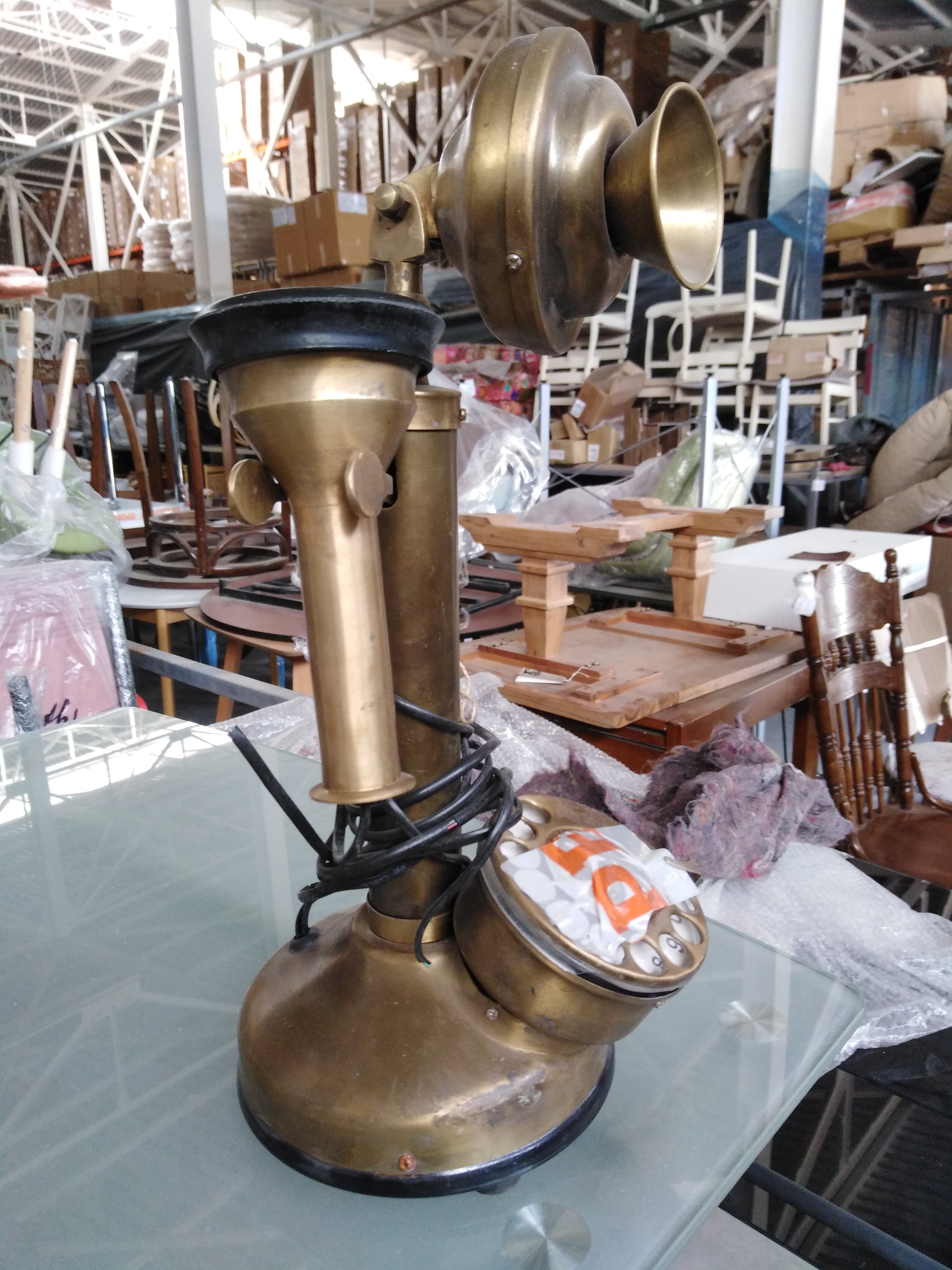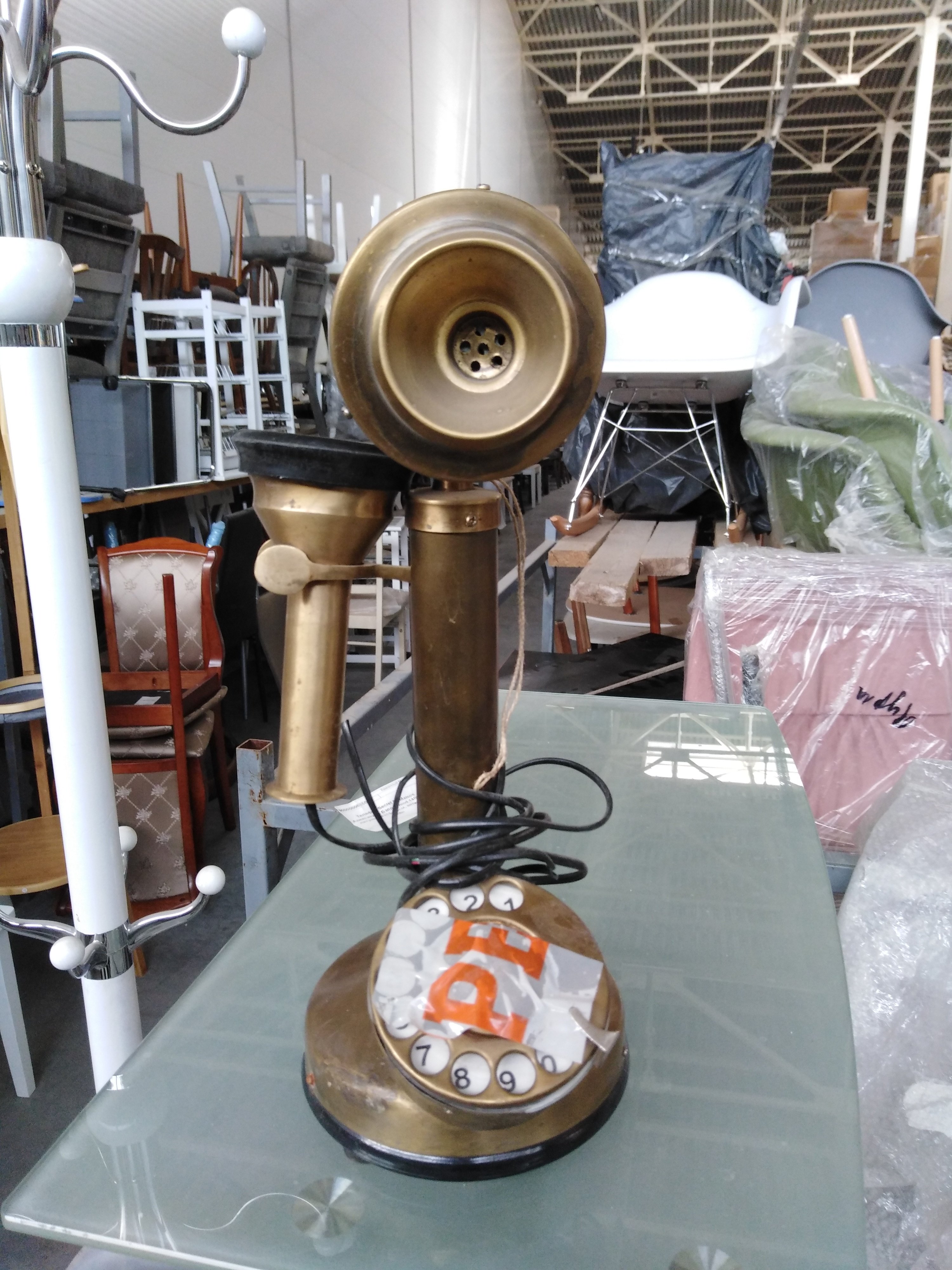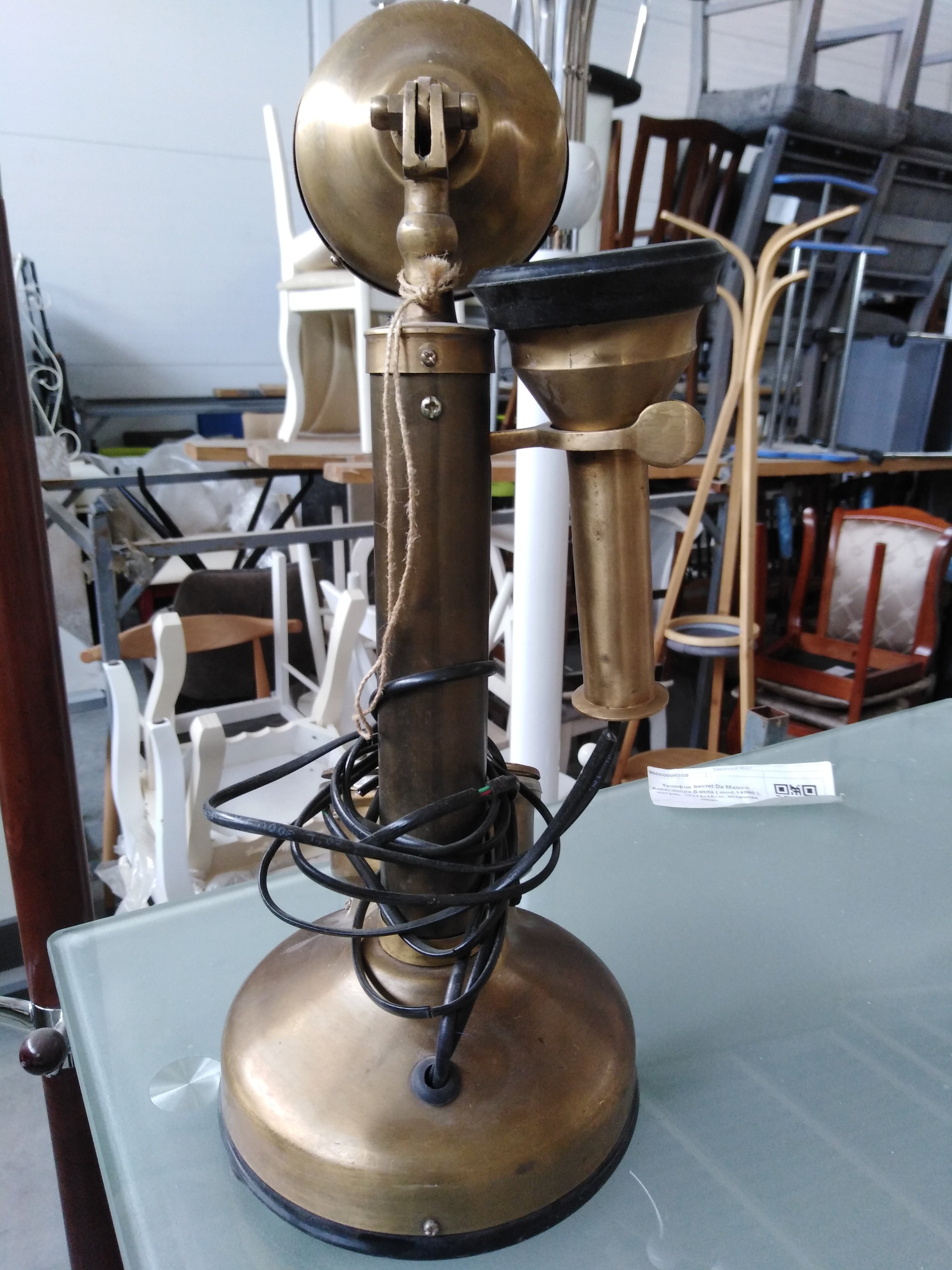 Описание товара без дефектов: Рабочая историческая копия. Провод для телефонной розетки в комплекте. Материал: латунь+алюминиевый сплав. Цвет: античная медь. Размеры: D13 (в основании)х34 см