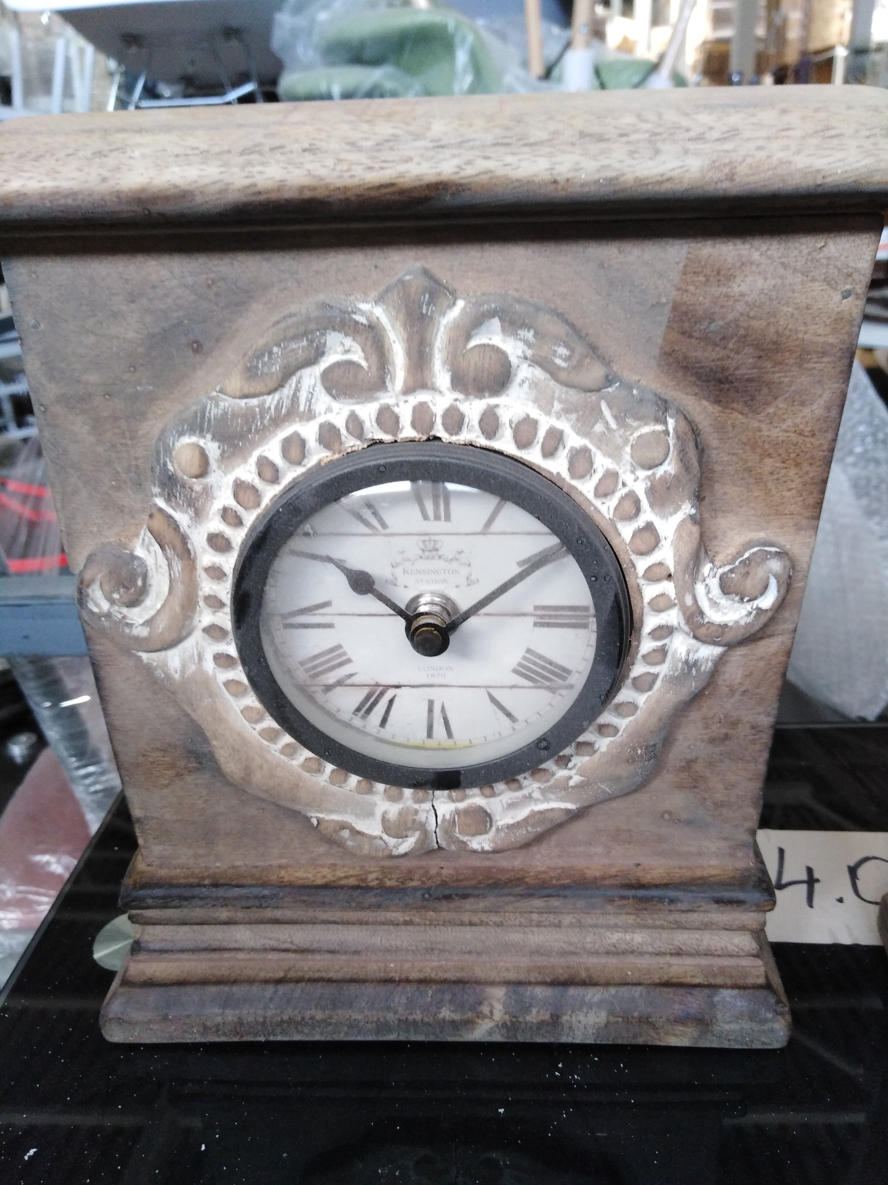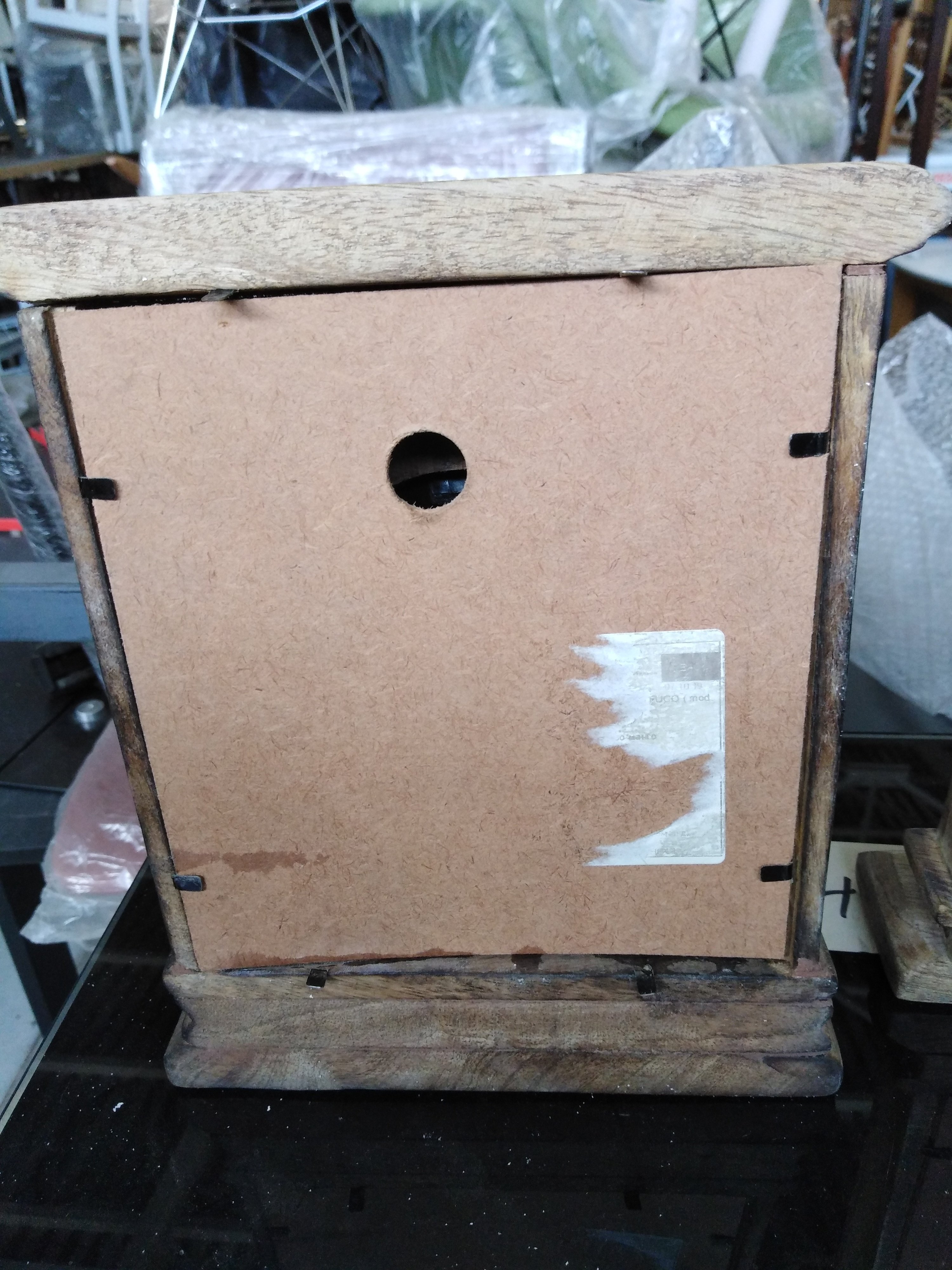 Описание дефекта: рещины и сколы на деревянных поверхностях, отсутствует батарейка